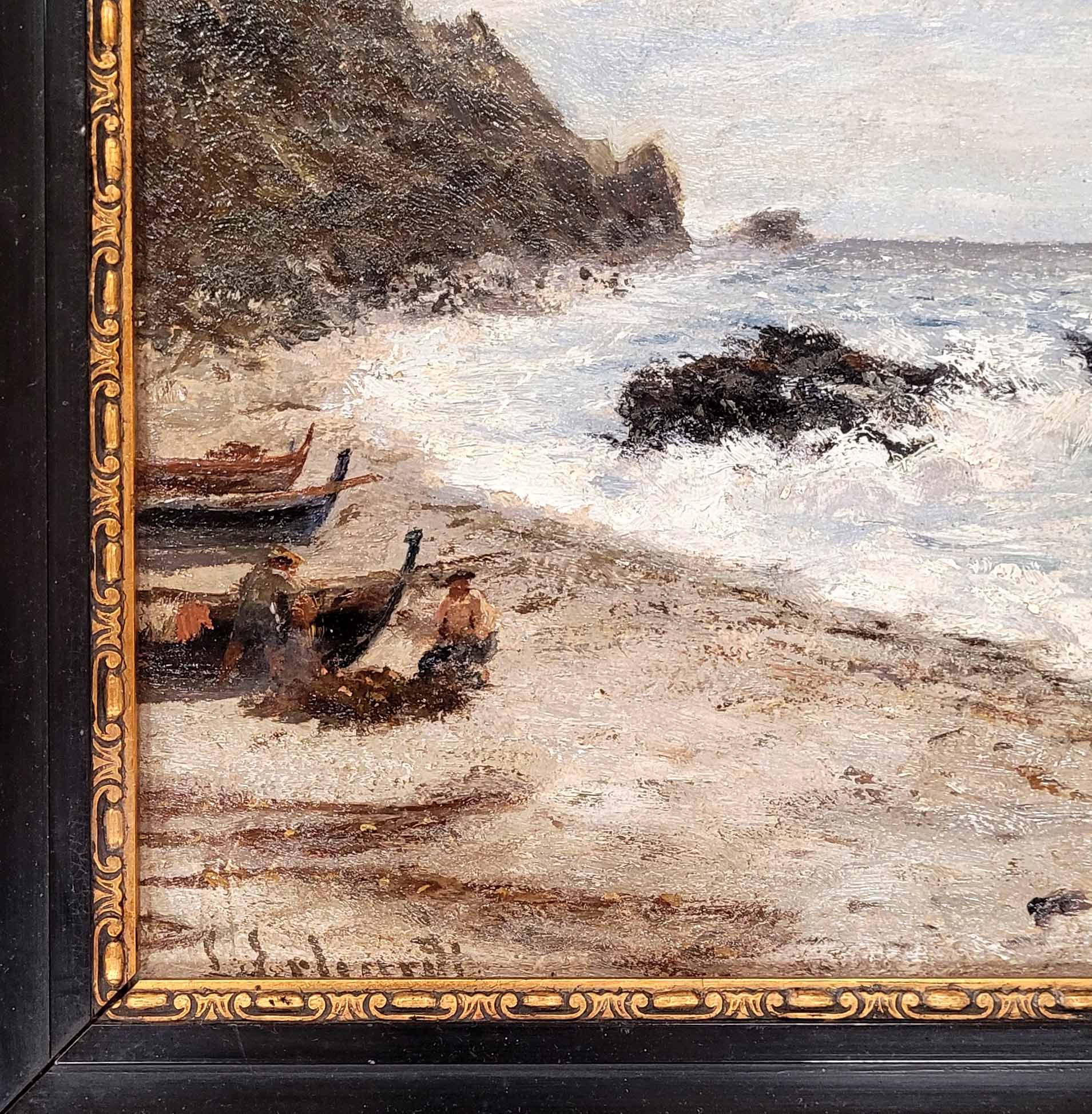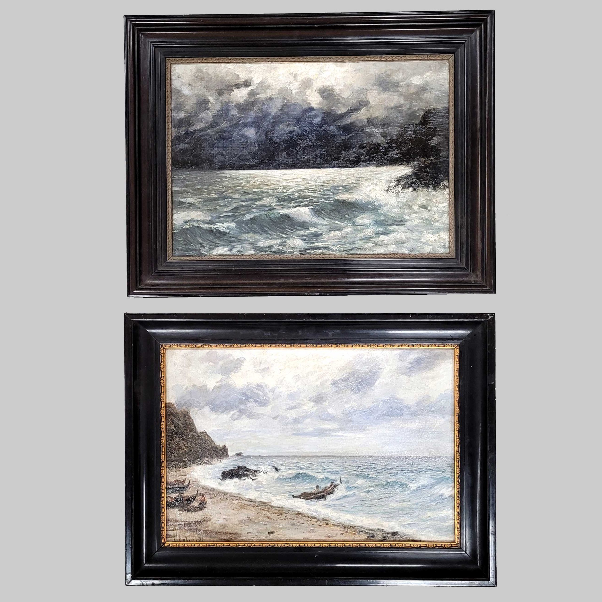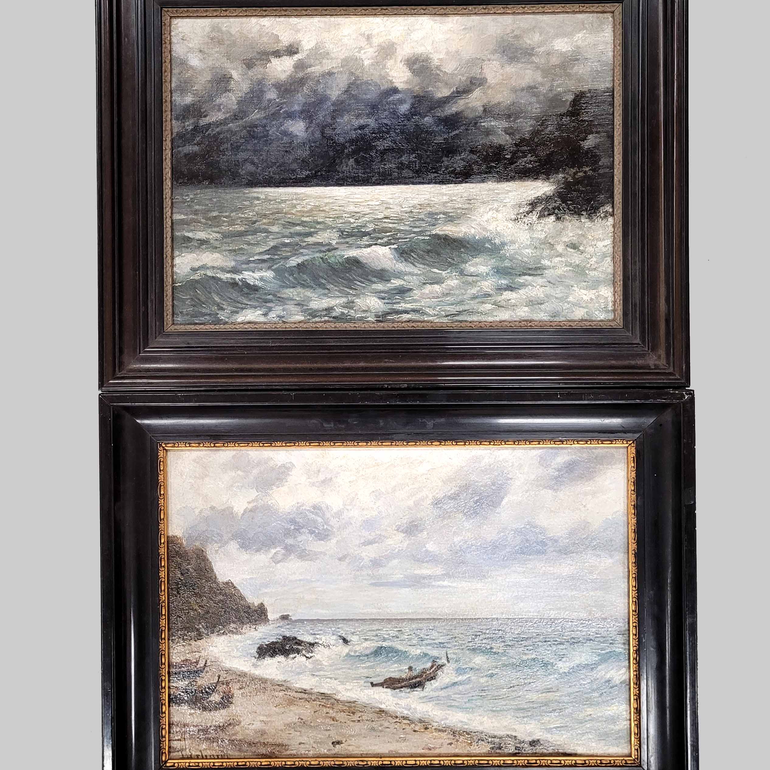 ERHARDT, L. (tätig um 1900): Italienische KüsteGemäldepaar, Öl auf Leinwand, signiert unten links, verso betitelt (1x), 34,5 x 51 cm bzw. 36,5 x 50,5 cm, Rahmen