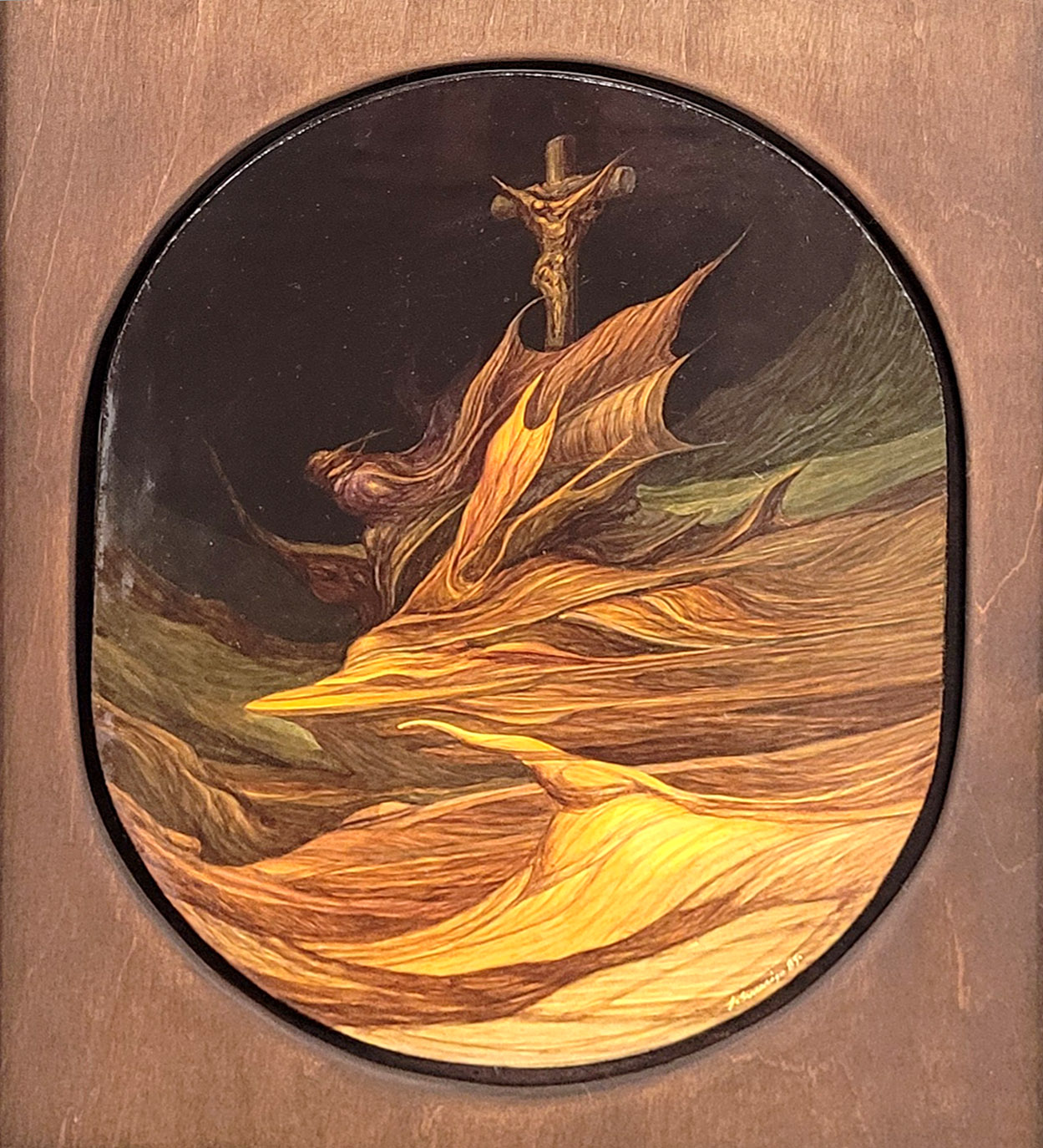 SUMIGA, Jan (1944-2005): Ohne TitelÖl auf Leinwand, auf Holz gezogen, signiert und datiert (19)85, 29 x 23 cm, Rahmen