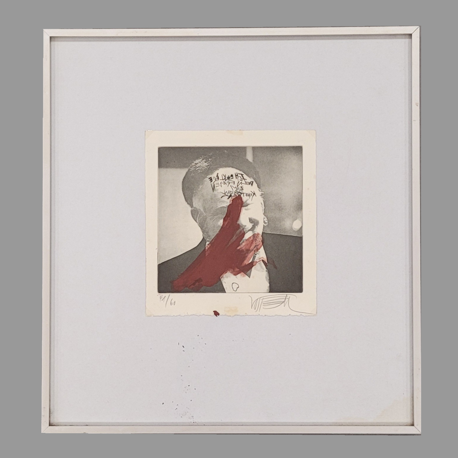 Siebdruck, bemalt mit roter Farbe, signiert unten rechts, nummeriert 41/60, 20 x 18,5 cm, gerahmt unter Glas (durchschlagende alte Montagespuren und minimale Farbabsprengungen)