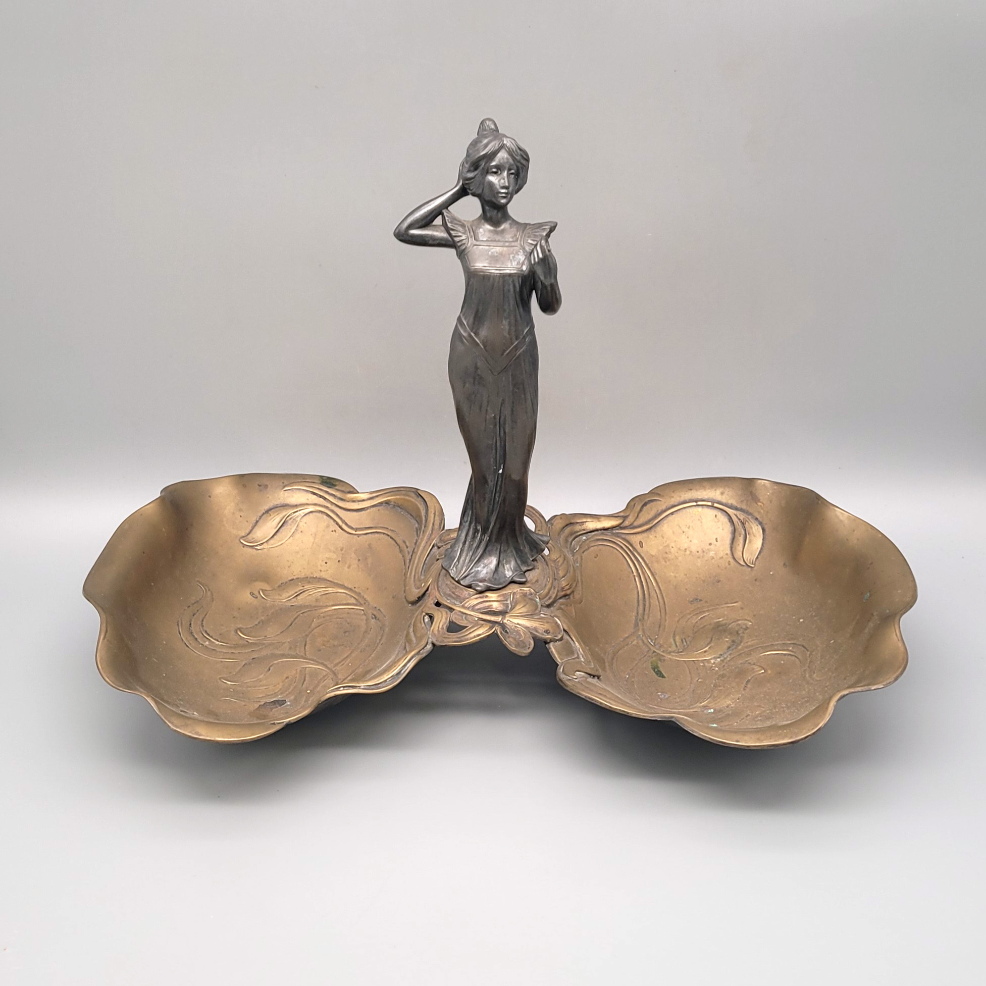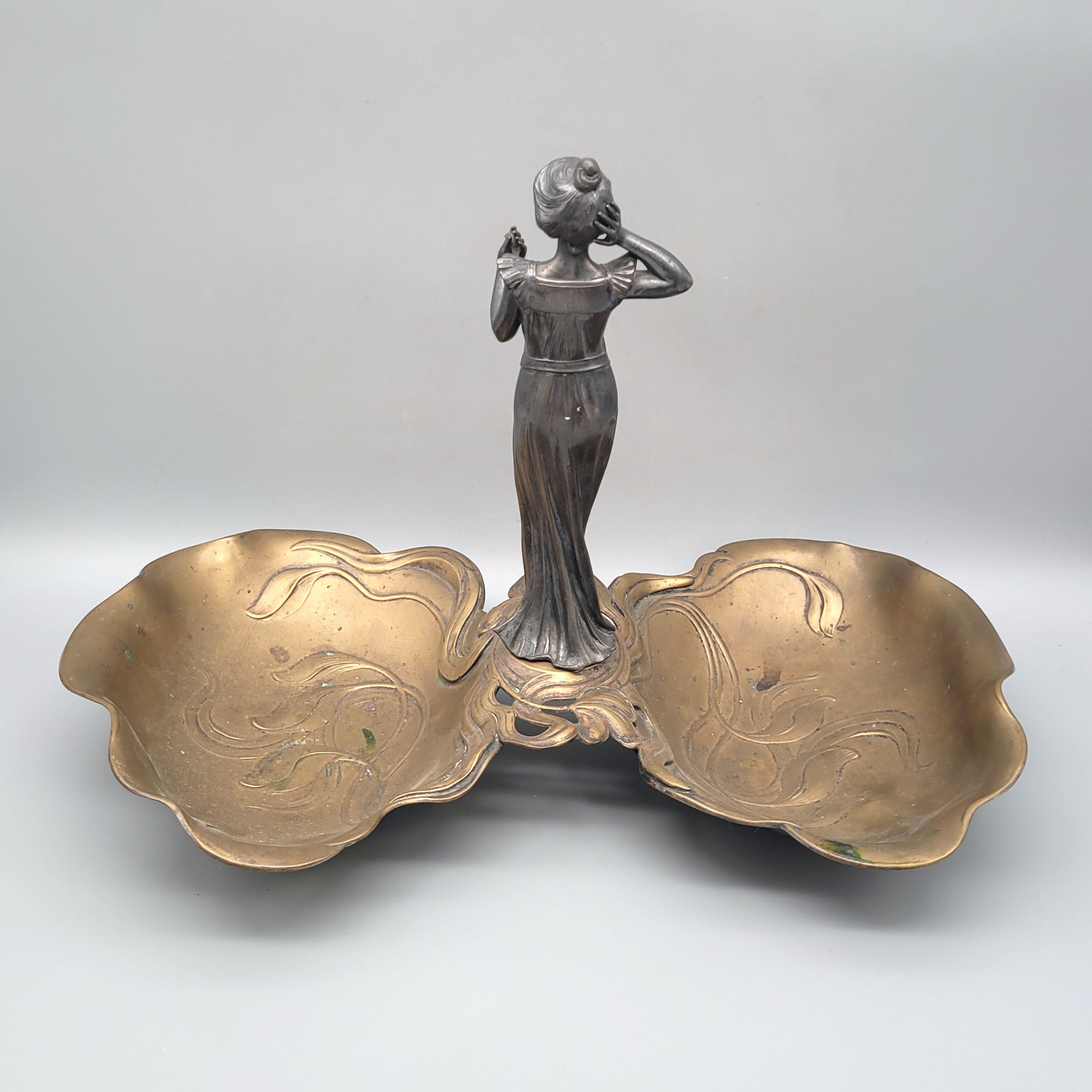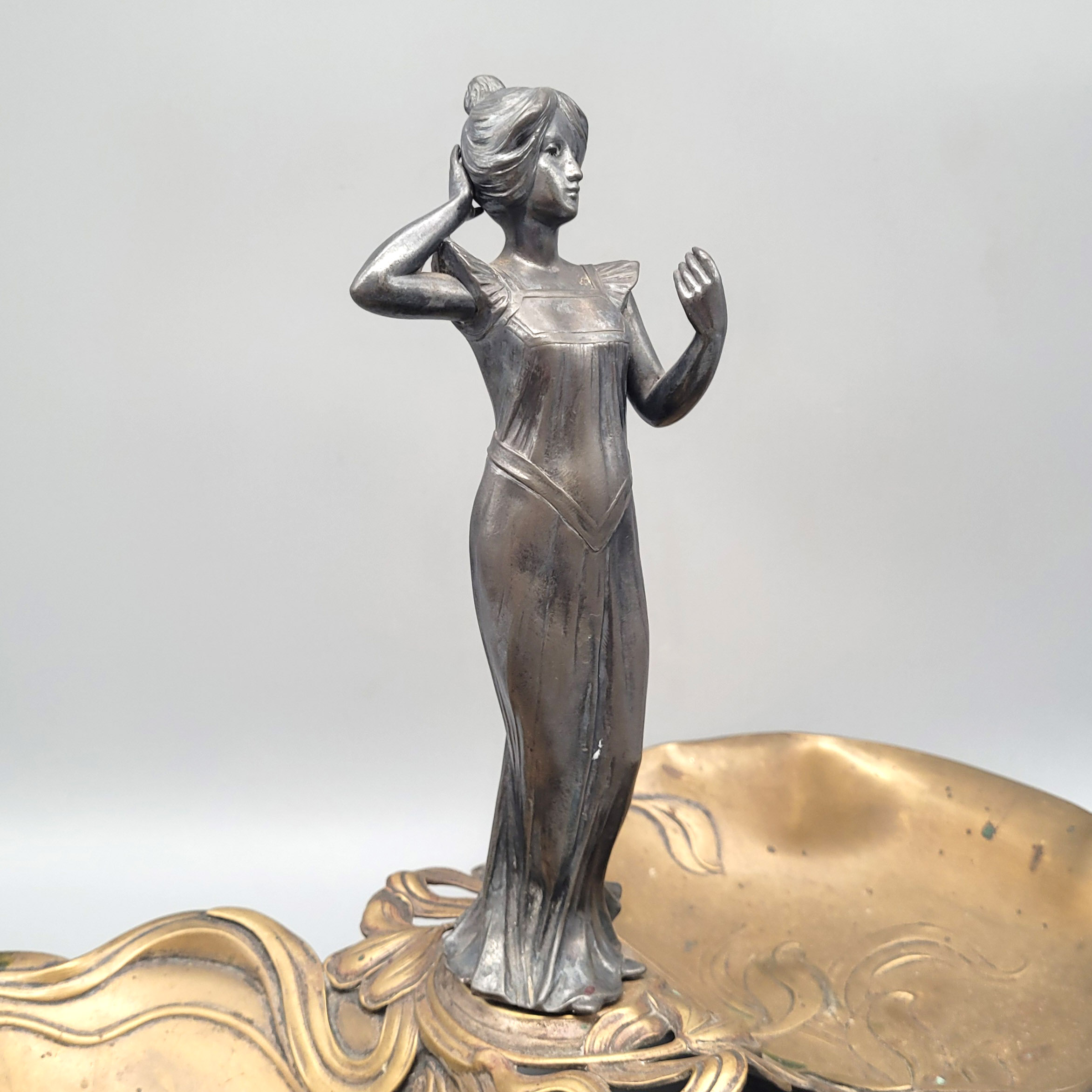 Zinnsilber, Messing(?), ehemals versilbert, Deutsch, Jugendstil, Ende 19. Jahrhundert, 26,5 x 38 x 24 cm