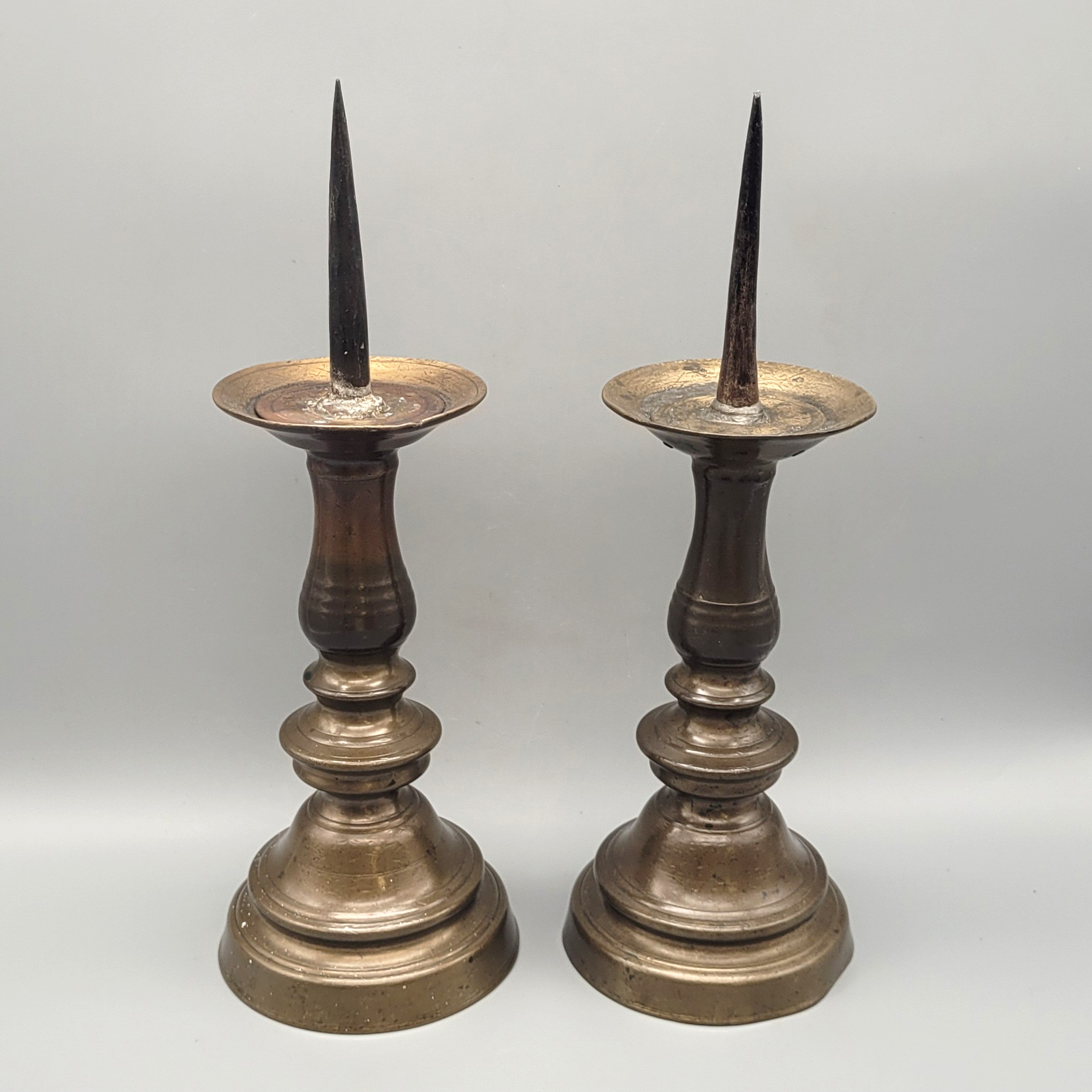 Messing, Dorn Eisen, Deutsch, Ende 16. Jahrhundert, Höhe 33,5 cm (mit Dorn)