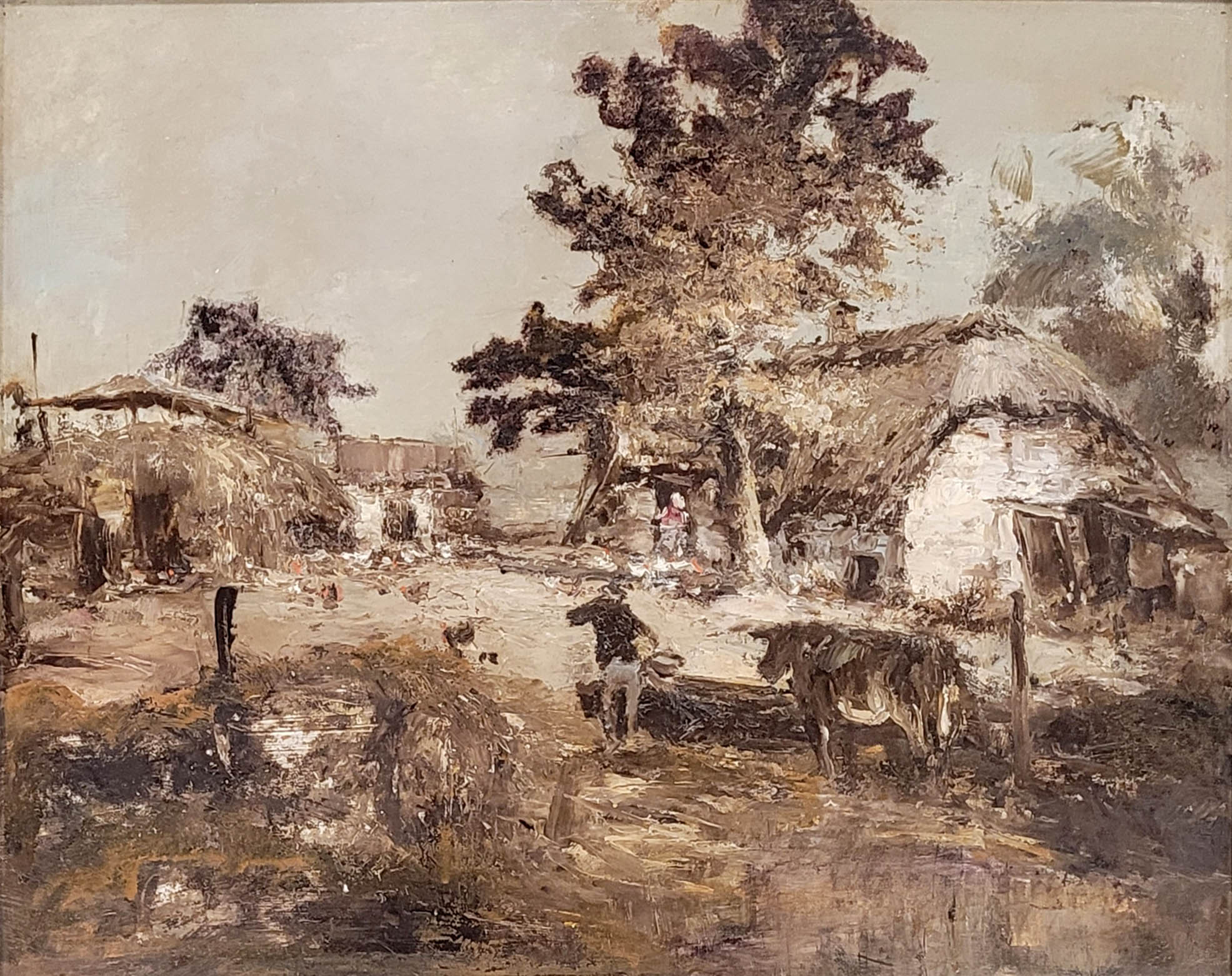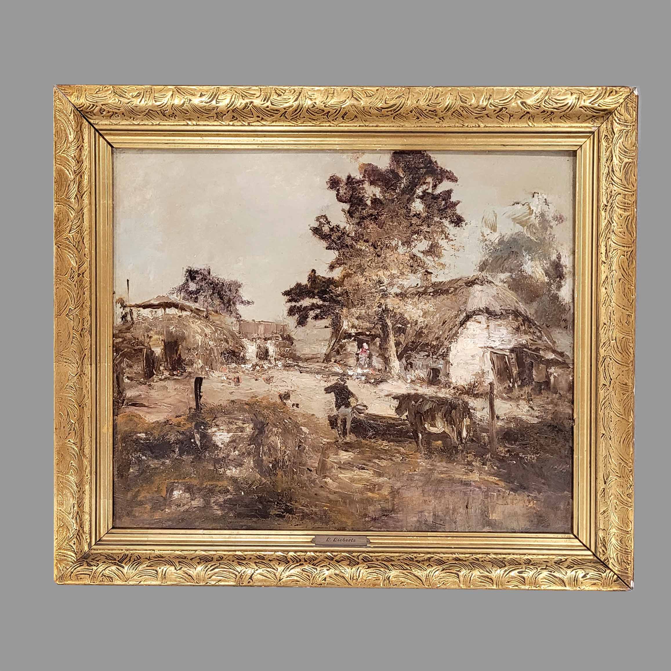 LIBERTS, Ludolfs (1895-1959): Gehöftzugeschrieben, Öl auf Malplatte, 40 x 50,5 cm, Rahmen