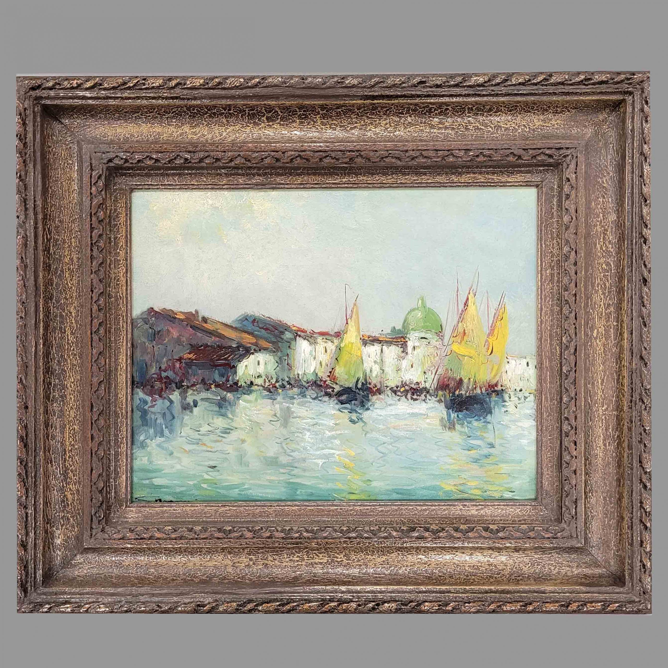 ITALIENISCHER MEISTER (tätig Anfang 20. Jh.): Ansicht von VenedigÖl auf Leinwand, doubliert, unleserlich signiert unten links, 36 x 48 cm, Rahmen