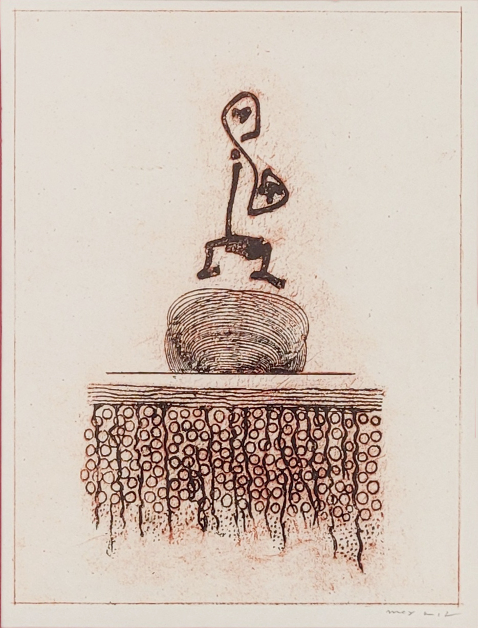 ERNST, Max (1891-1976): Ohne TitelFarblithographie auf Japanpapier, aus HEISENBERG, Werner, Die Bedeutung des Schönen in der exakten Naturwissenschaft, Stuttgart 1971, signiert unten rechts, 31 x 23,5 cm, gerahmt unter Glas und Passepartout