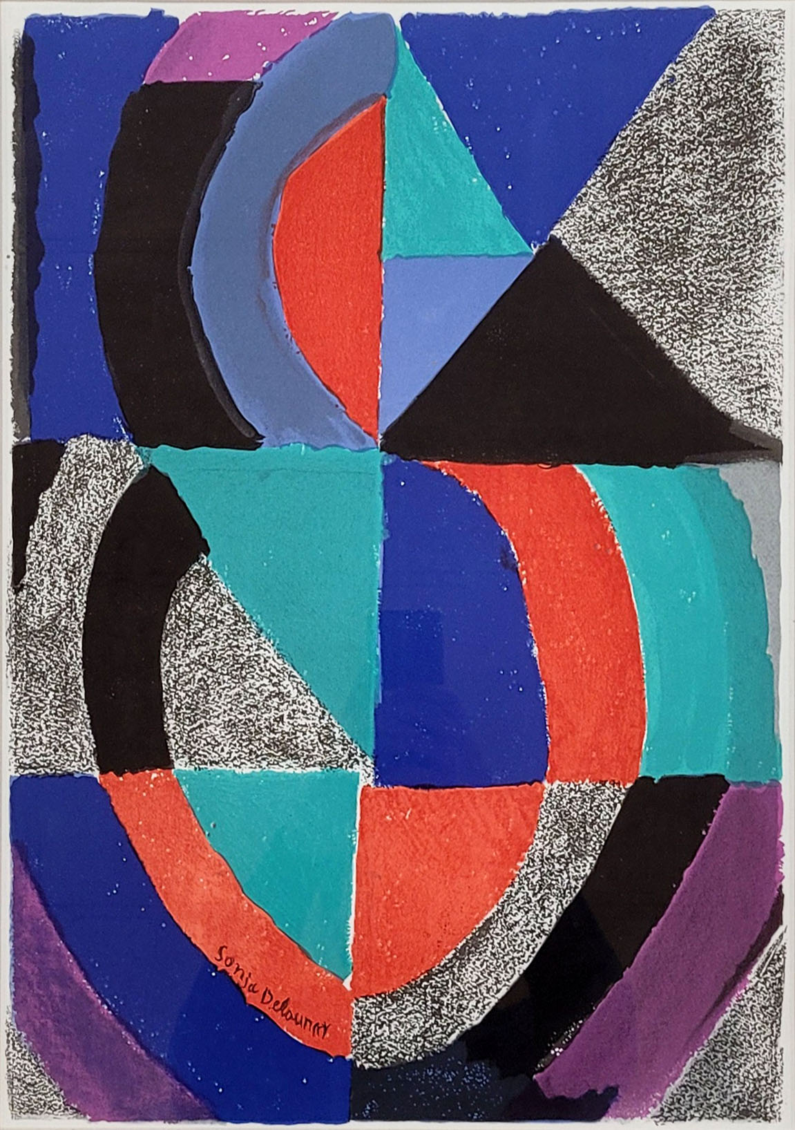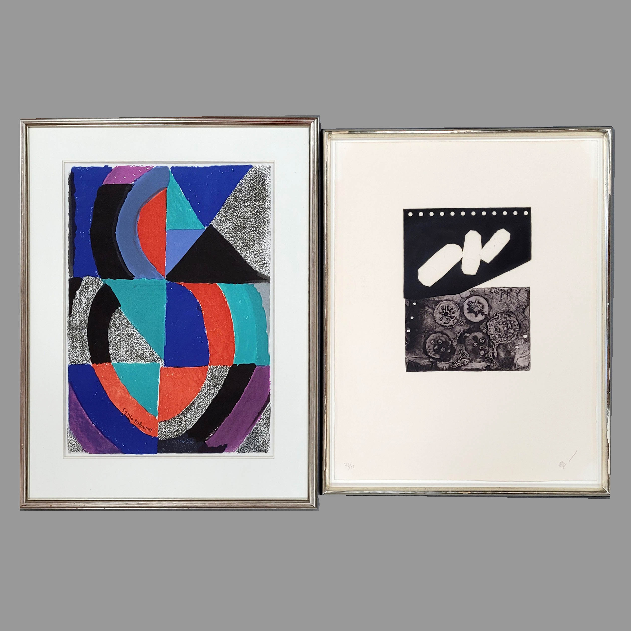 Carborundumradierung mit Prägung, signiert unten rechts, nummeriert 73/75 unten links, 64,5 x 49,5 cm, gerahmt unter Glas beigelegt DELAUNAY, Sonia (1885-1979), Rythme couleur, Farblithographie, 1960, im Stein signiert, 56 x 39,5 cm, gerahmt unter Glas und Passepartout
