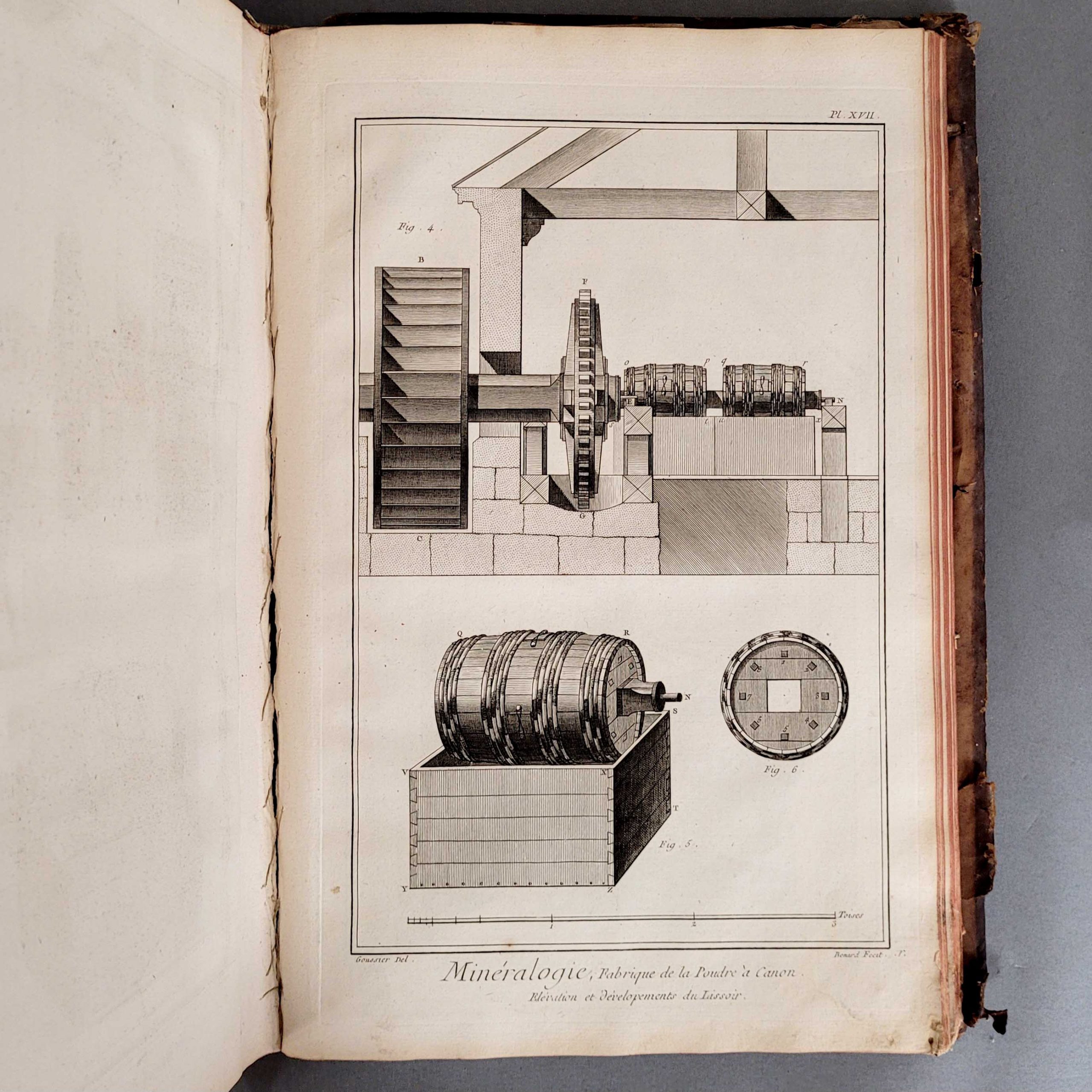 Paris (Briasson et al.) 1768 (Ledereinband der Zeit, Einband und Bindung stärker beschädigt, Kupfertafeln nur gering beschädigt)