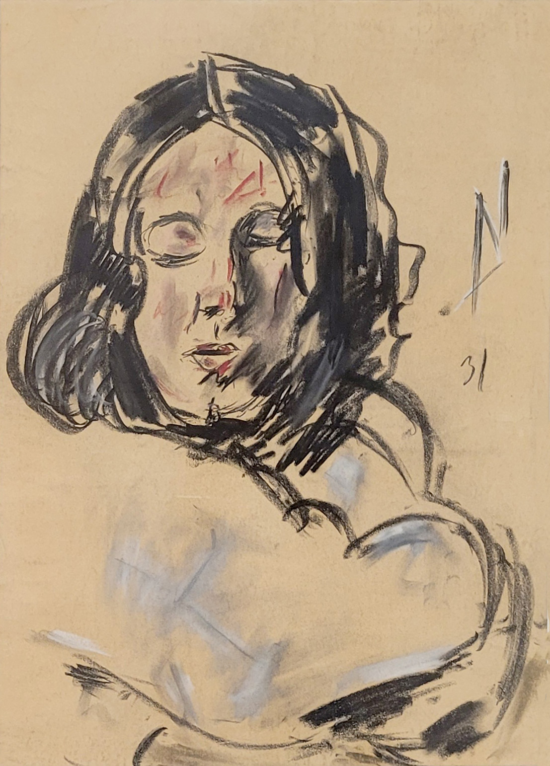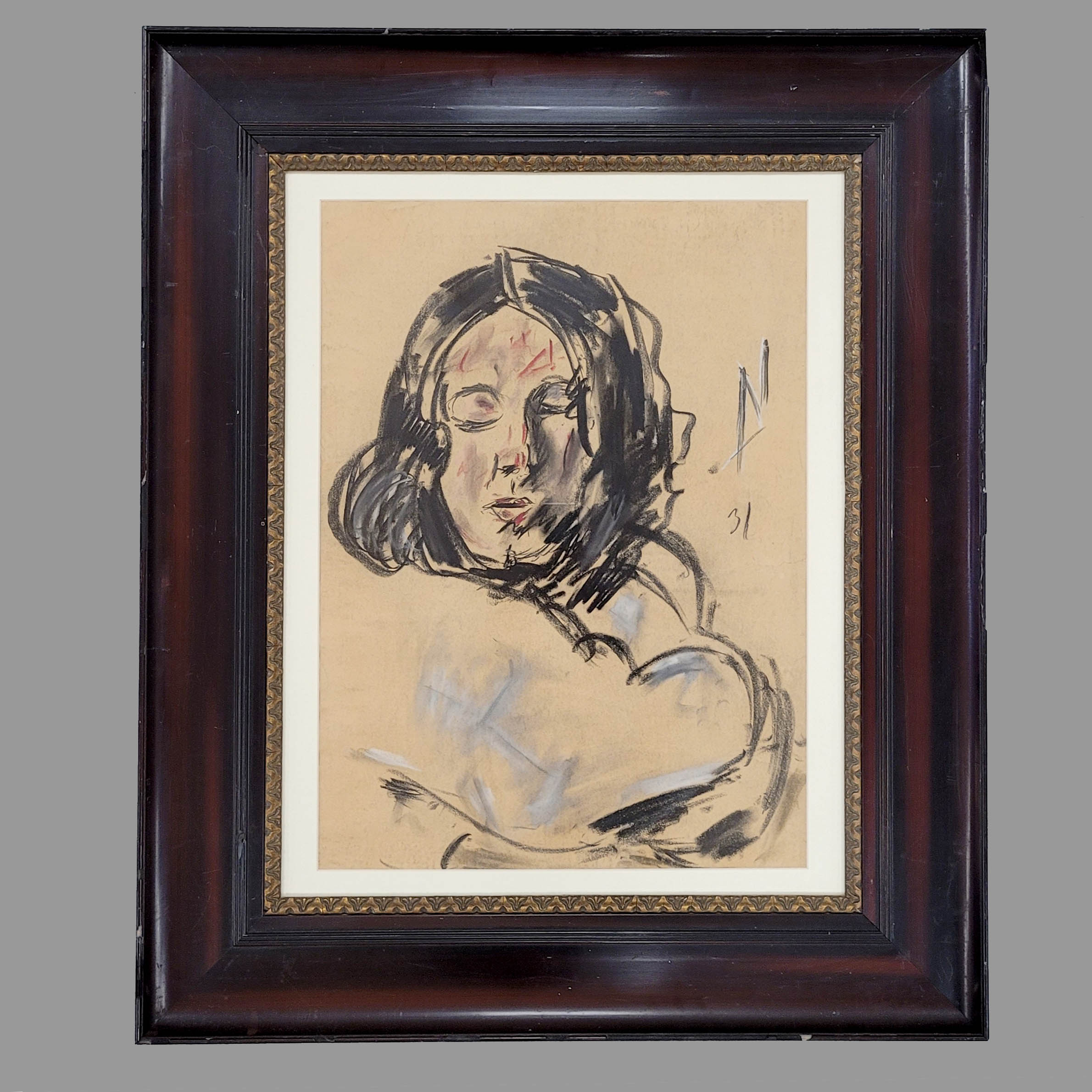NADEL, Arno (1878-1943): FrauenkopfPastell auf Papier, monogrammiert und datiert (19)31 rechts, 59 x 42,5 cm, gerahmt unter Glas und Passepartout (Rahmen leicht beschädigt)
