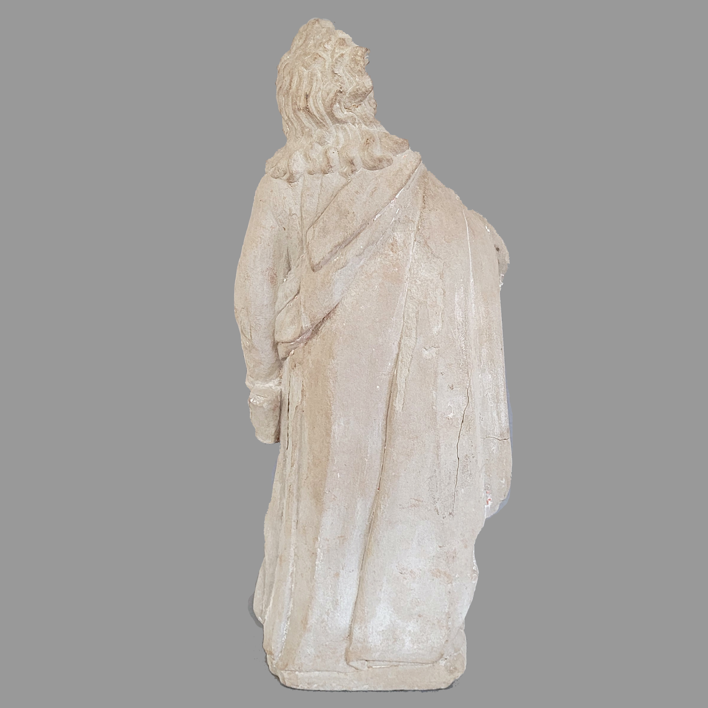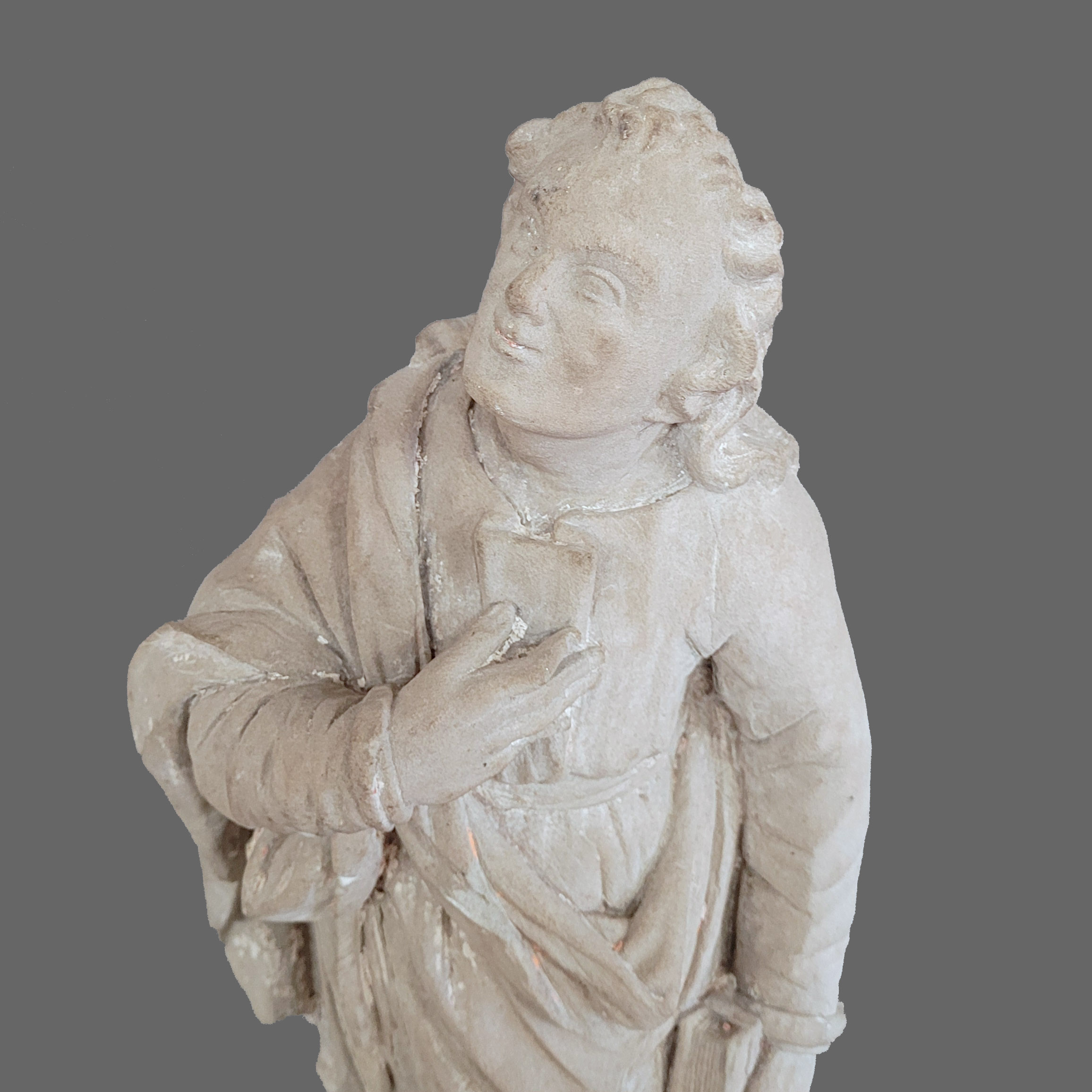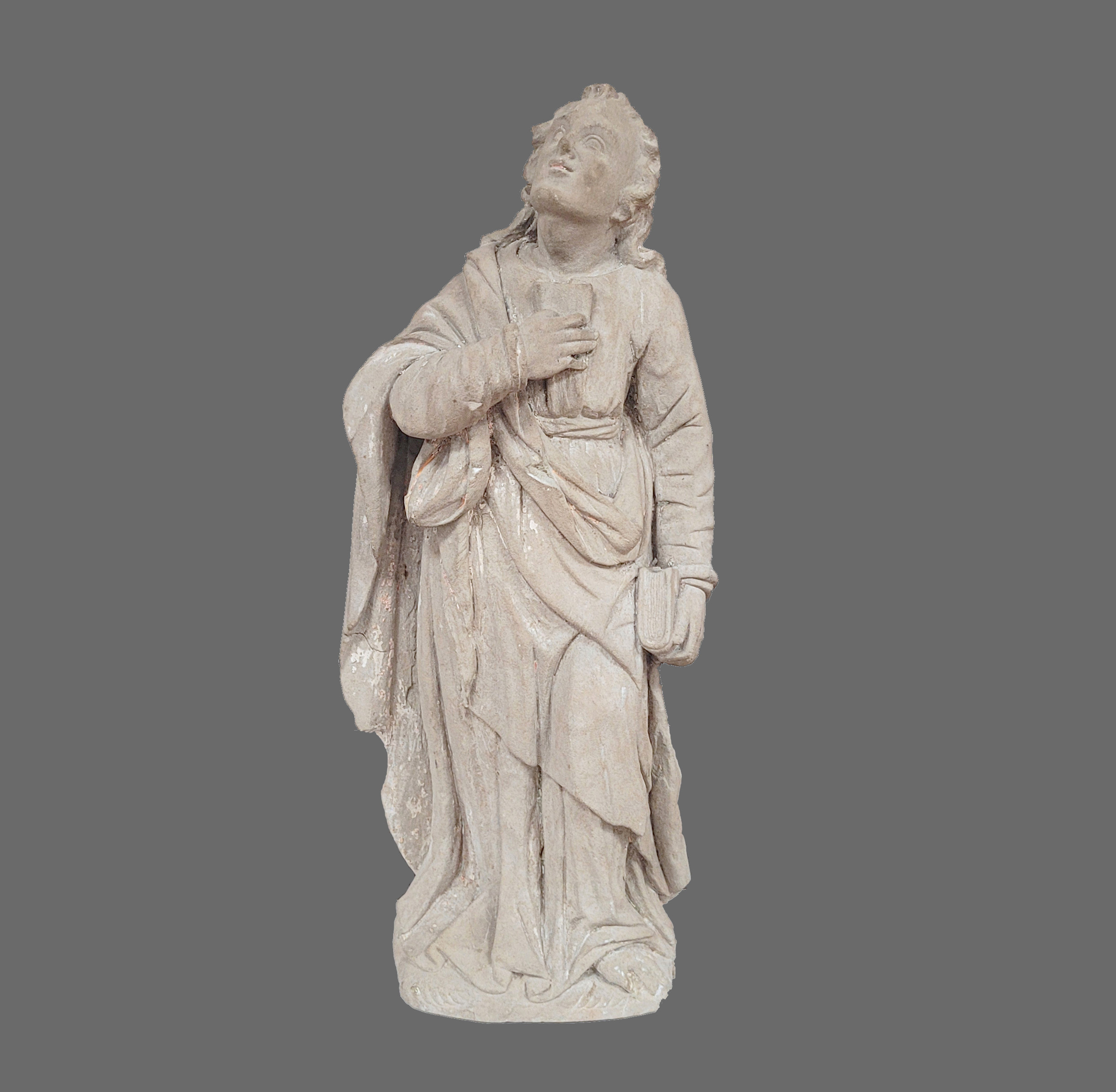 Heiliger Johannes aus einer KreuzigungsgruppeSandstein, vollrund gearbeitet, rückseitig leicht abgeflacht, Reste farbiger Fassung, Franken, um 1700, Höhe 50 cm