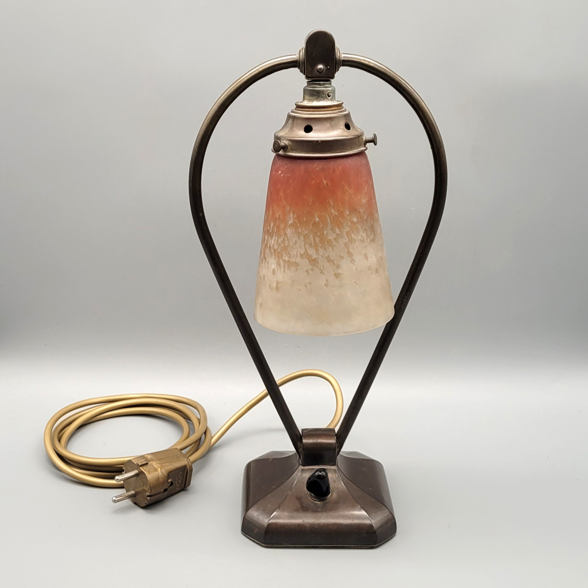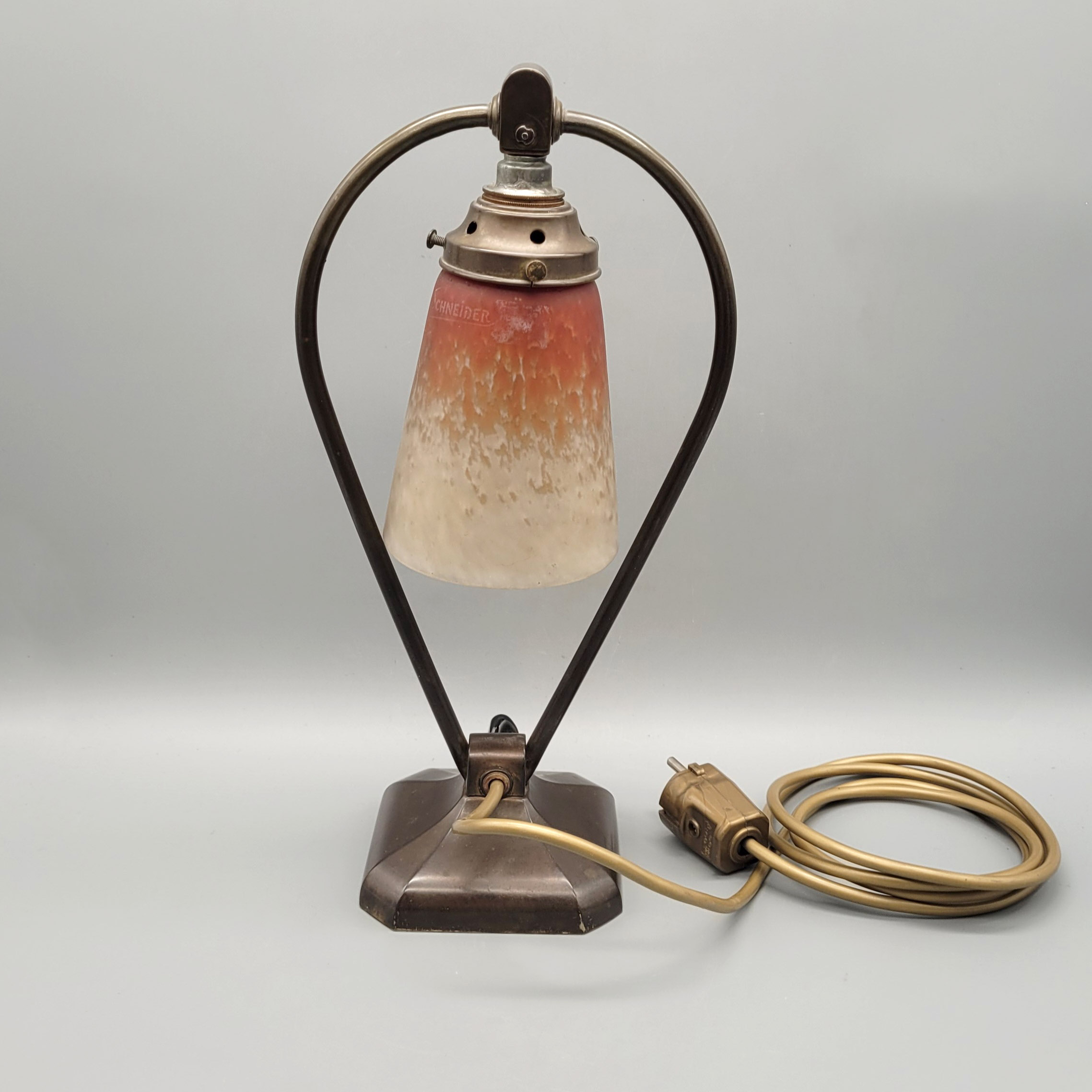 Bronze, Glasschirm, signiert „Schneider“, um 1910, Höhe 35 cm
