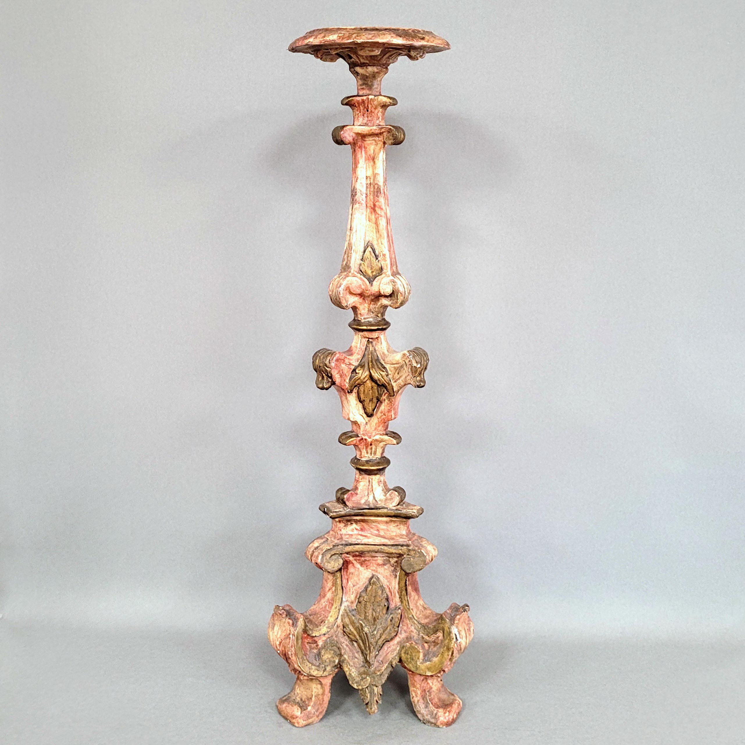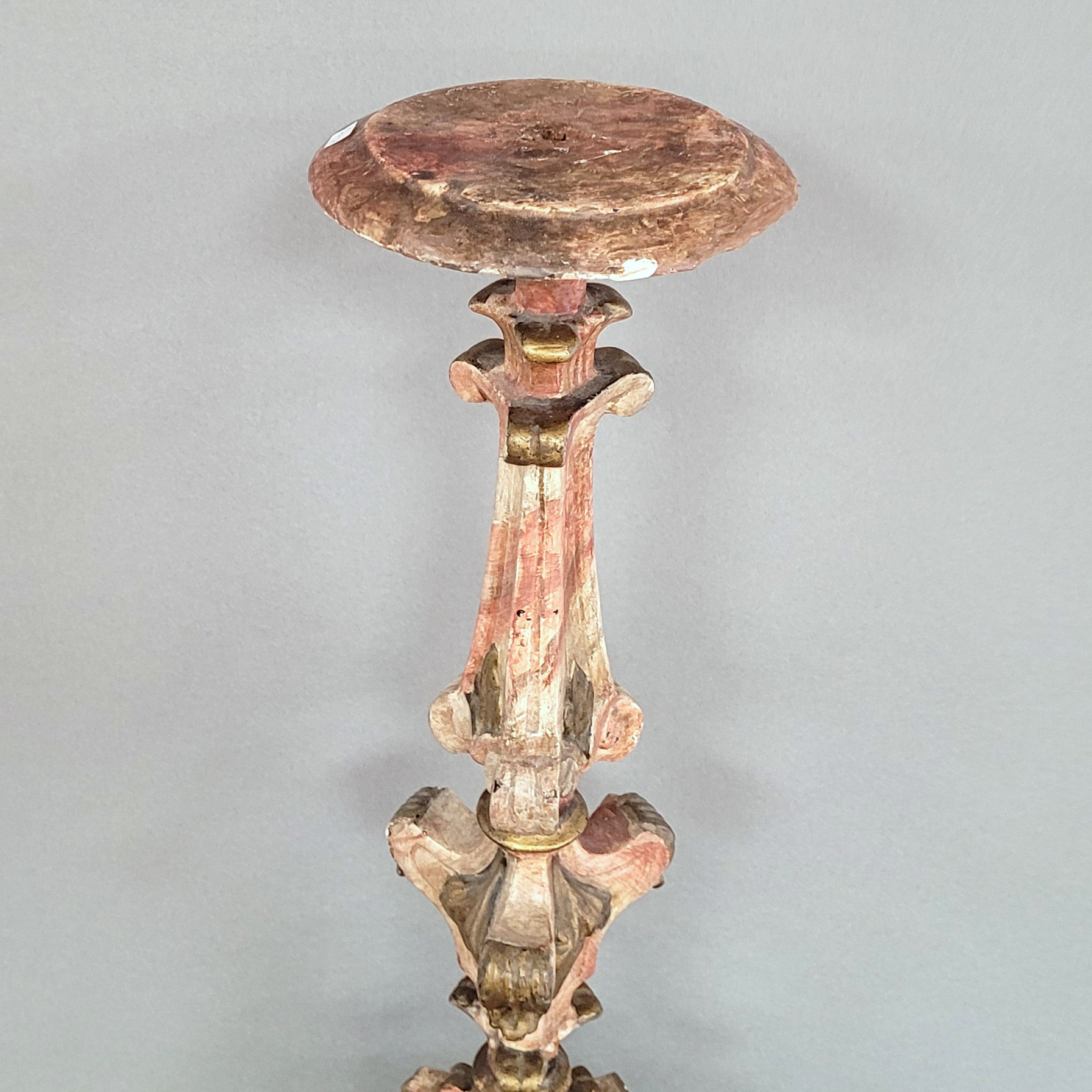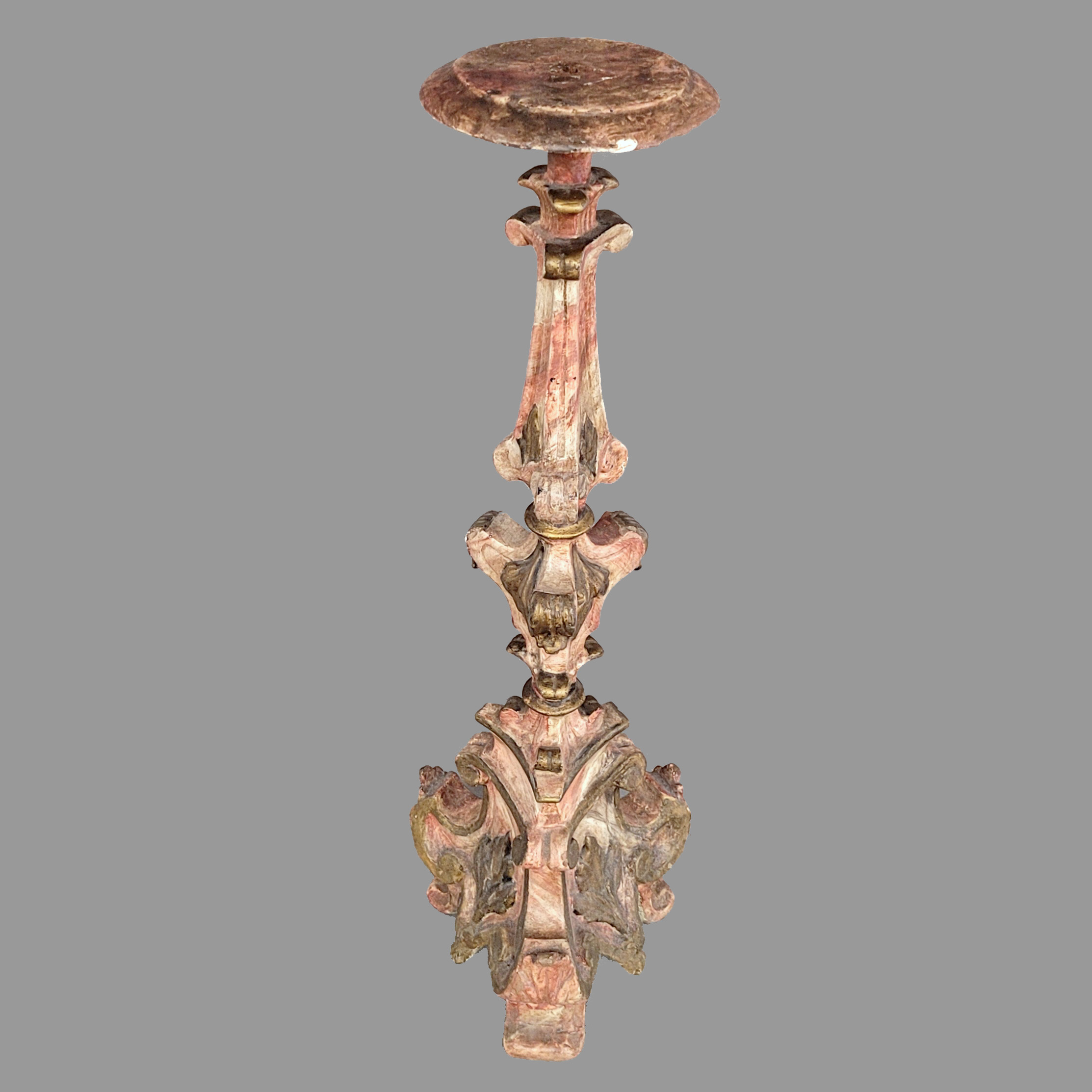 Holz, geschnitzt, originale Marmorimitatfassung, Vergoldung, Süddeutsch 18. Jahrhundert, Höhe 82 cm (Dorn verloren, kleiner Fassungsverlust unter der Tropfschale)