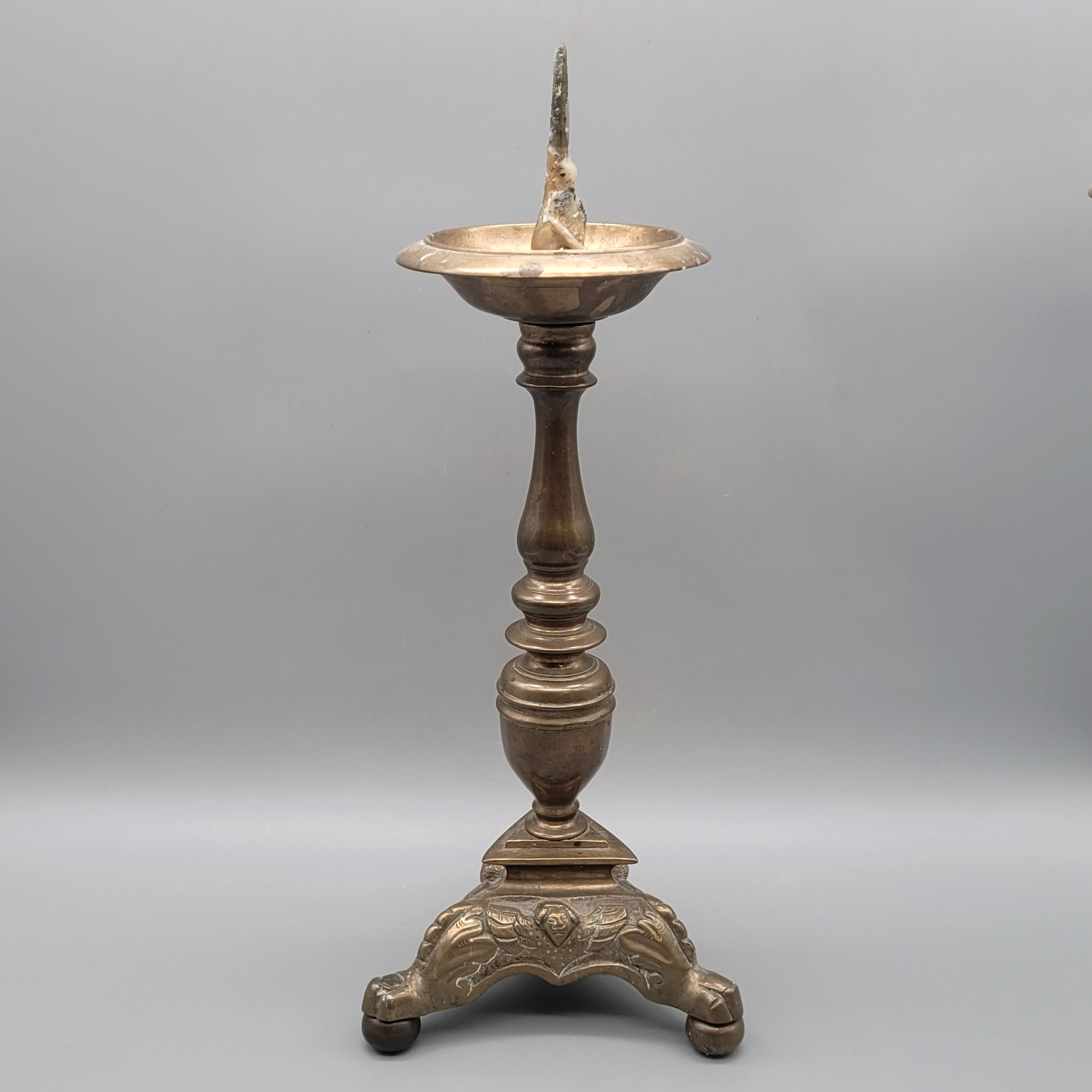 Messing, Fuß mit geflügelten Puttenköpfen, Dinant, um 1700, Höhe 38 cm (mit Dorn)