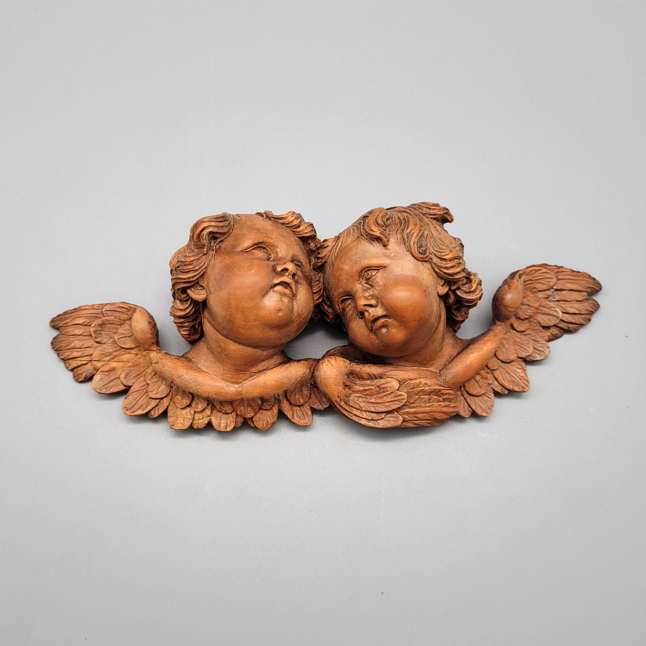 Paar geflügelte PuttenköpfeBuchsbaum, geschnitzt, rückseitig abgeflacht, Flämisch 18. Jahrhundert, 7 x 20 cm