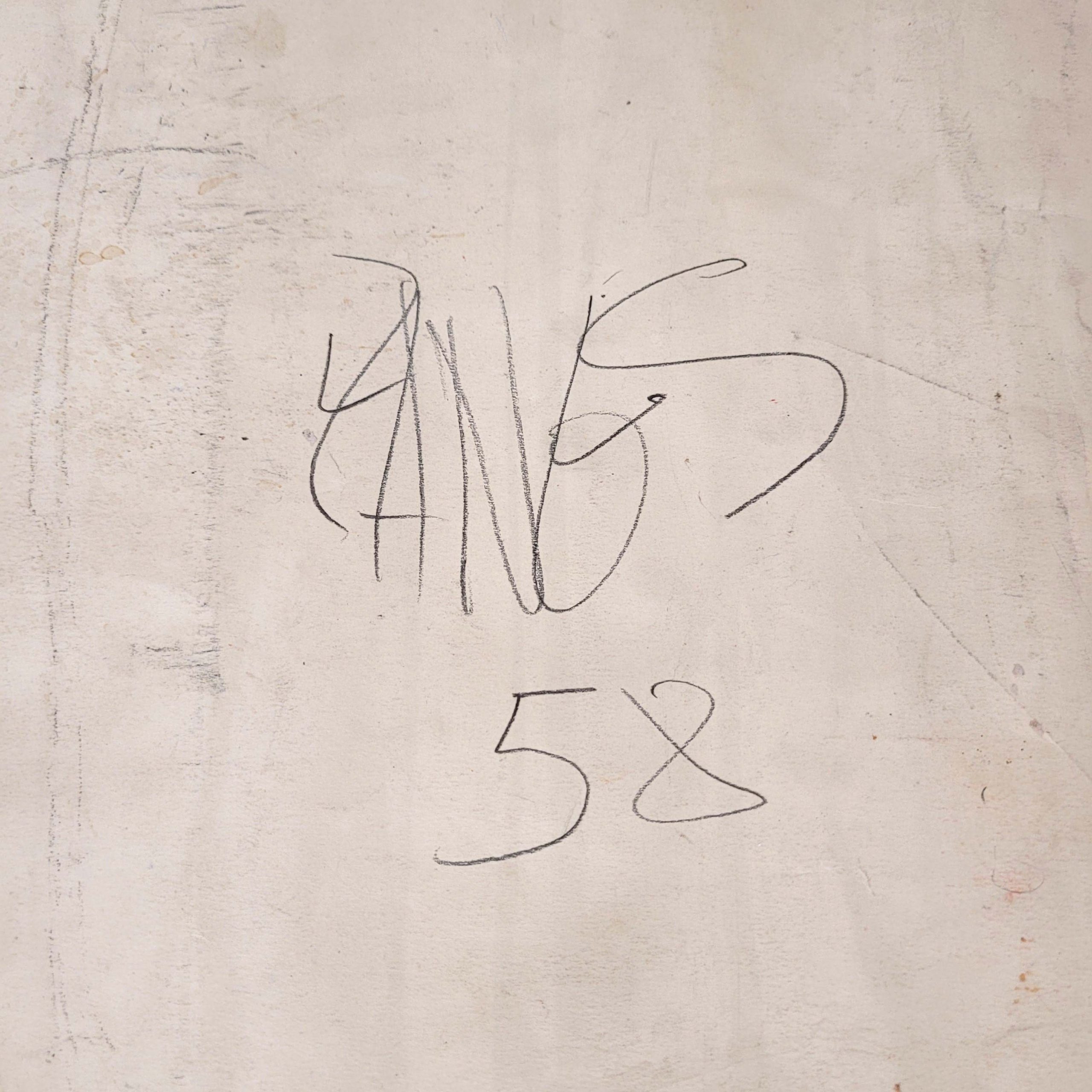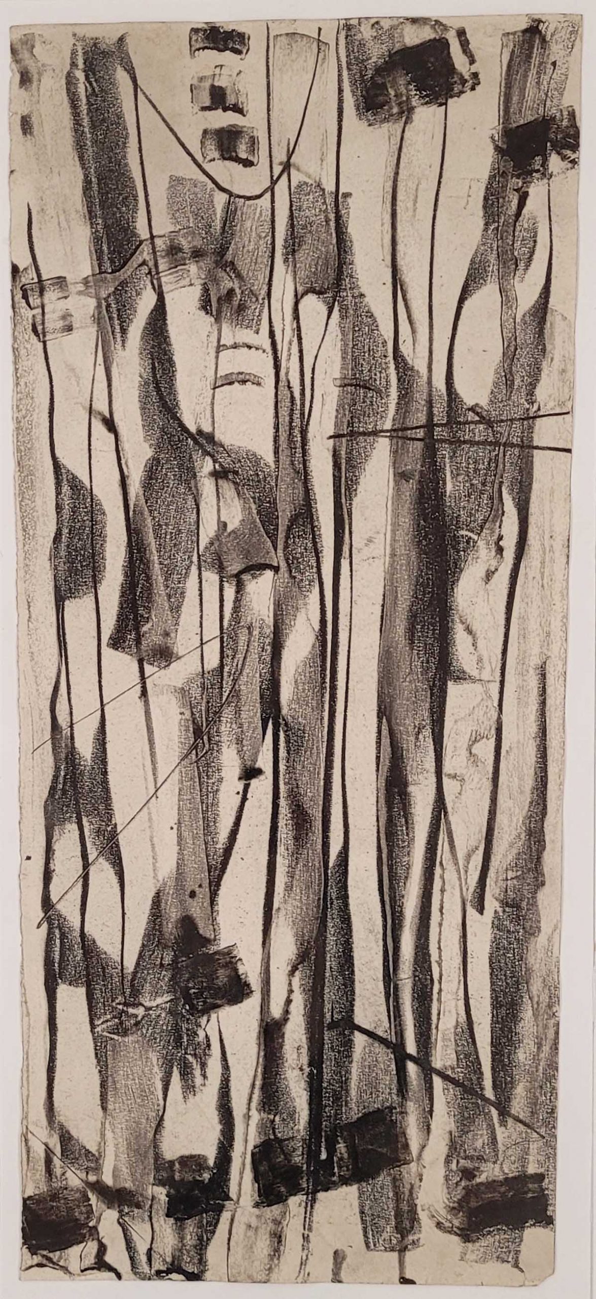 Kreide, Ölkreide auf Papier, verso signiert und datiert (19)58, 77,5 x 33,5 cm, gerahmt unter Glas und Passepartout (Gutachten Emmy de Martelaere, Paris 2017 und Helgard Müller-Jensen, Karlsruhe 2024 verso geklebter Einriss, Stauchungen)