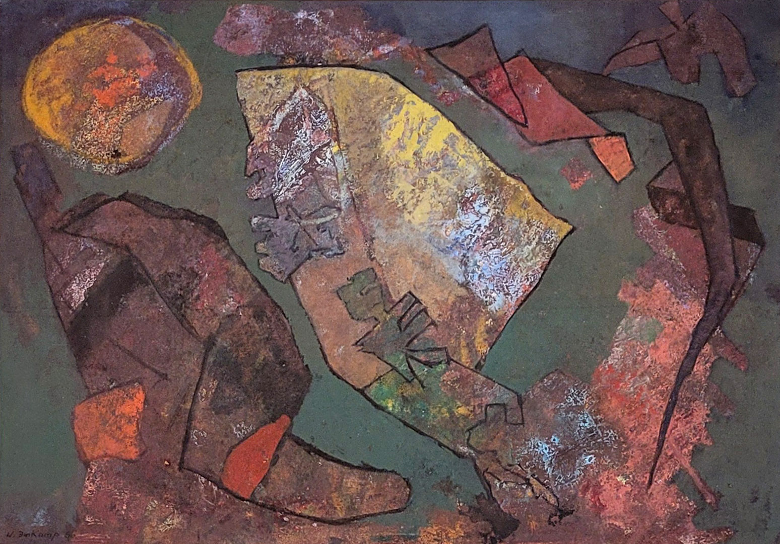 IMKAMP, Wilhelm (1906-1990): Abstrakte KompositionÖl auf Karton, signiert und datiert (19)66 unten links, 47 x 68 cm, gerahmt unter Glas und Passepartout