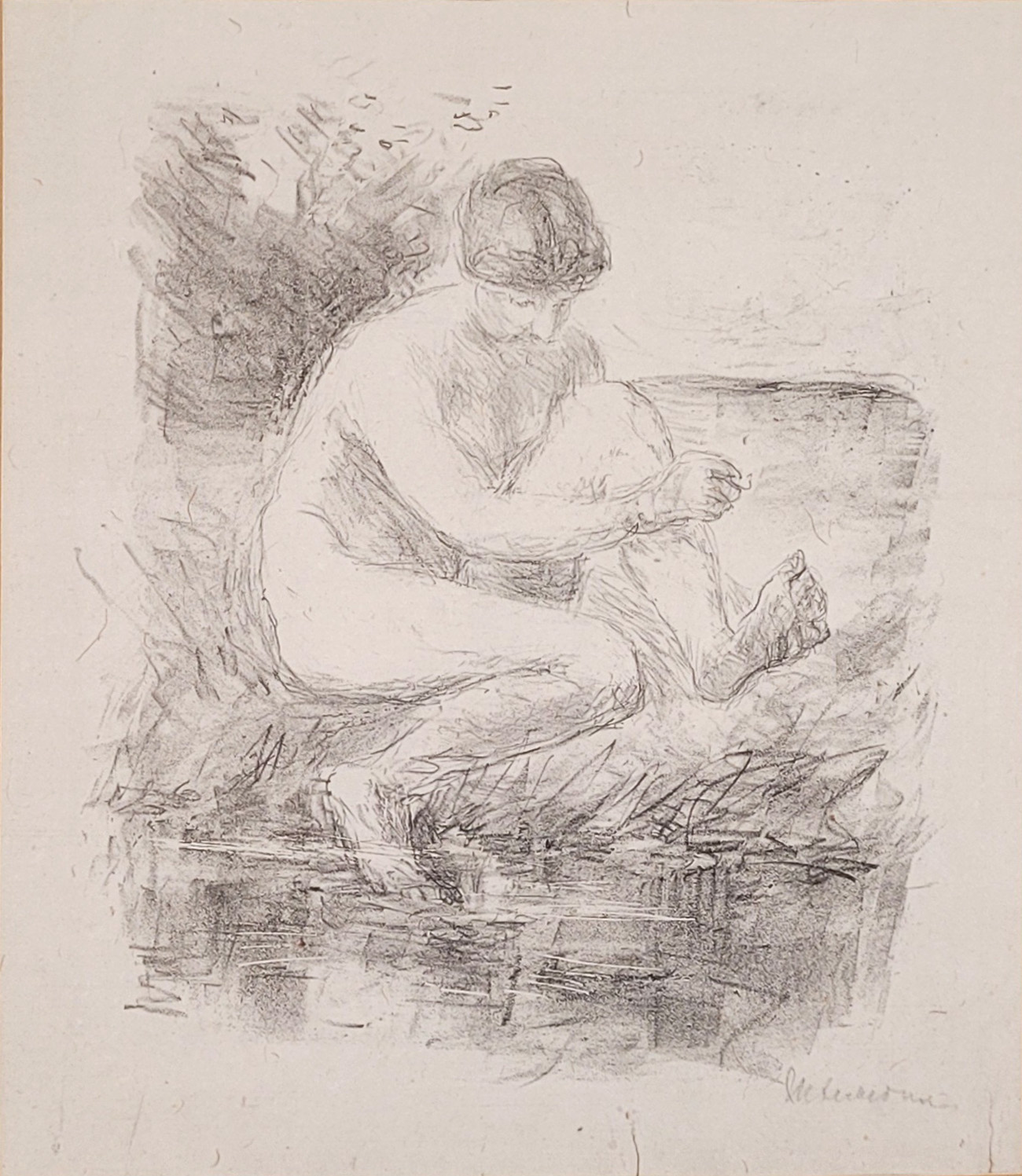 LIEBERMANN, Max (1847-1935): Die BadendeLithographie, 1926, signiert unten links, 28,5 x 23,5 cm, gerahmt unter Glas und Passepartout (Stauchfalten, kleine Einrisse unten)