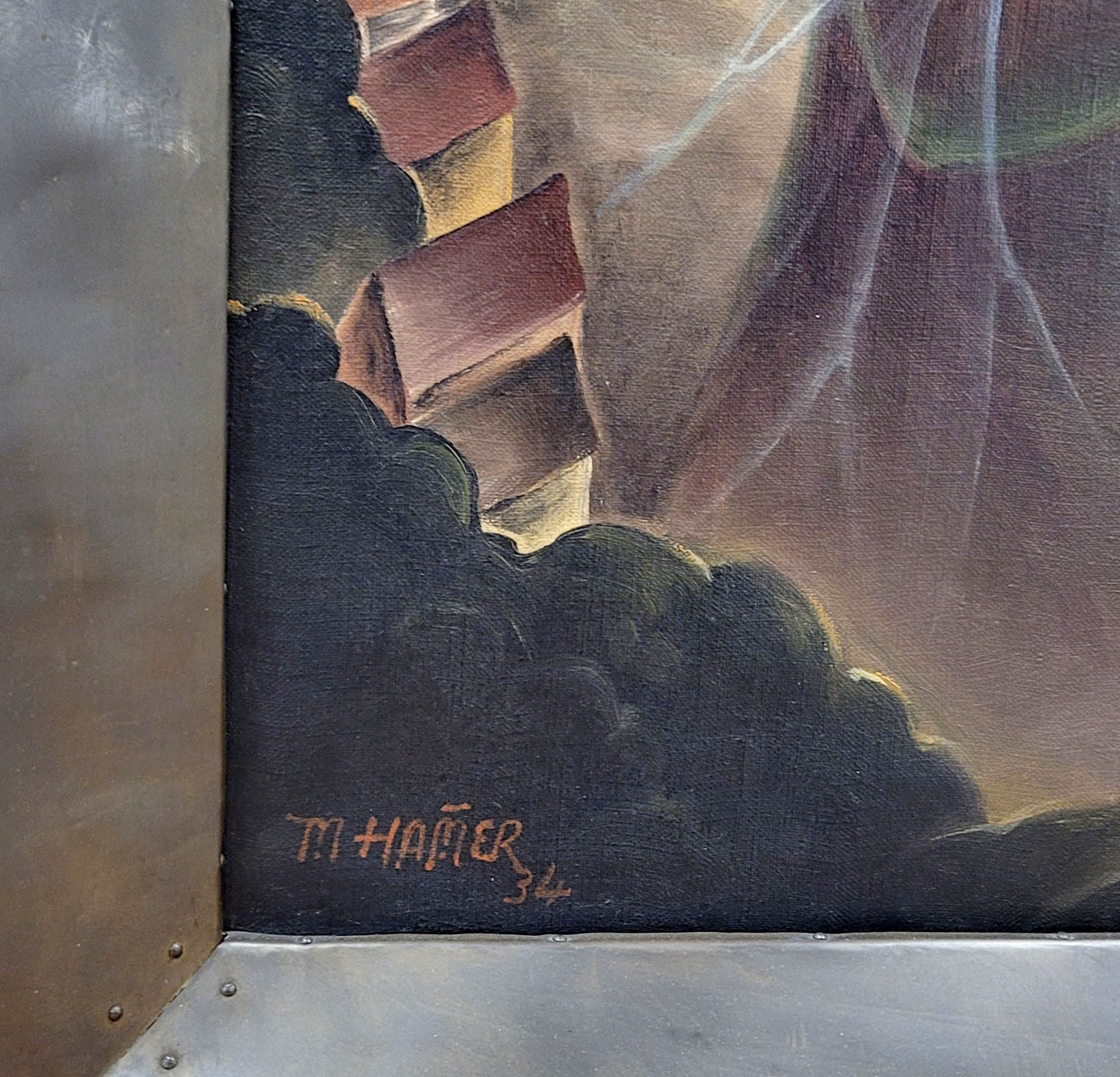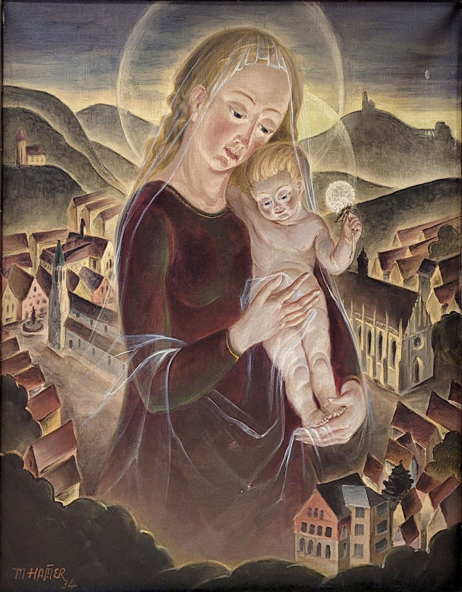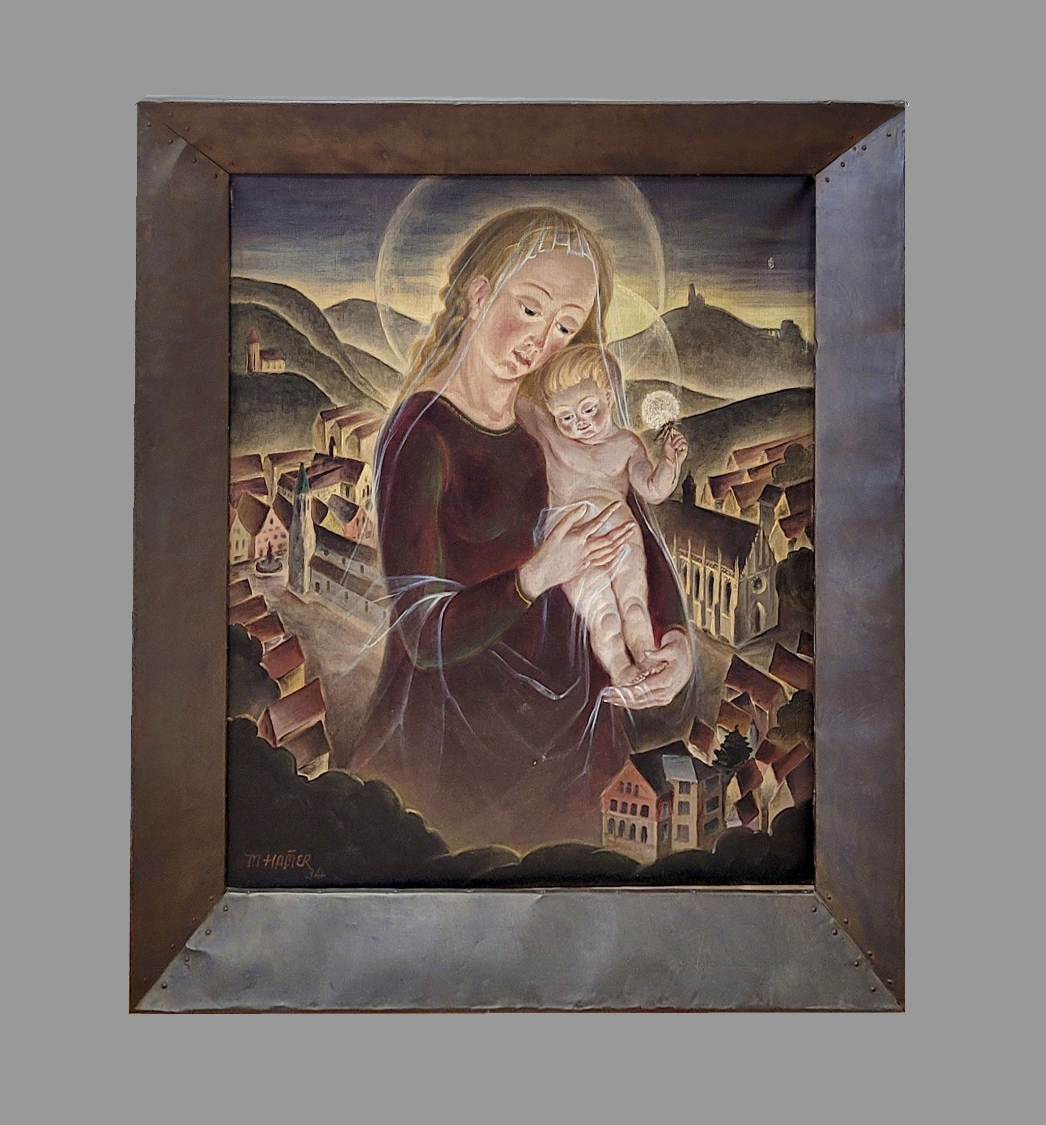 HAMMER, Max (1884-1973): Maria als Beschützerin von Schwäbisch GmündÖl auf Leinwand, signiert und datiert (19)34 unten links, 80 x 65 cm, Rahmen, Holzkern, Kupferblech von Karl Georg Anton Hohl (1904-1988)