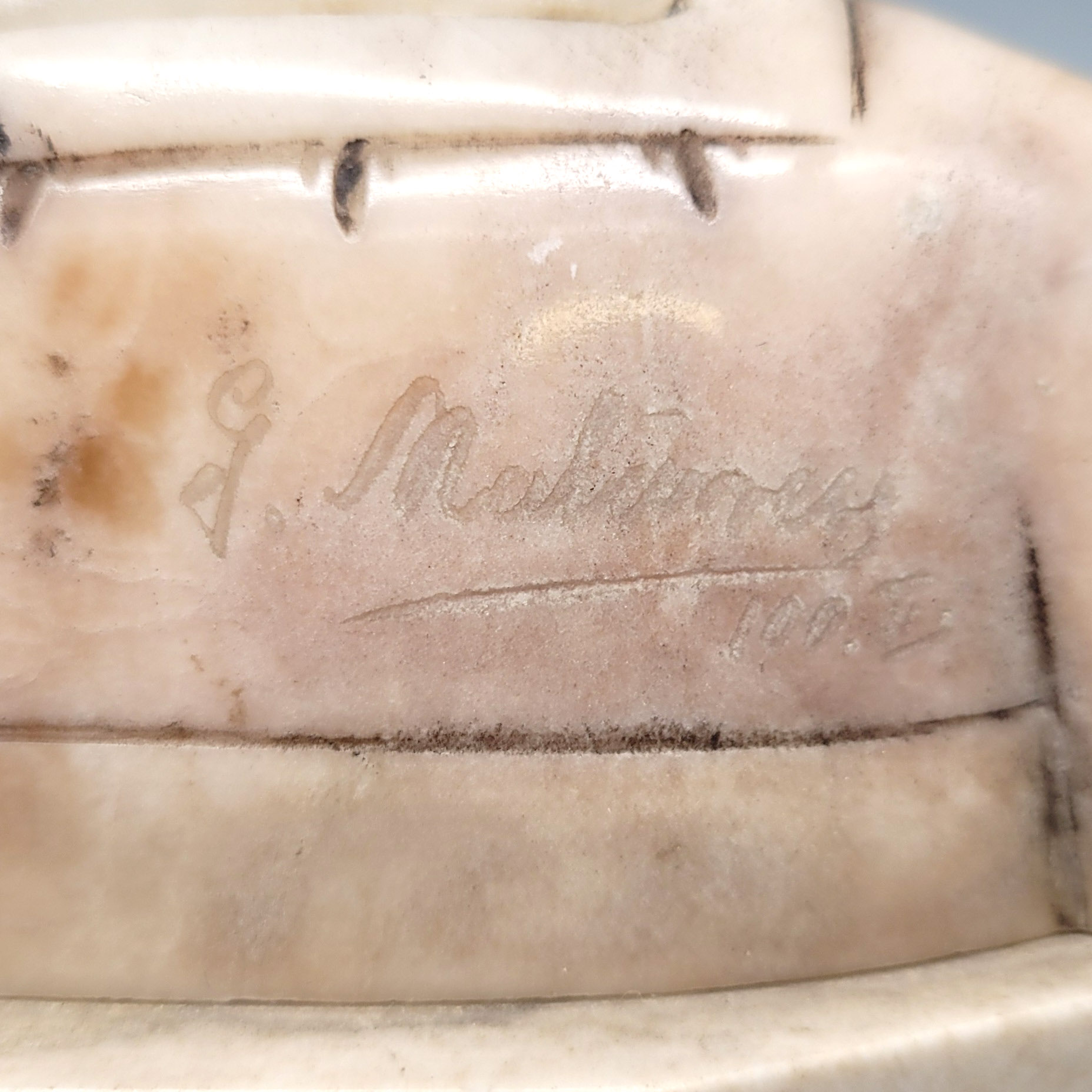 Büste einer jungen FrauAlabaster, unterschiedlich poliert, signiert „G. Salunes“, Höhe 16 cm