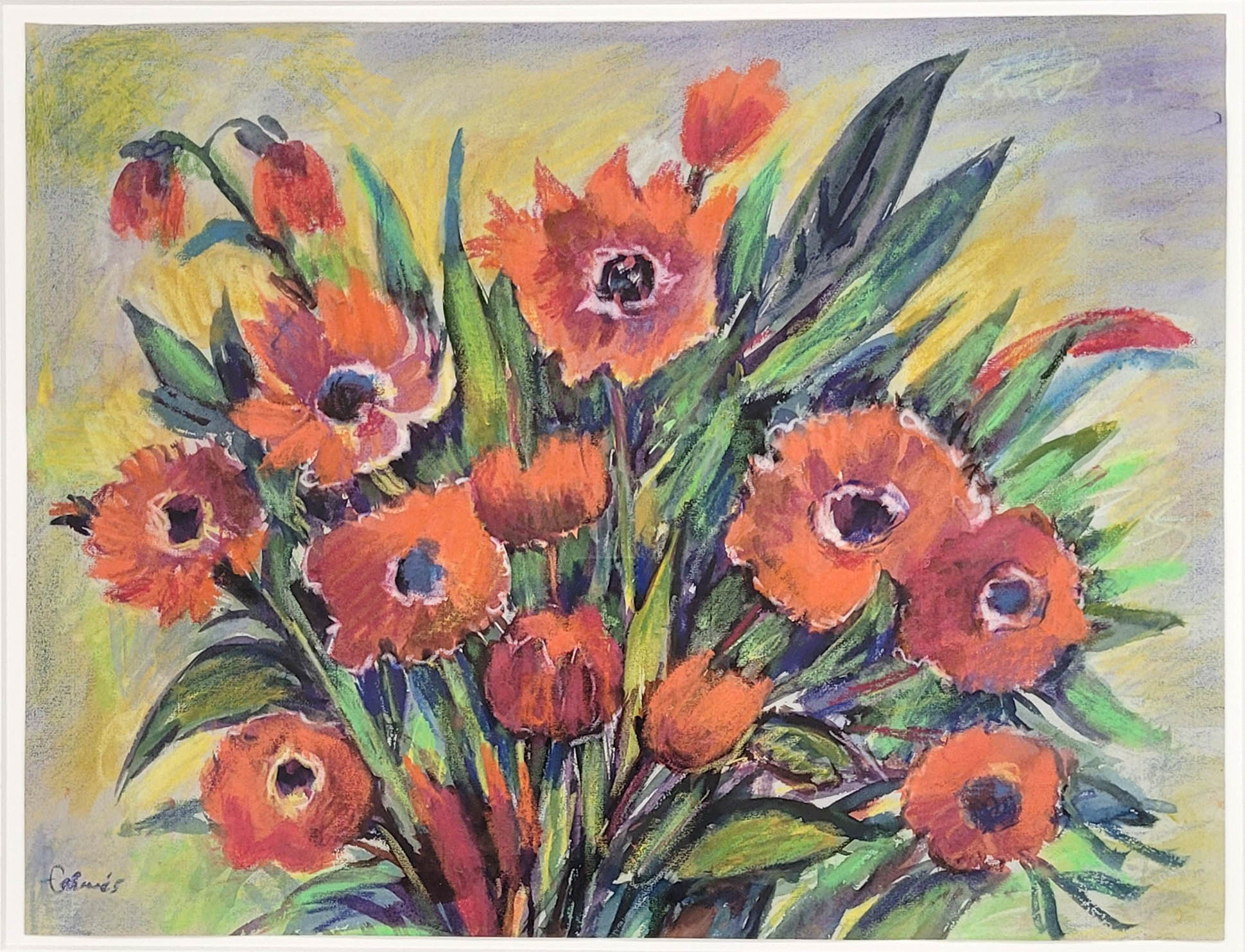 CALMÉS, Peter (1900-1968): Rote BlütenGouache auf Tonpapier, um 1940, signiert unten links, 44 x 58 cm, gerahmt unter Glas und Passepartout