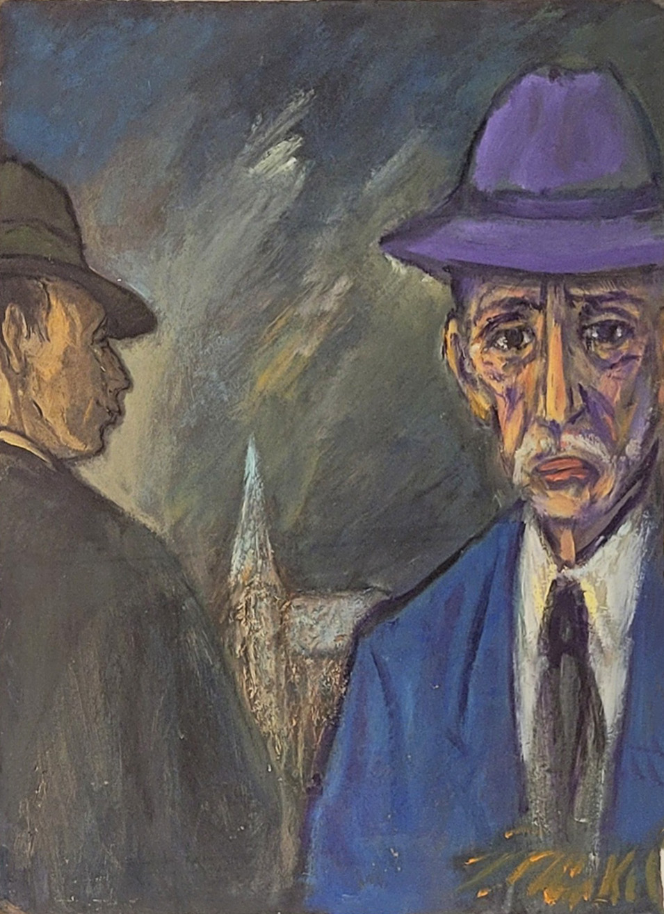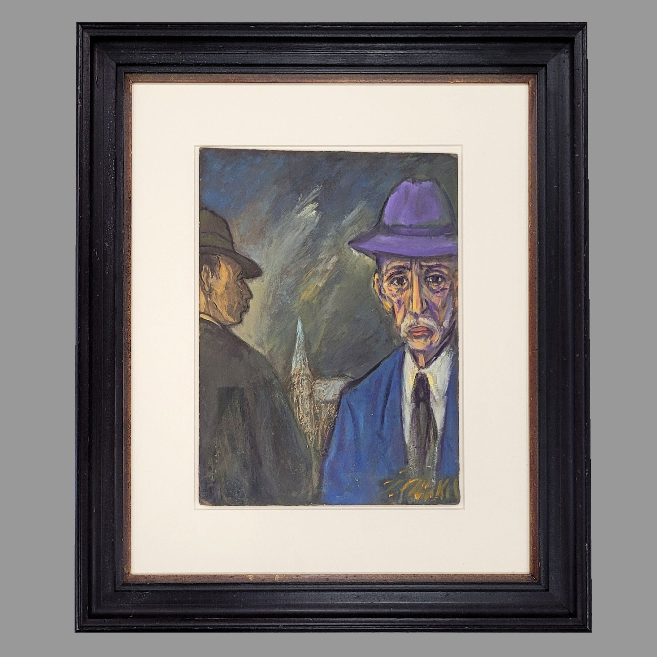 NÜCKEL, Otto (1888-1956): BegegnungÖl auf Malkarton, wohl um 1920/1930, signiert unten rechts, 50 x 35,5 cm, gerahmt unter Glas und Passepartout