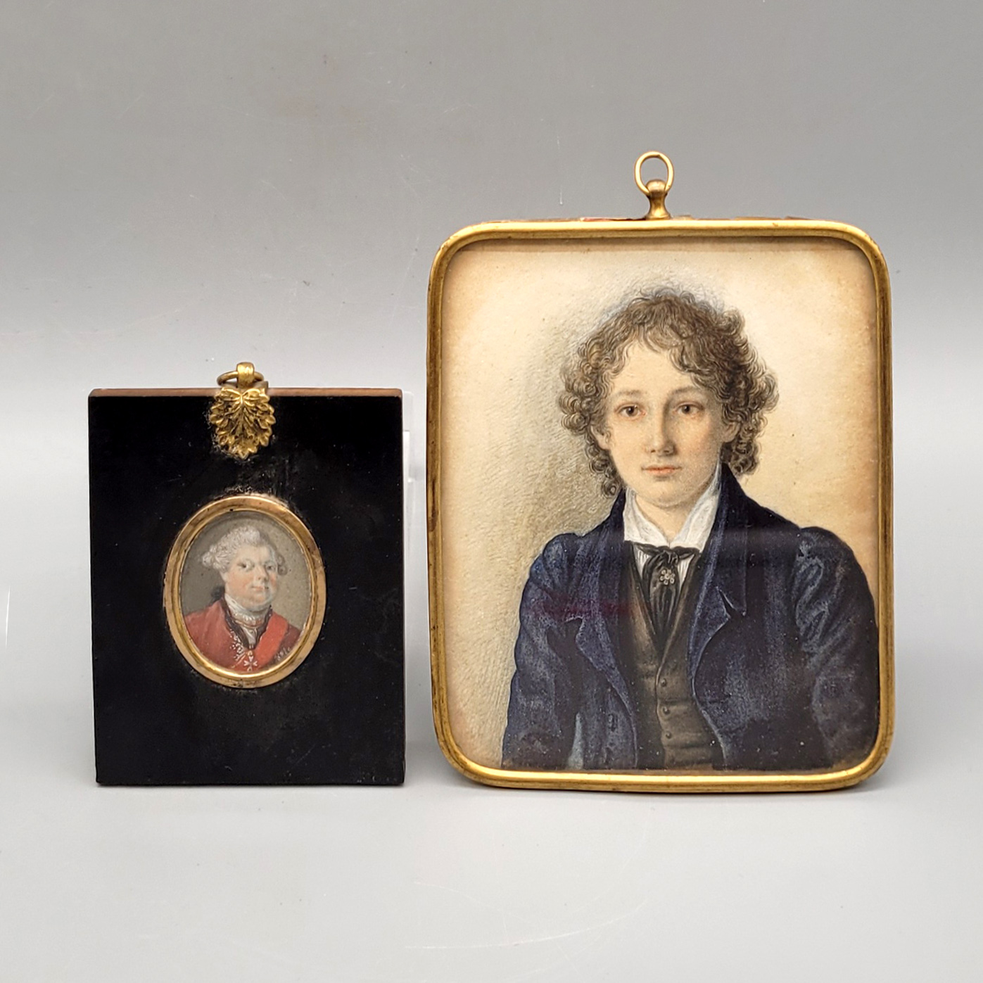 Zwei Miniaturen mit Herrenporträts Gouache über Bleistift auf Papier, Deutsch 18./19. Jahrhundert, bis zu 10,5 x 8,5 cm, gerahmt unter Glas