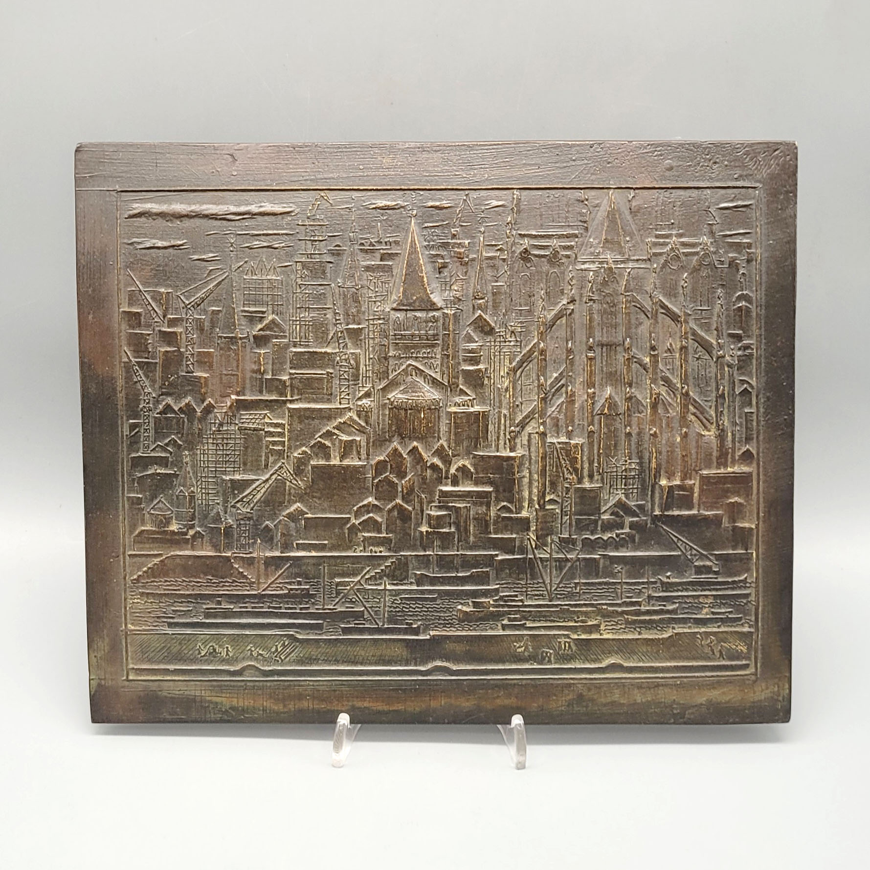HILLEBRAND, Elmar (1925-2016): Ansicht auf den Kölner Dom und Groß St. MartinBronze, 1962, verso Ritzsignatur, 20,5 x 24,5 cm
