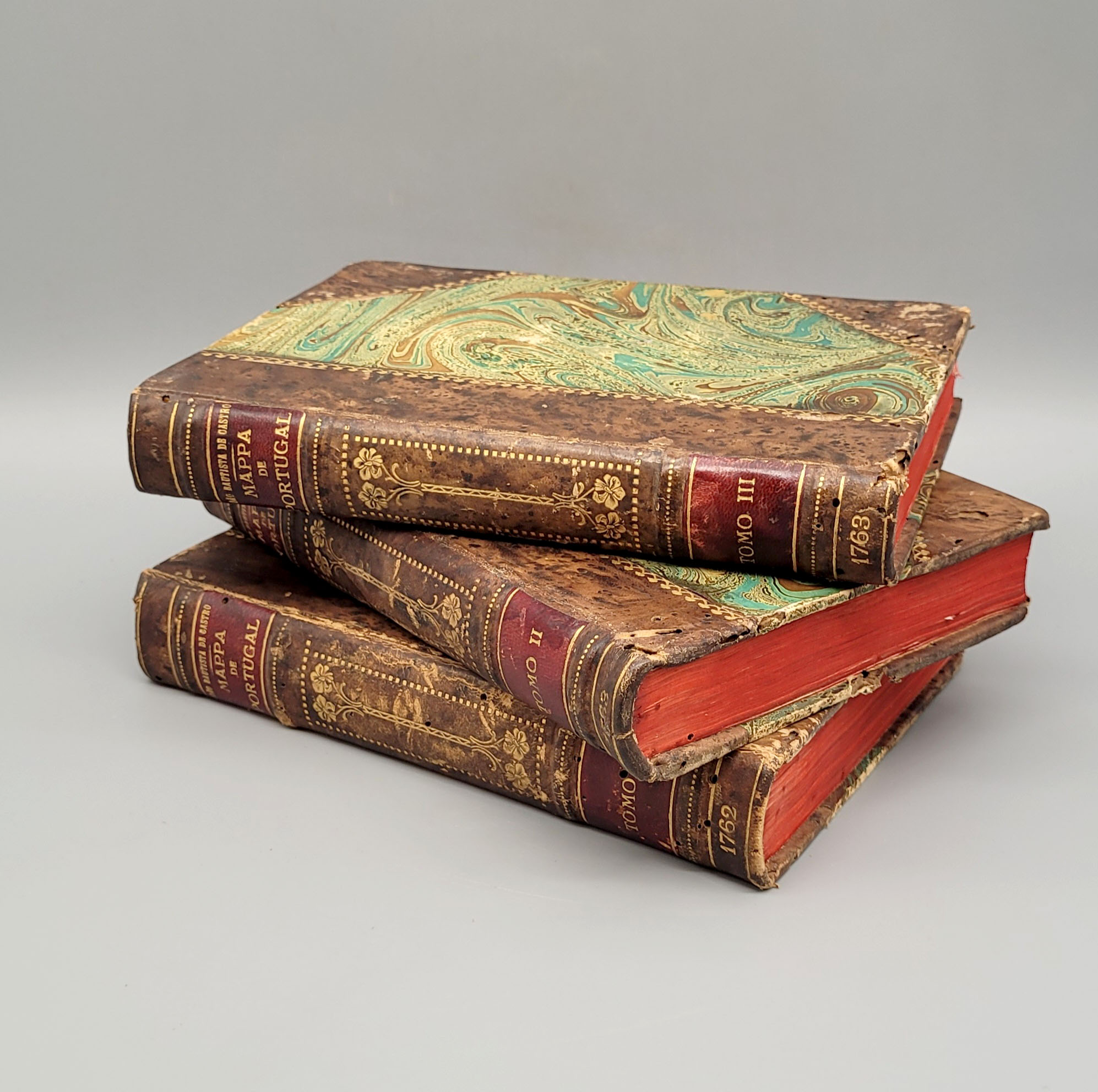 Teil I-V in 3 Bänden, Lissabon (Francisco Luiz Ameno) 1763 (Halbledereinbände der Zeit, Wurmschäden)