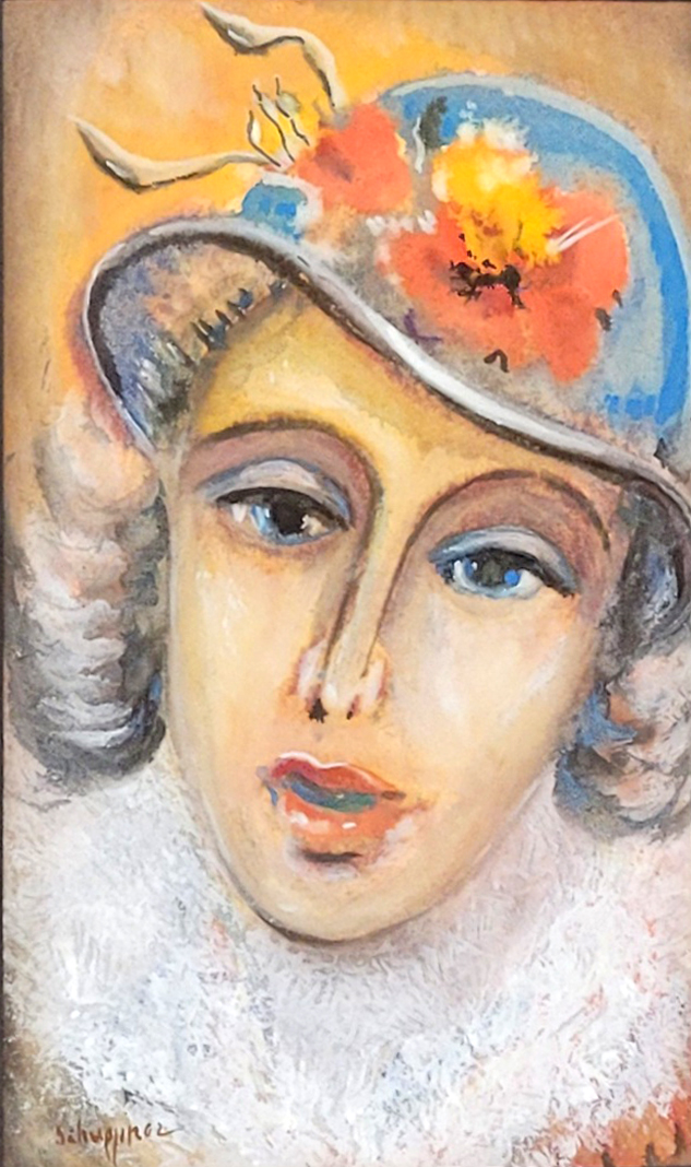 SCHUPPNER, Robert (1896-1966): Porträt der EhefrauMischtechnik auf Papier, signiert unten links, 33,5 x 20 cm, gerahmt unter Glas und Passepartout