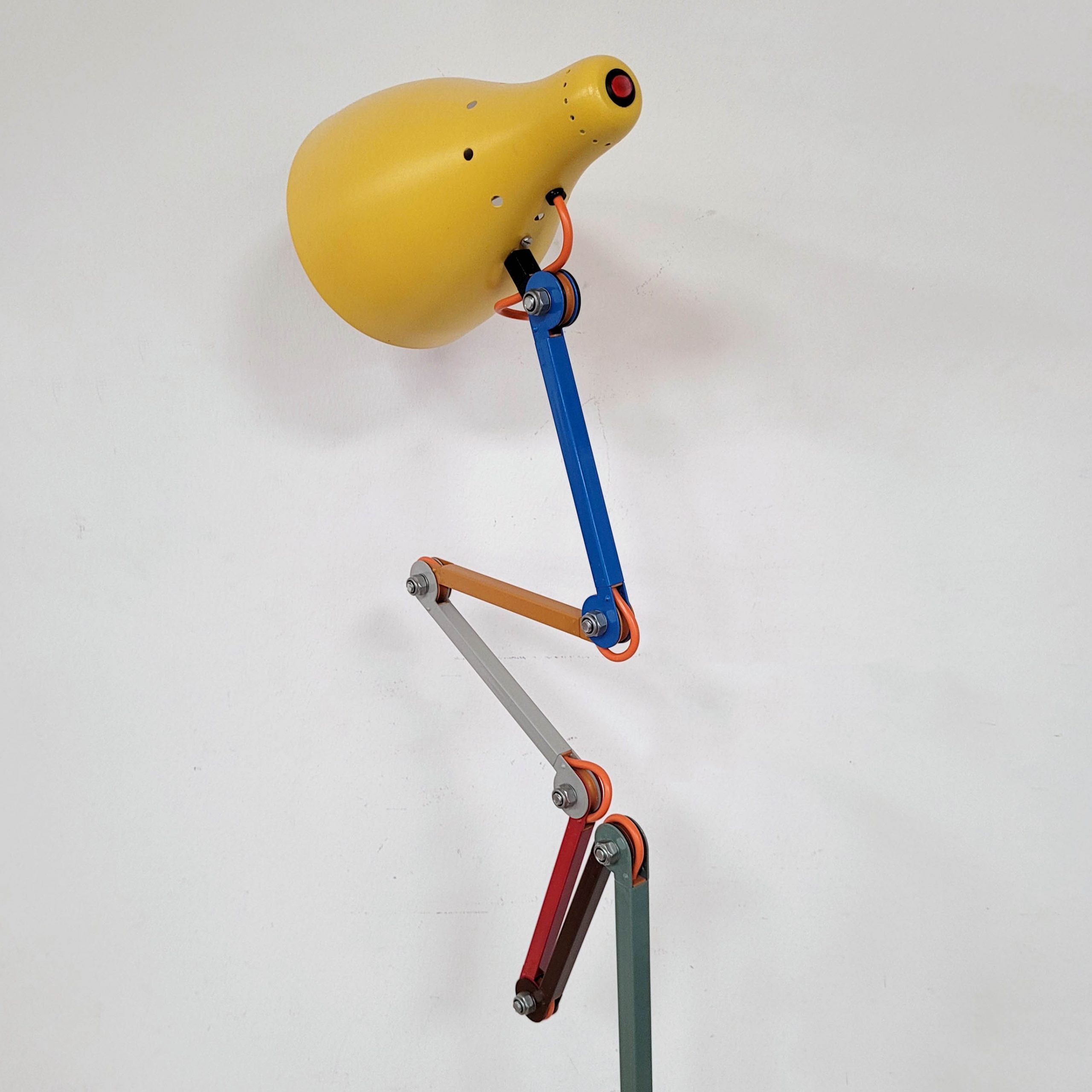 Stehleuchte Mirobolite Tsé&TséMetall, farbig lackiert, gespritzt, fünfarmiger Standfuß mit Rollen, Schaft mit 6 Gelenken, Frankreich, Ende 20. Jahrhundert, Höhe ca. 185 cm