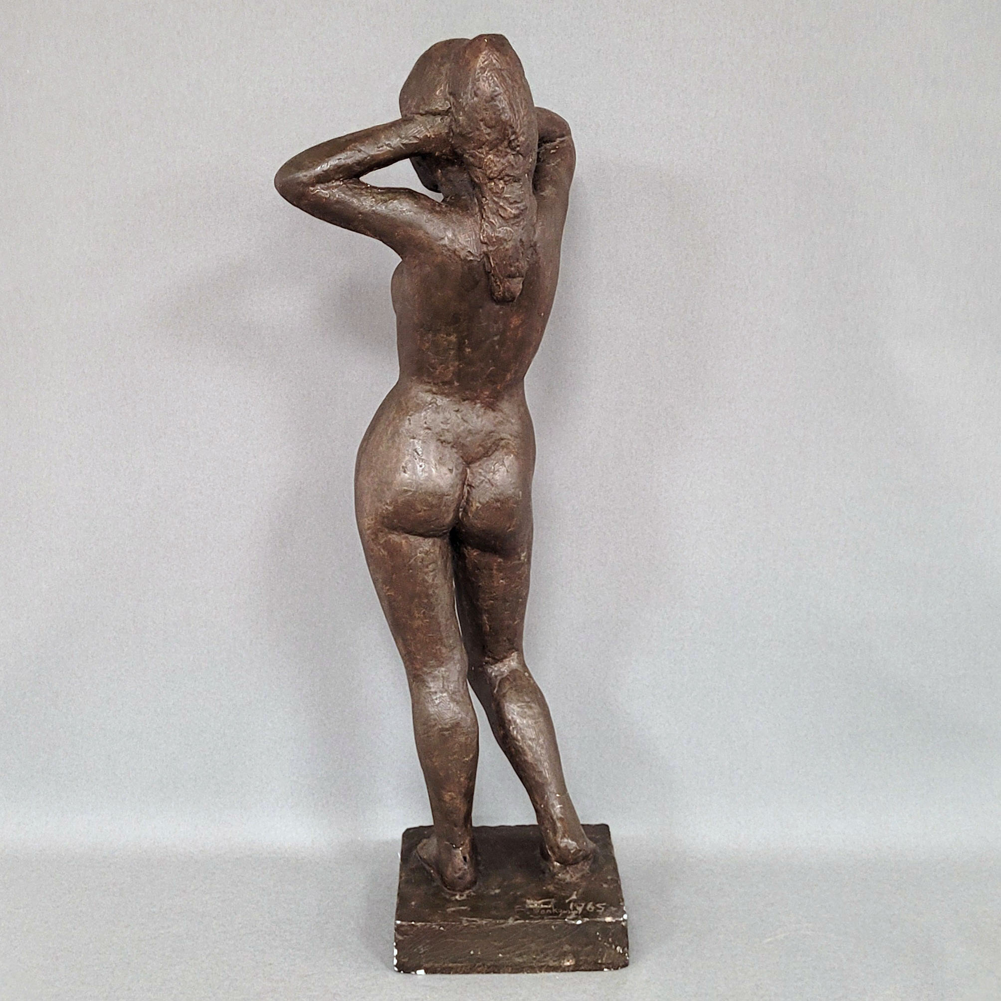 PANKOWSKI, F. (tätig 20. Jh.): Frauenakt mit hinter dem Kopf verschränkten ArmenGips, bronziert, signiert und datiert 1965 auf der Plinthe, Höhe 80 cm