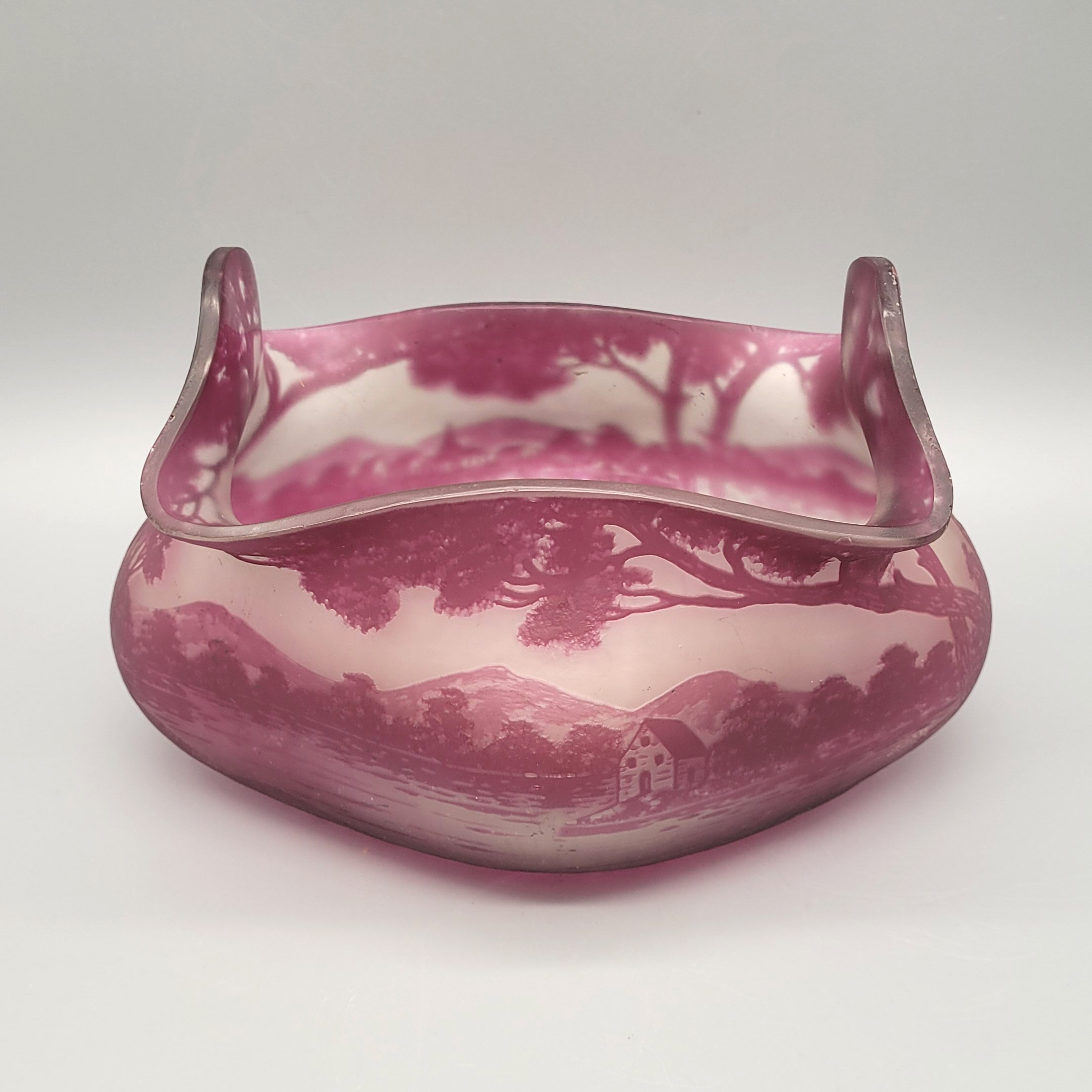 VaseGlas, satiniert, roter Überfang mit Landschaftsdarstellung, signiert „Richard“, Höhe 12 cm