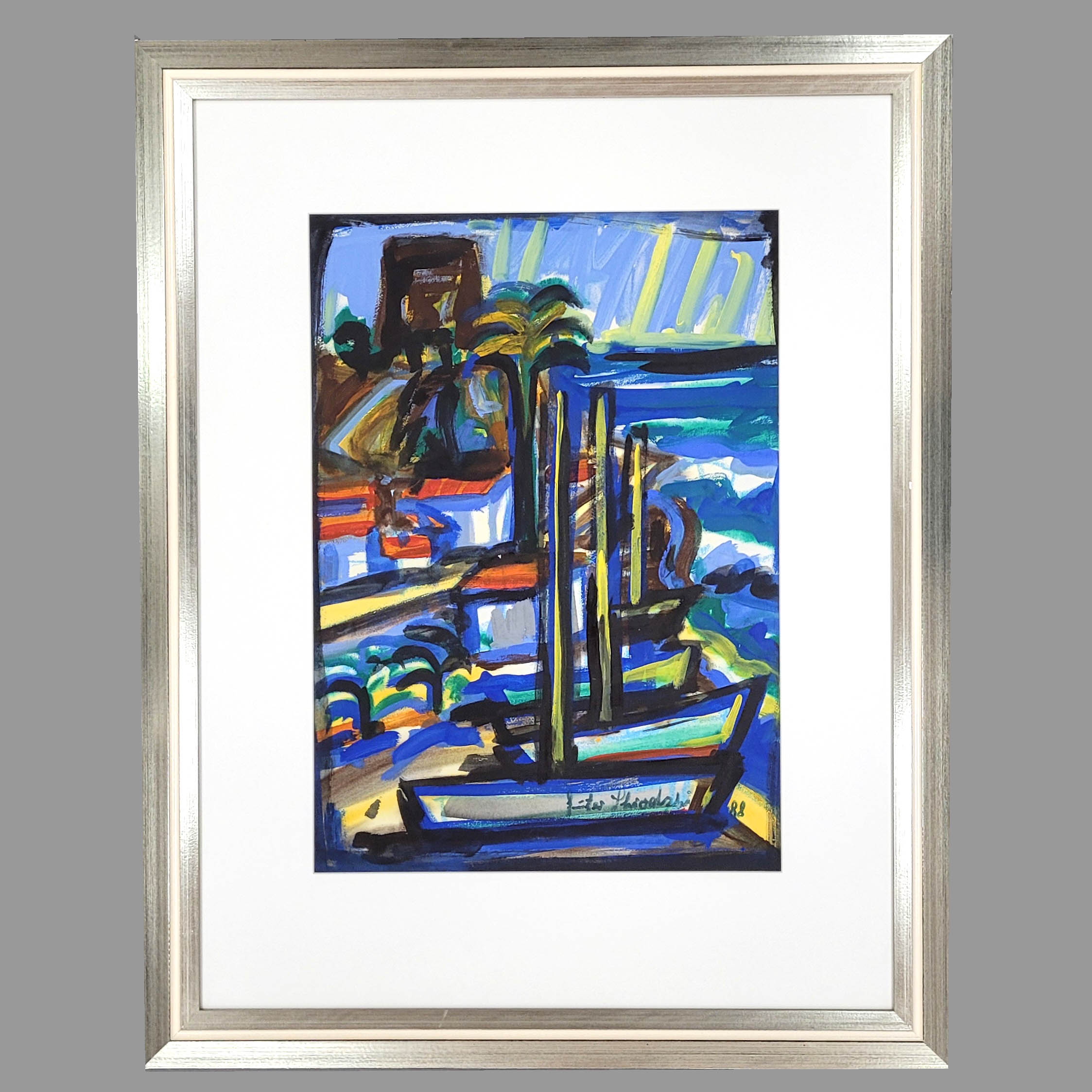 Aquarell auf Papier, signiert und datiert (19)88 unten rechts, 63,5 x 45 cm, gerahmt unter Glas und Passepartout