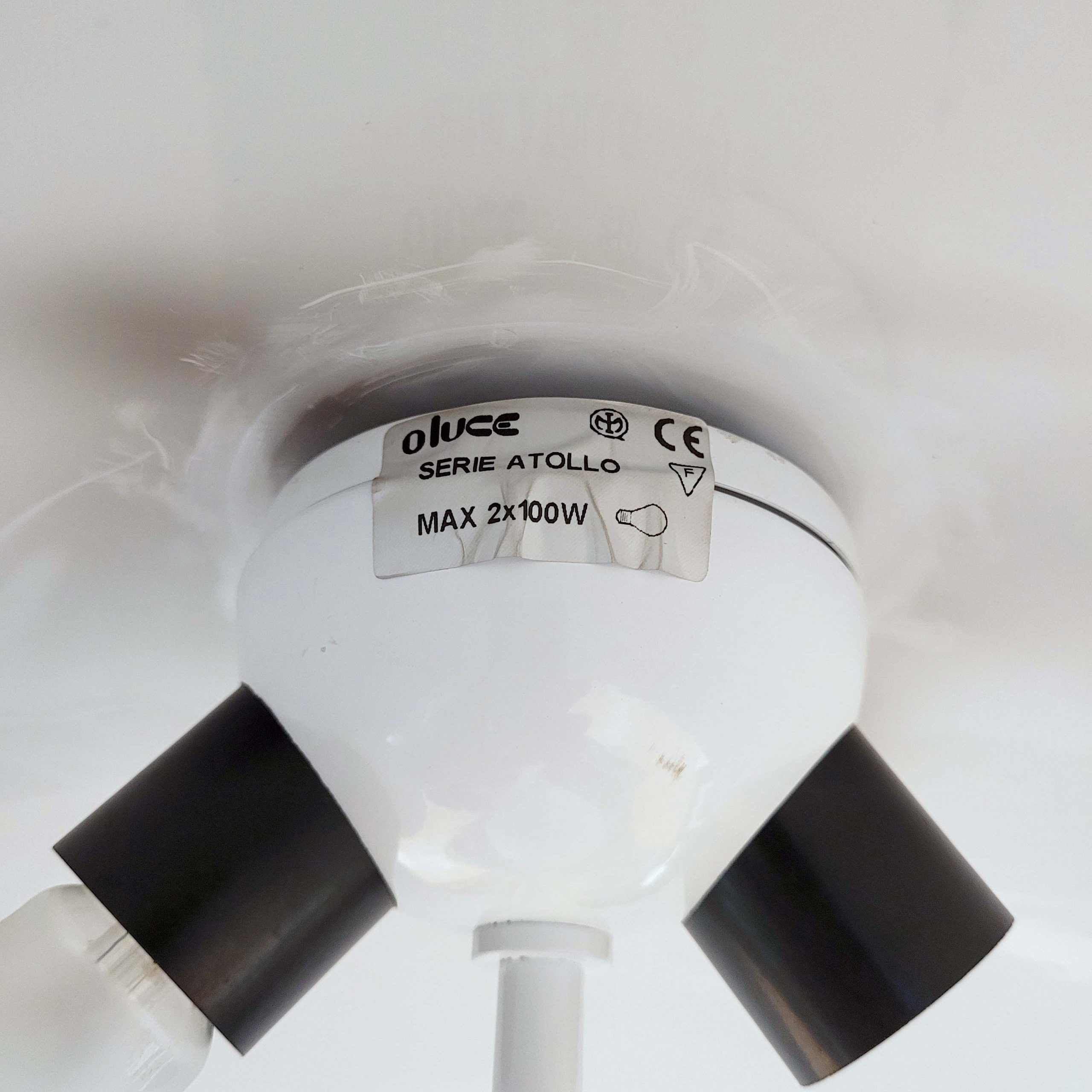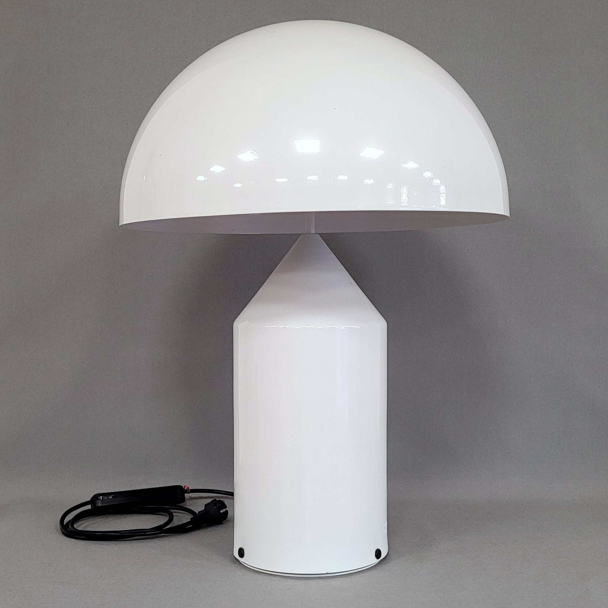 Tischleuchte Oluce Atollo 237Glas, weiß, Metall weiß lackiert, Entwurf Vico Magistretti, 1977, Höhe ca. 69 cm