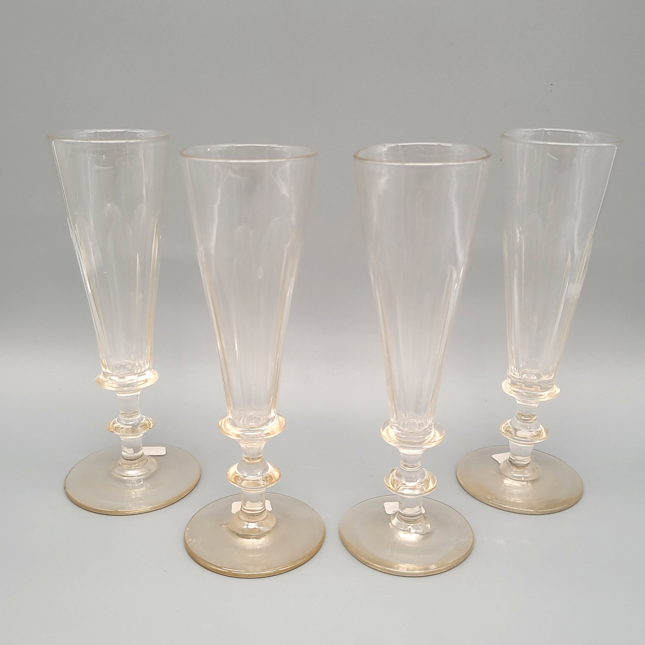Satz von vier SektgläsernGlas, geschliffen, 19. Jahrhundert, Höhe 17,5 cm
