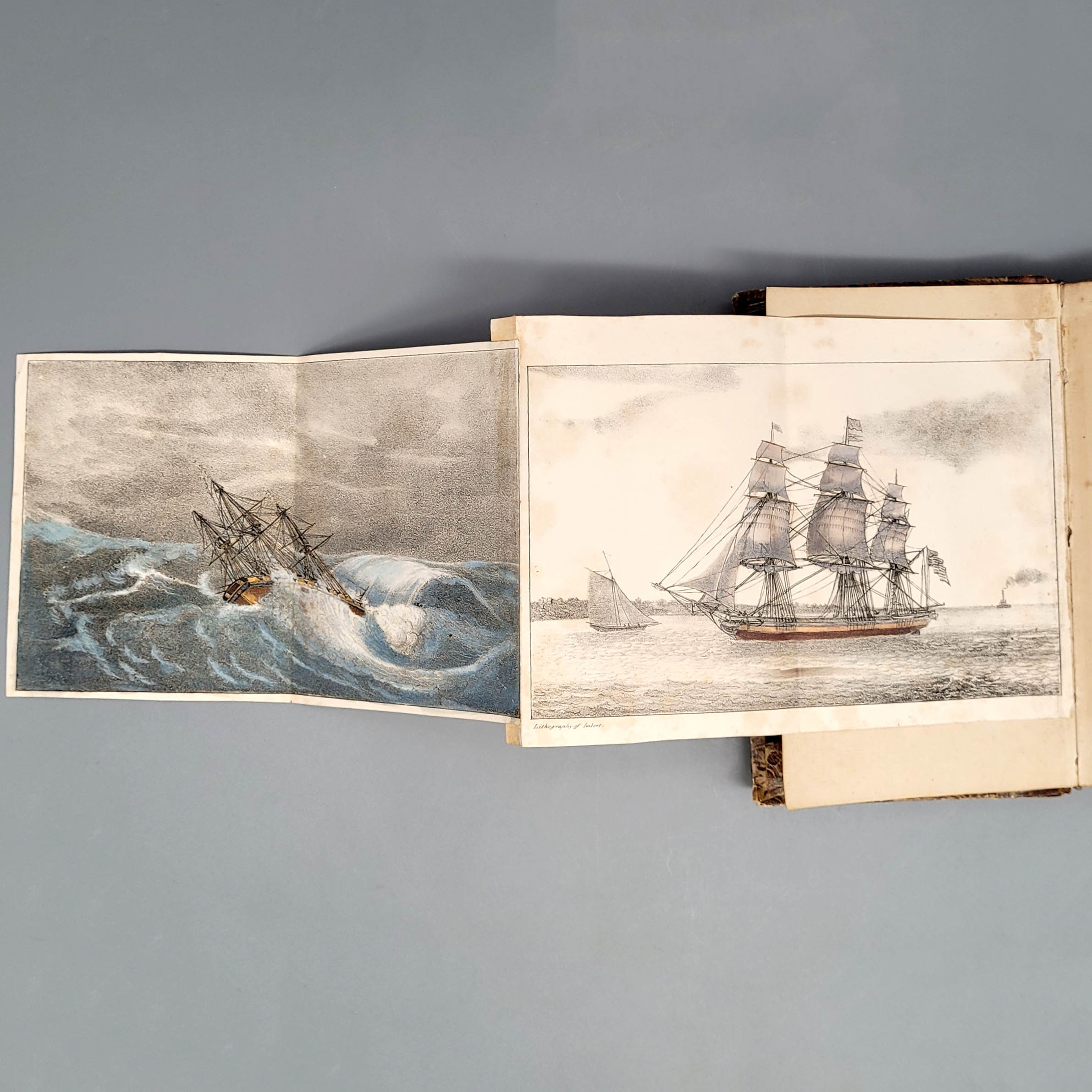 Handschrift auf Papier, eingeklebtes Litho, Brief, späteres Postkutschen-Billet von 1847 von Hückeswagen nach Köln, 17,5 x 10,5 cm, Halbledertascheneinband (beschädigt)