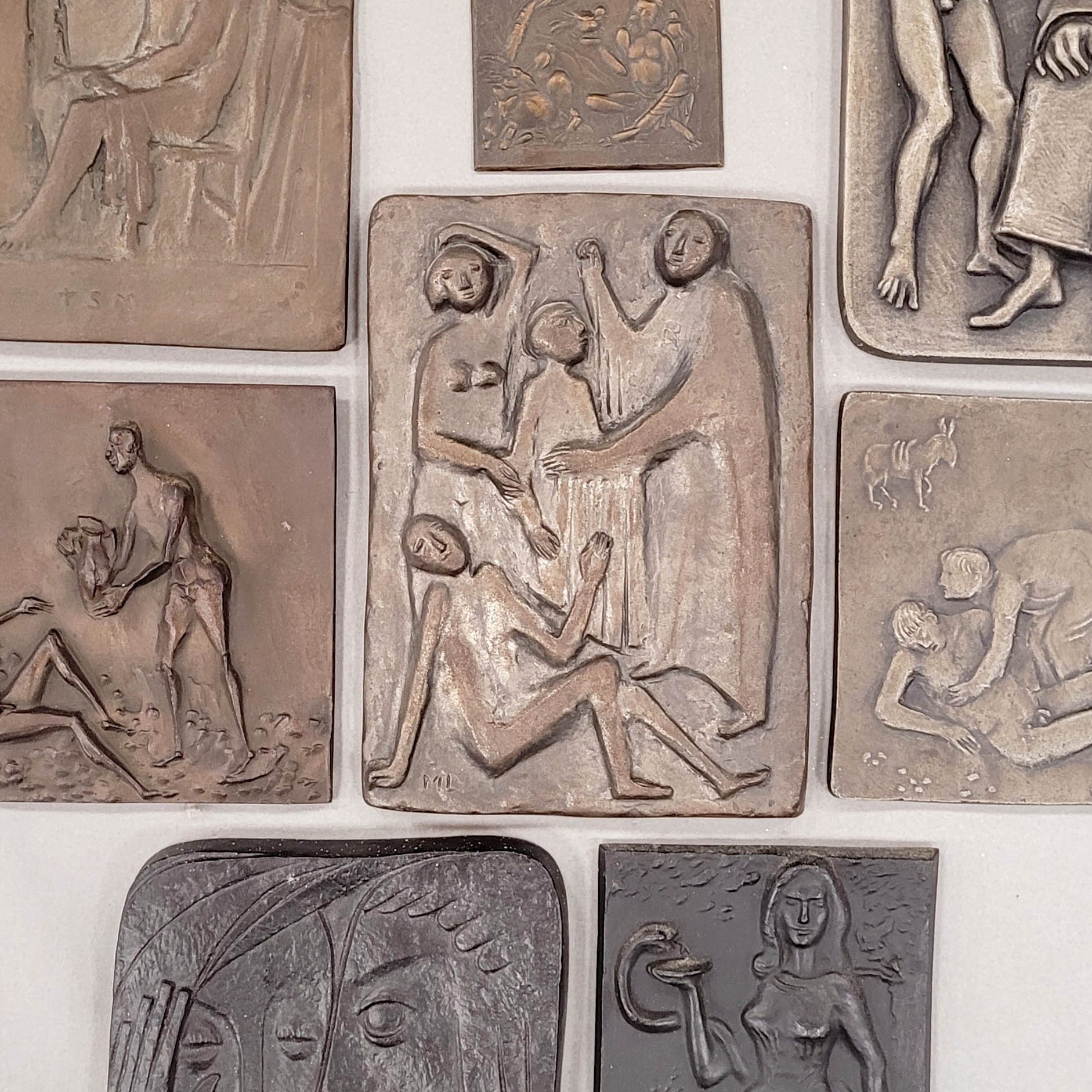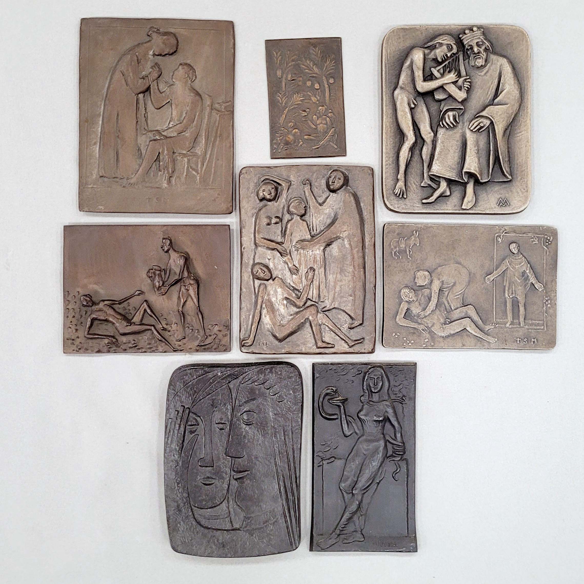 Reliefplatten, Eisenguss, Buderus für Thomae, Biberach, Arbeiten von Kurt Schwippert (1903-1983), Marianne Lüdicke (1919-2012), Max Faller (1927-2012), Martin Mayer (1931-2022), Roland Friedrichsen (1910-1994) u.a., bis zu 23,5 x 19,5 cm