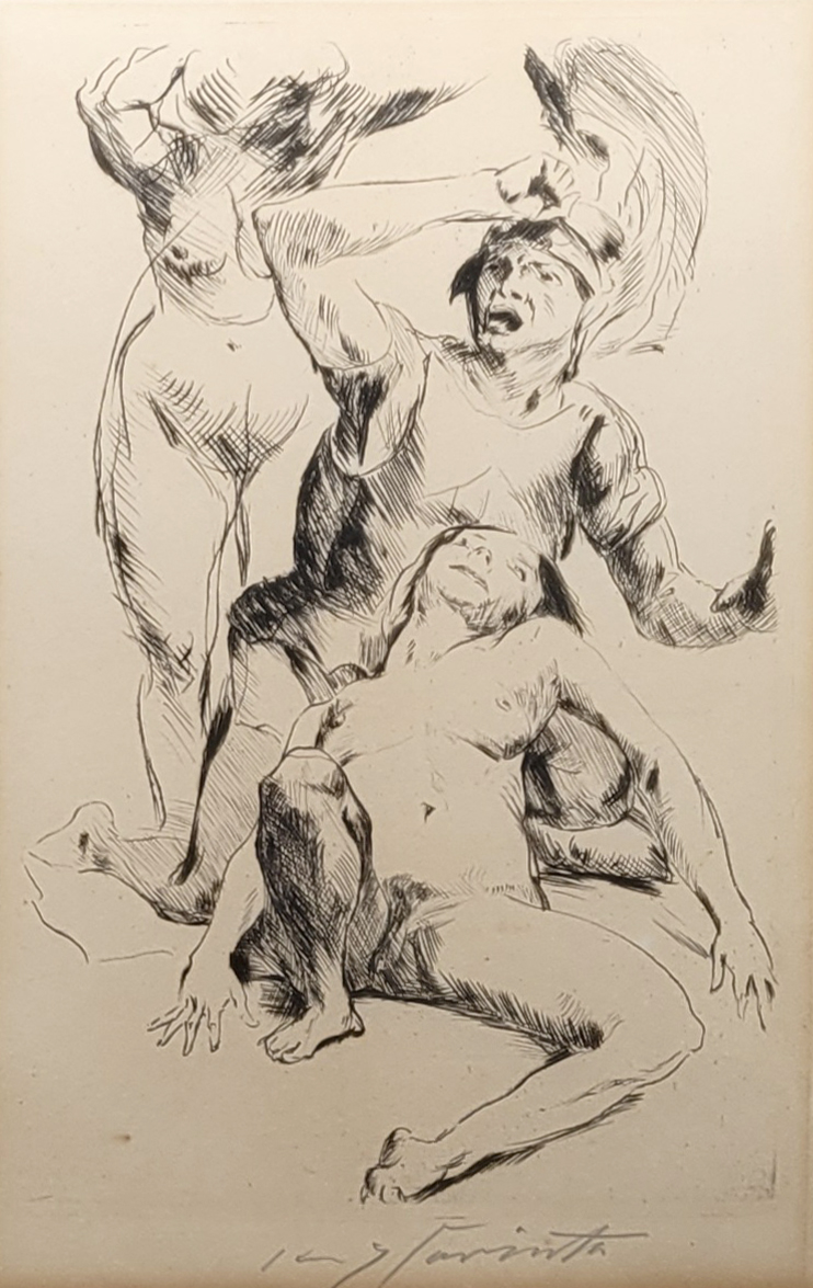 CORINTH, Lovis (1858-1925): Theseus und Ariadne IIRadierung, 1914, signiert unten rechts, 33 x 22 cm, gerahmt unter Glas und Passepartout (gleichmäßig gebräunt, lichtrandig)