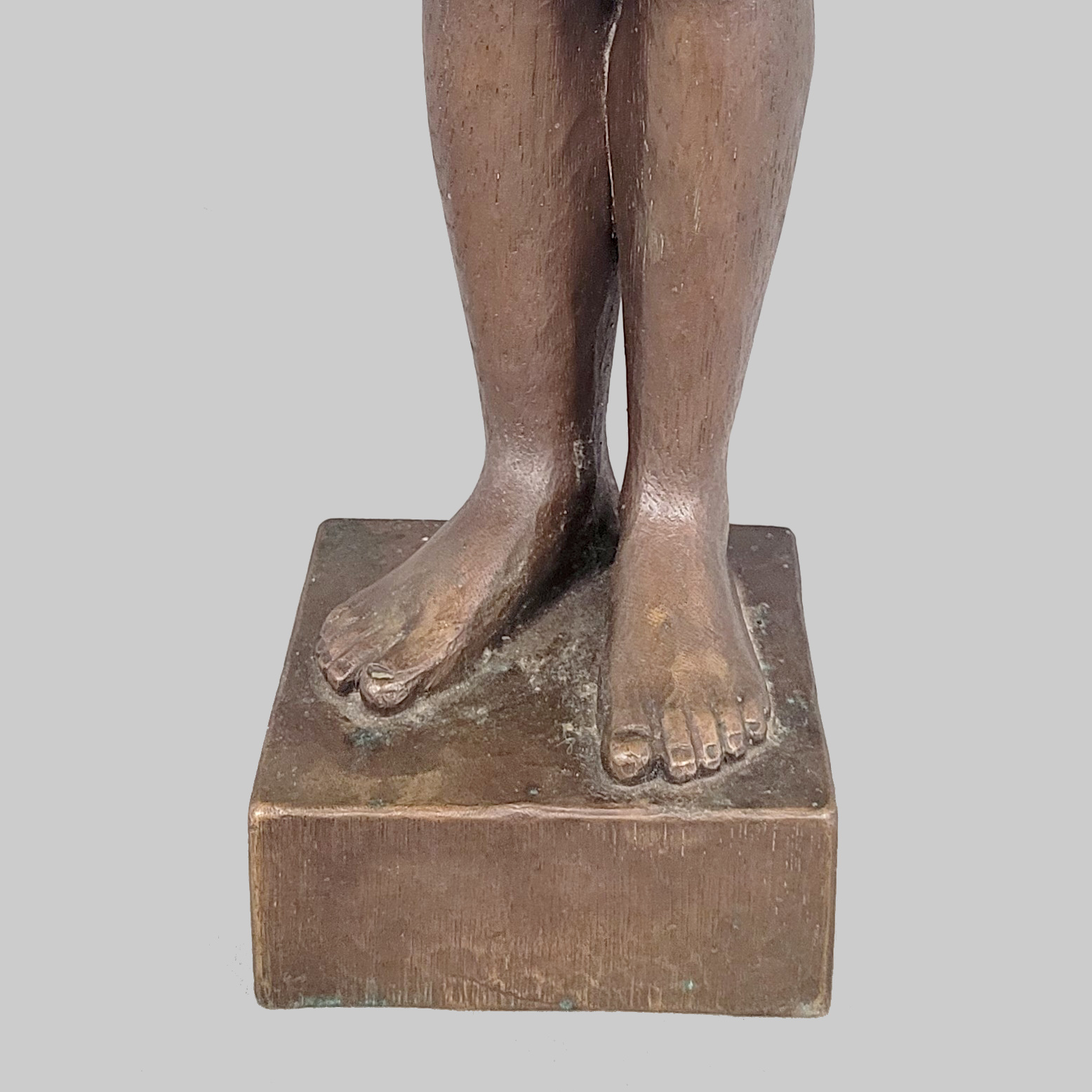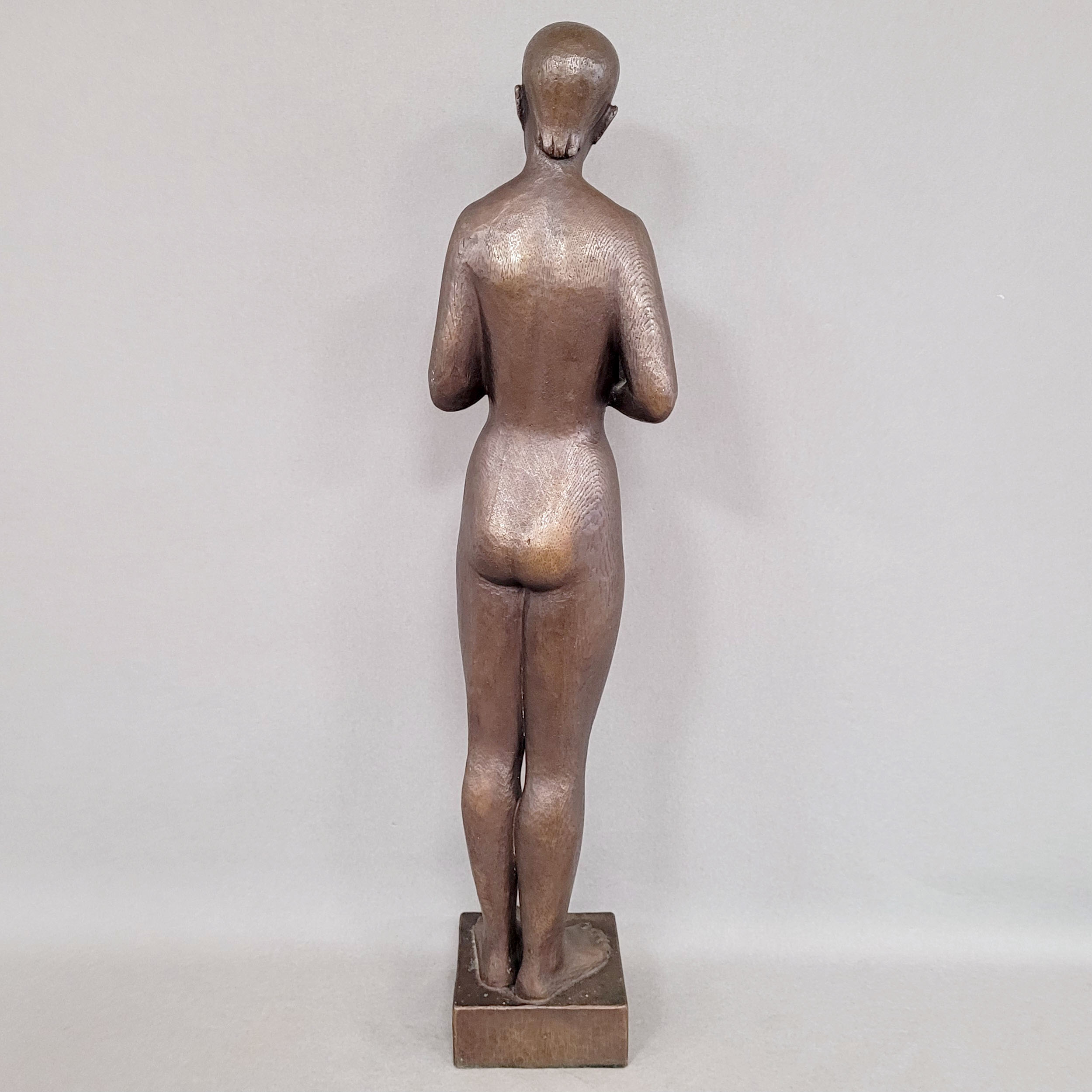 DEUTSCHER MEISTER (20. Jh.): Frauenakt mit TaubeBronze, Holzoptik, Höhe mit der Plinthe 67 cm