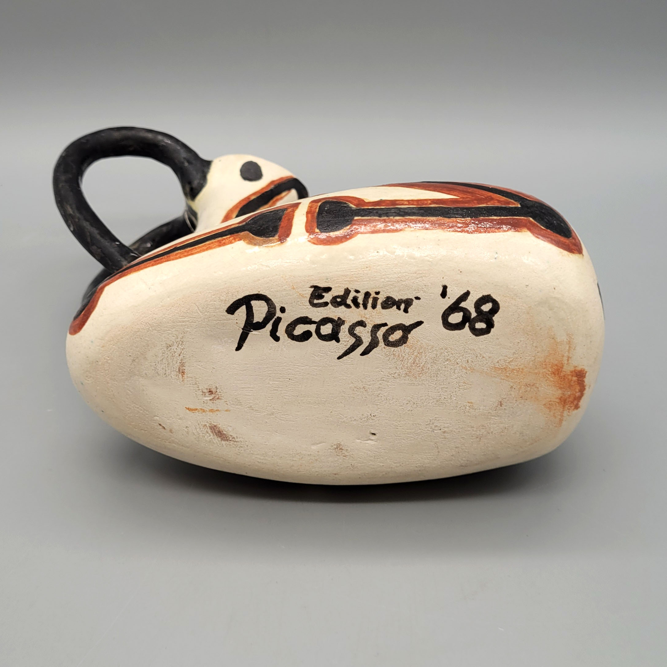 Kopie nach, Steingut, farbig bemalt, glasiert, unterseitig bezeichnet ‚Edition Picasso‘ und “68′, Höhe 16 cm, geklebte Bruchstellen an den Hornenden