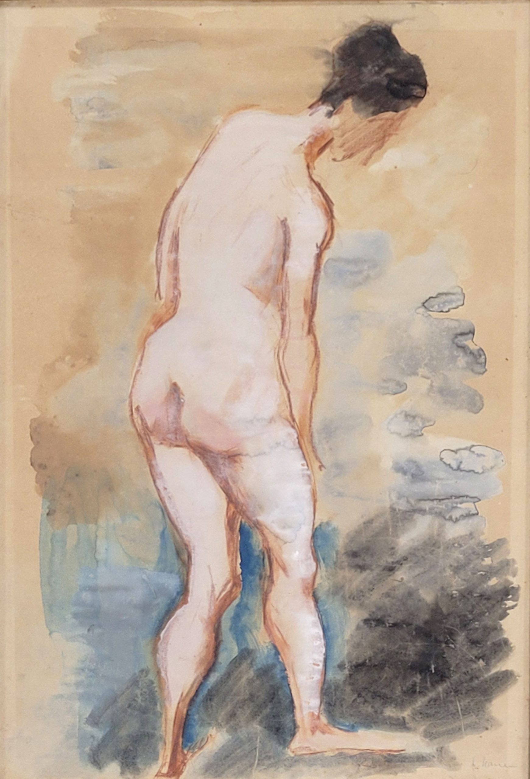 Gouache mit Deckweiß auf Papier, signiert in Bleistift unten rechts, 59 x 40 cm, gerahmt unter Glas (leichte Stauchfalten, lichtrandig)