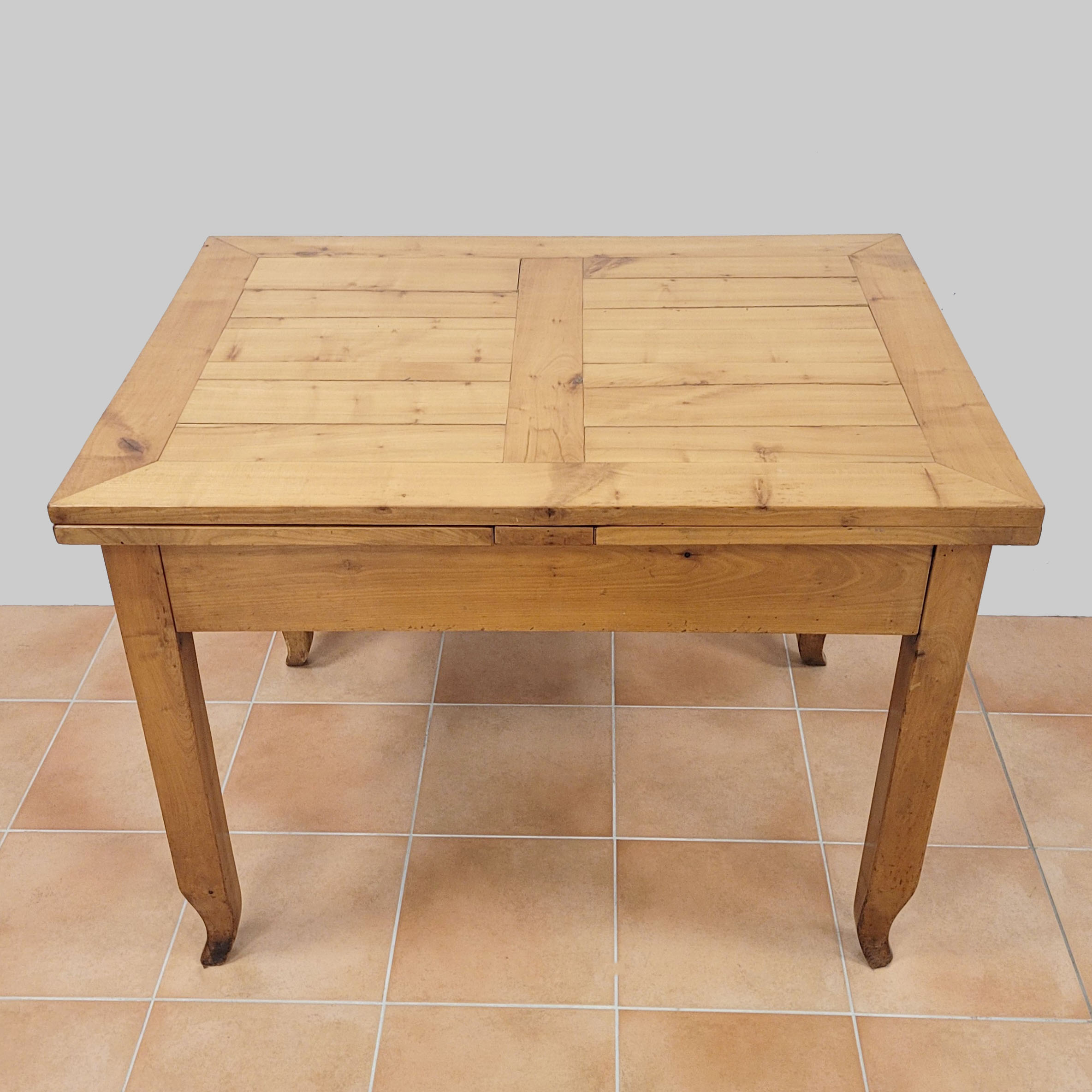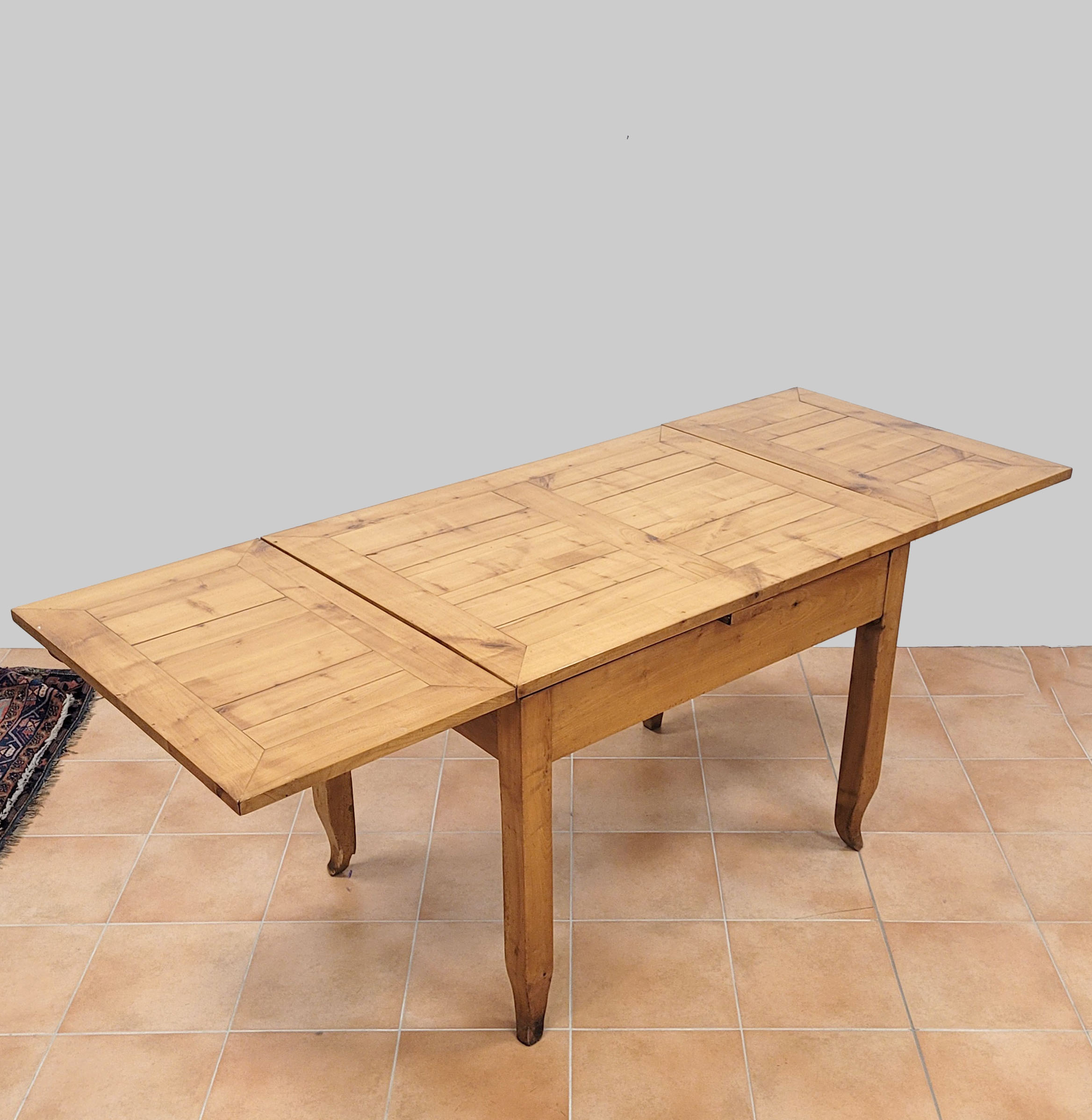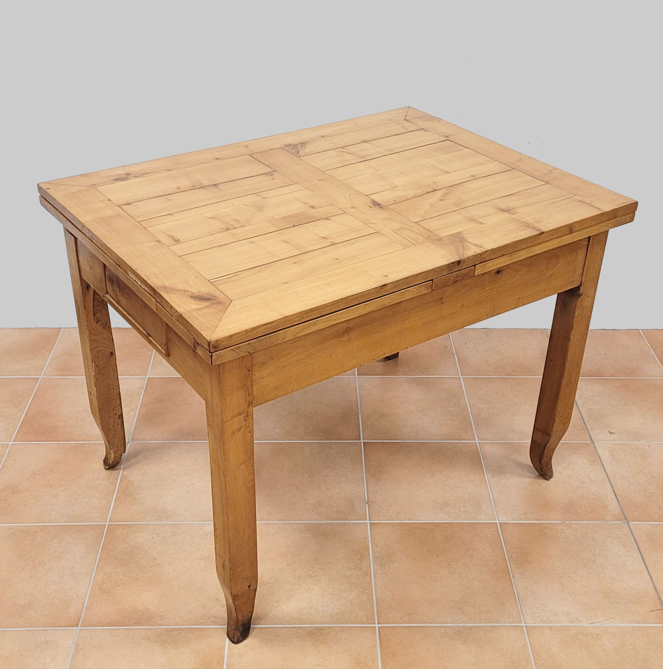 EsstischKirsche, Weichholz, unten ausgestellte Vierkantbeine, Parkettplatte an den Schmalseiten der Zarge Schubladen, Platte ausziehbar, 19. Jahrhundert, 76 x 104 x 77,5 cm, Länge Ausziehplatten je ca. 47 cm