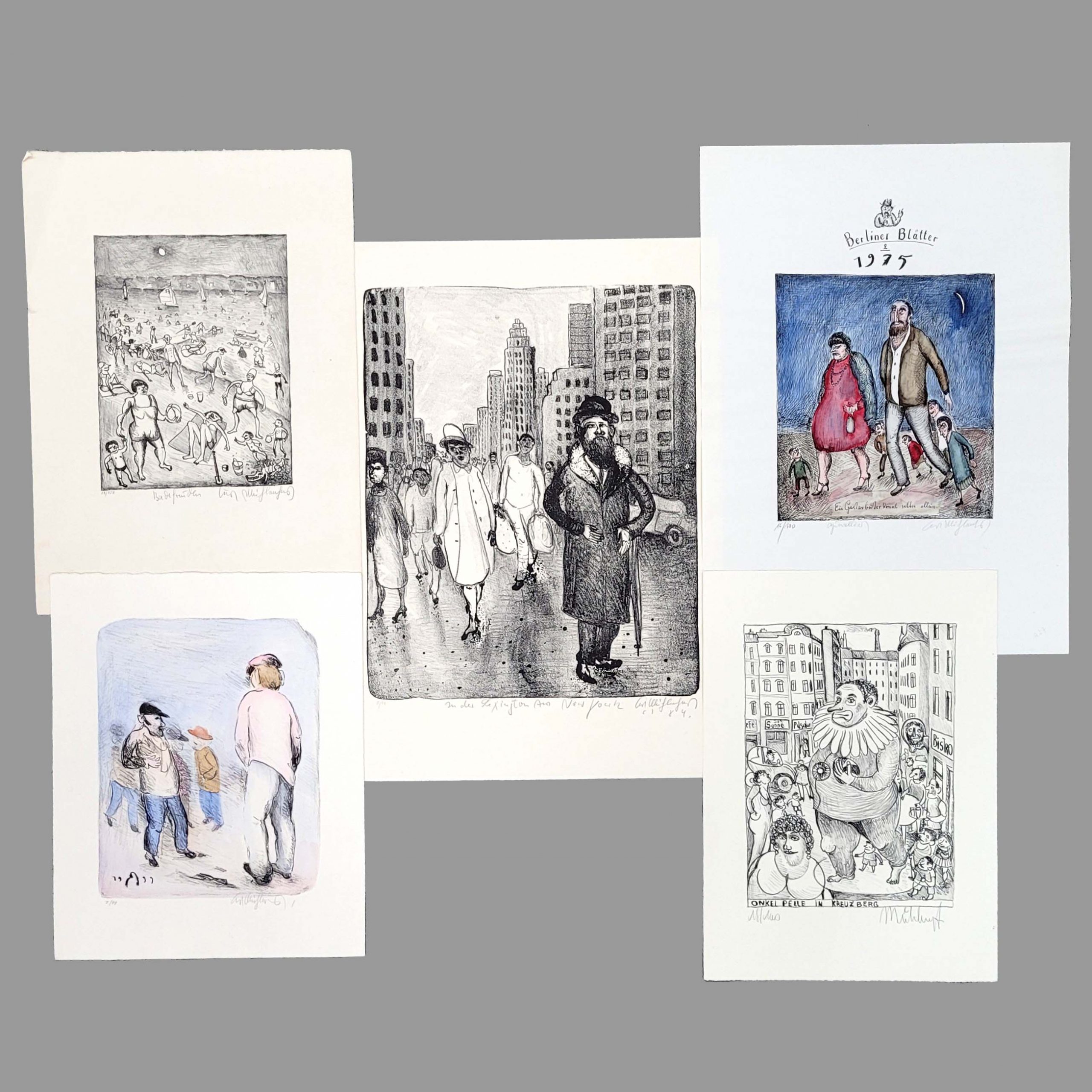 MÜHLENHAUPT, Kurt (1921-2006): Fünf ArbeitenLithographien, aquarelliert (2x), signiert, nummeriert, bis zu 70 x 50 cm** ) Bei einem Zuschlag über 400 € werden 2 % für VG Bild gemäß §26 UrHG erhoben
