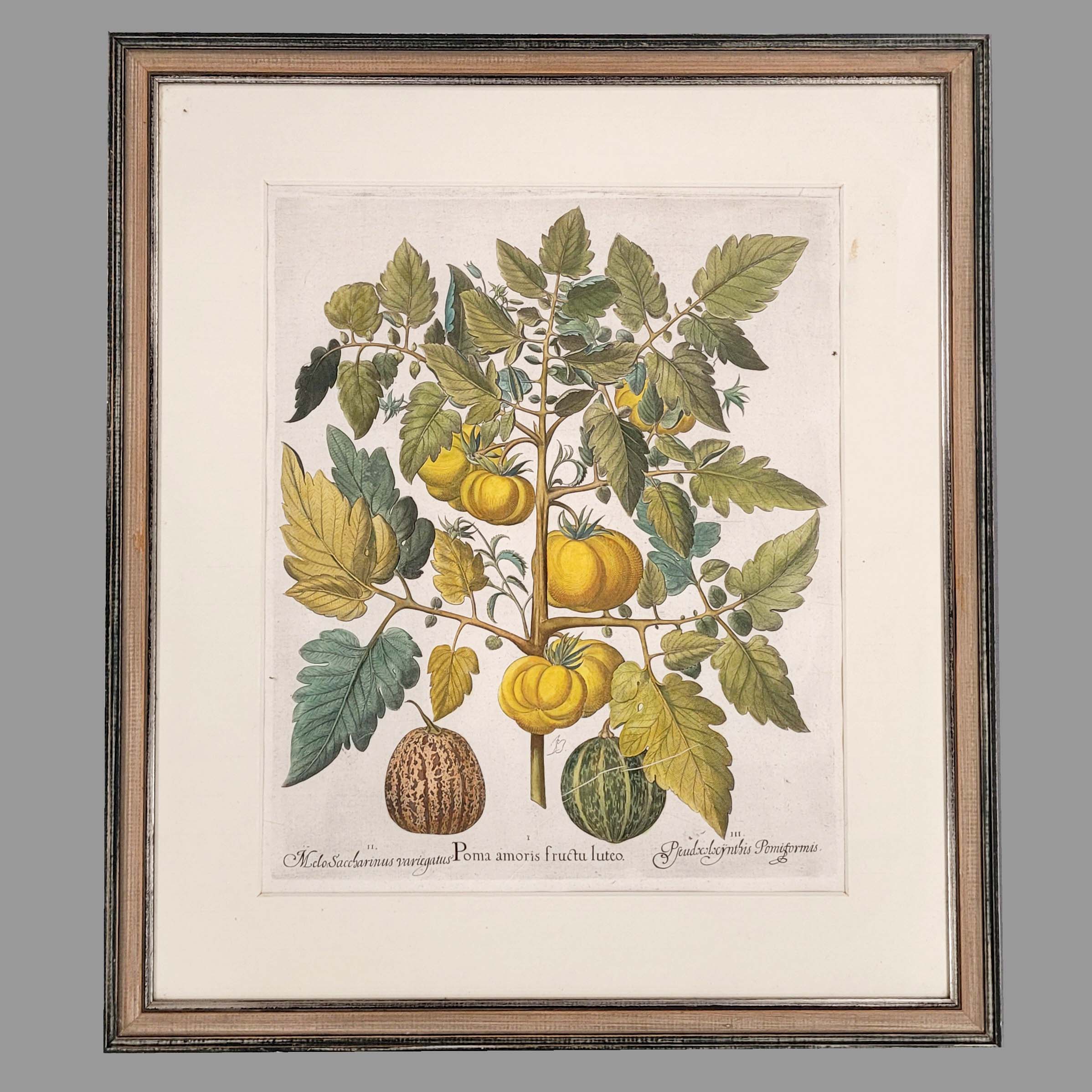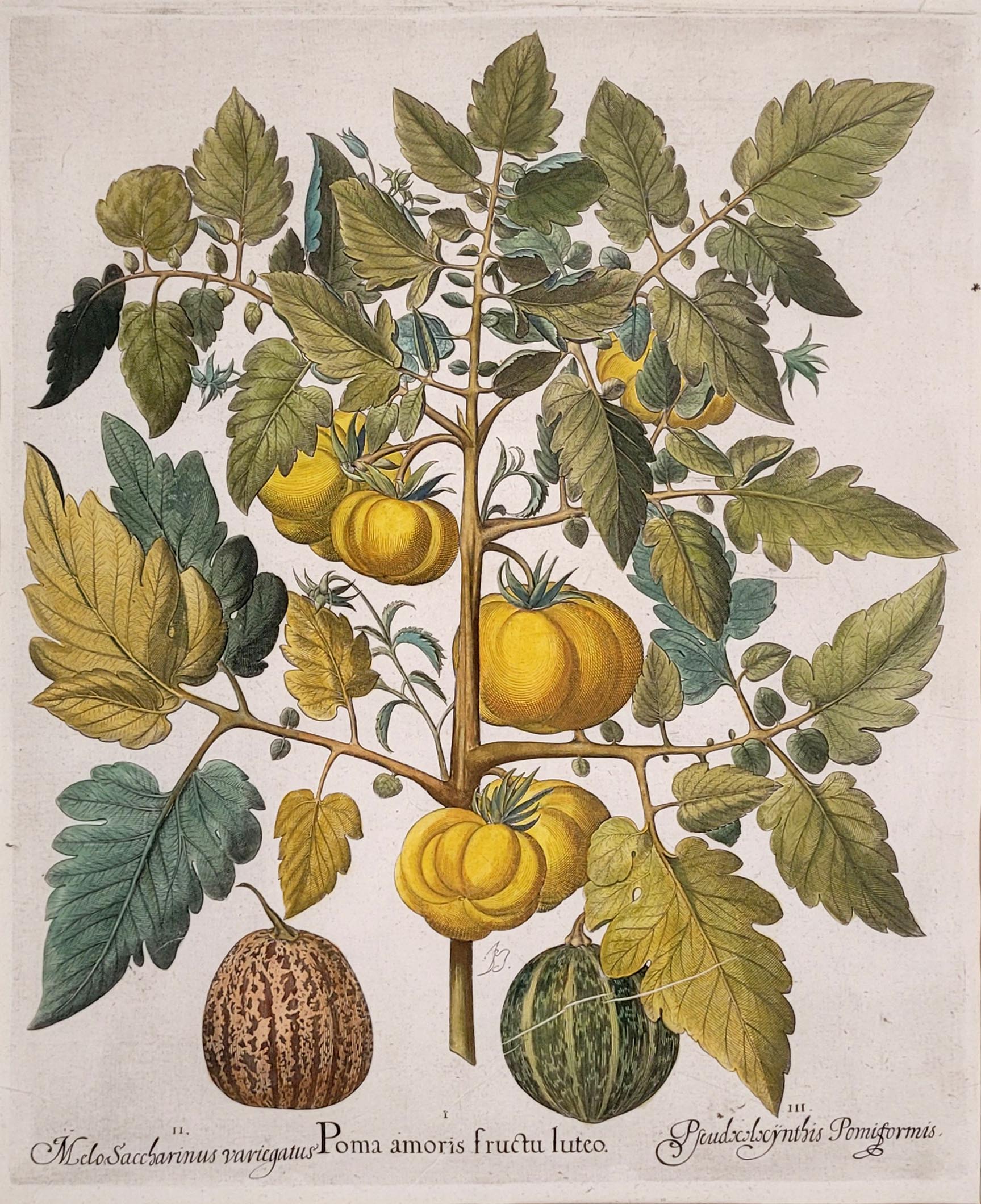 BESLER, Basilius (1561-1629): Poma amoris fructu luteo (Melonen)Kupferstich aus dem Hortus Eystettensis, 1613, 49 x 40,5 cm, gerahmt unter Glas und Passepartout (Stauchfalten im Papier)