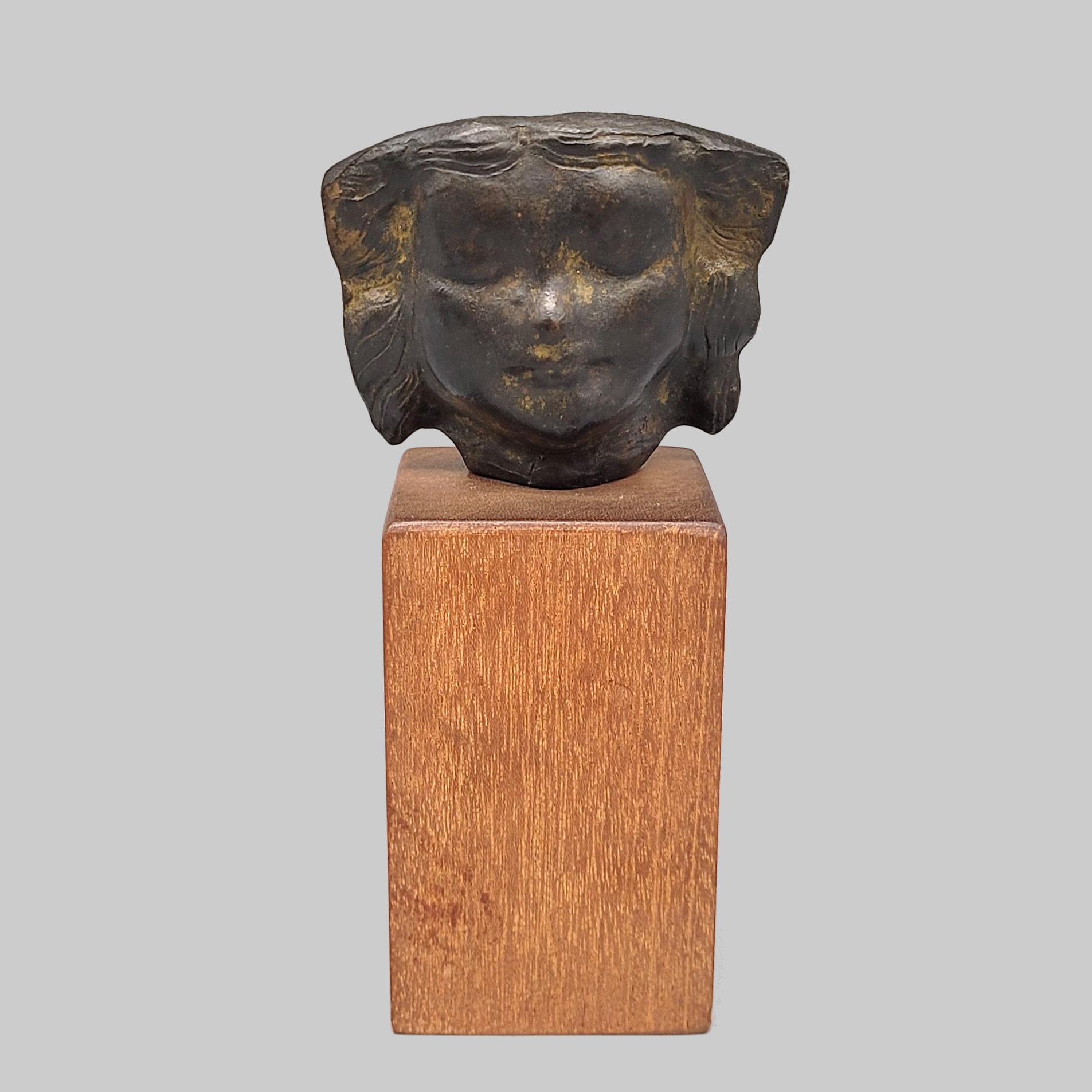 JAEKEL, Joseph (1907-1985): Kleine MaskeBronze, verschiedenfarbig patiniert, monogrammiert am Hals, Höhe 6,5 cm (ohne Holzsockel)