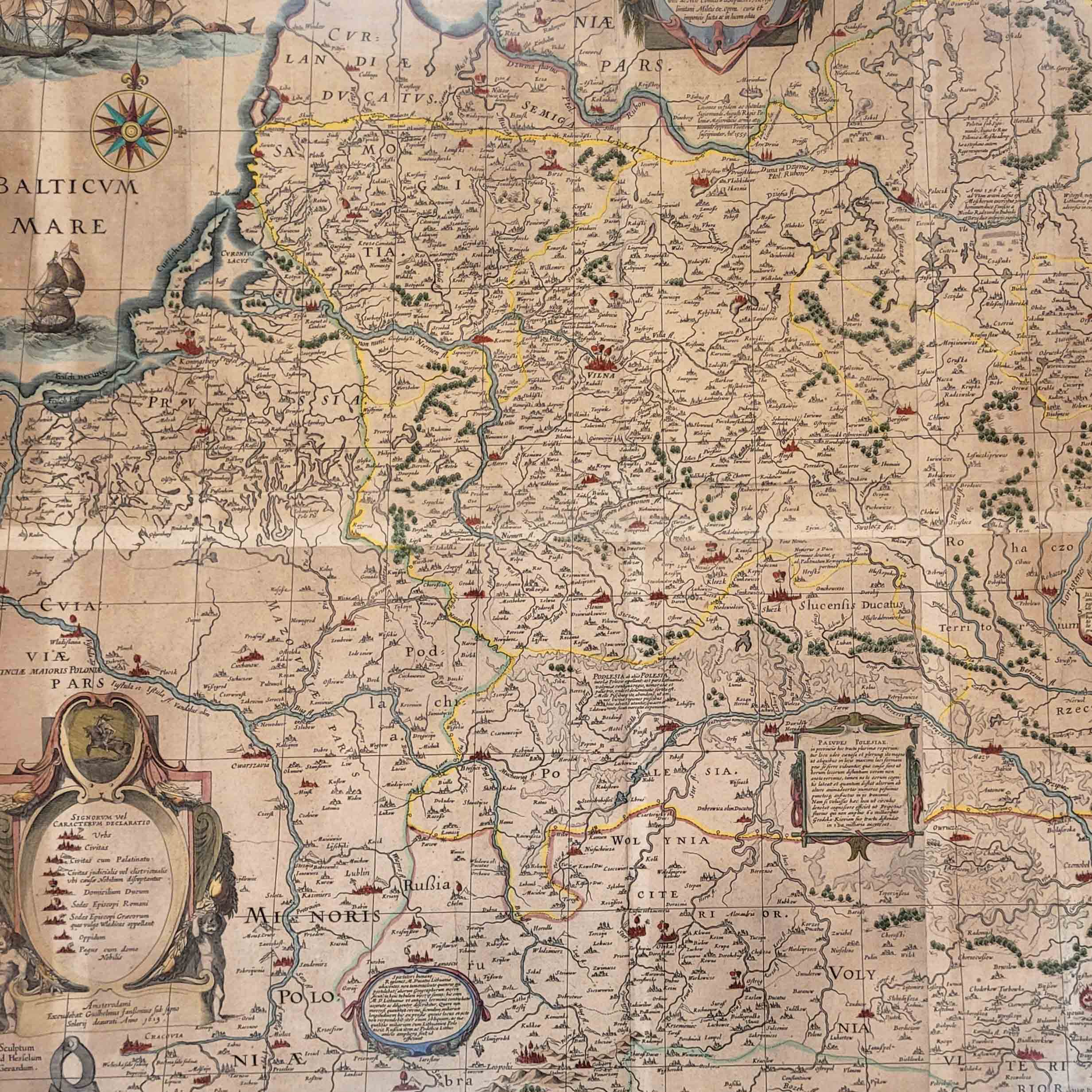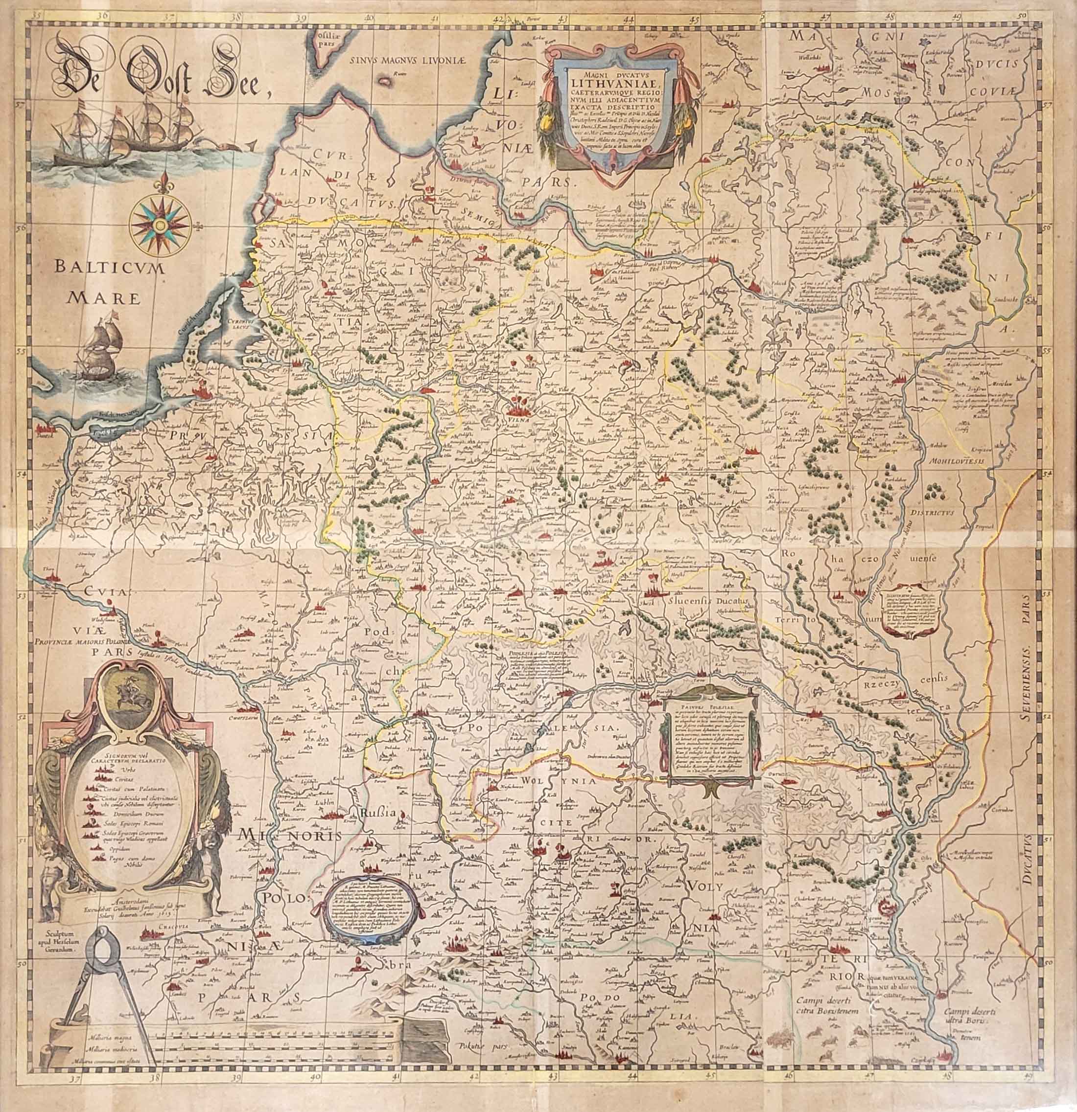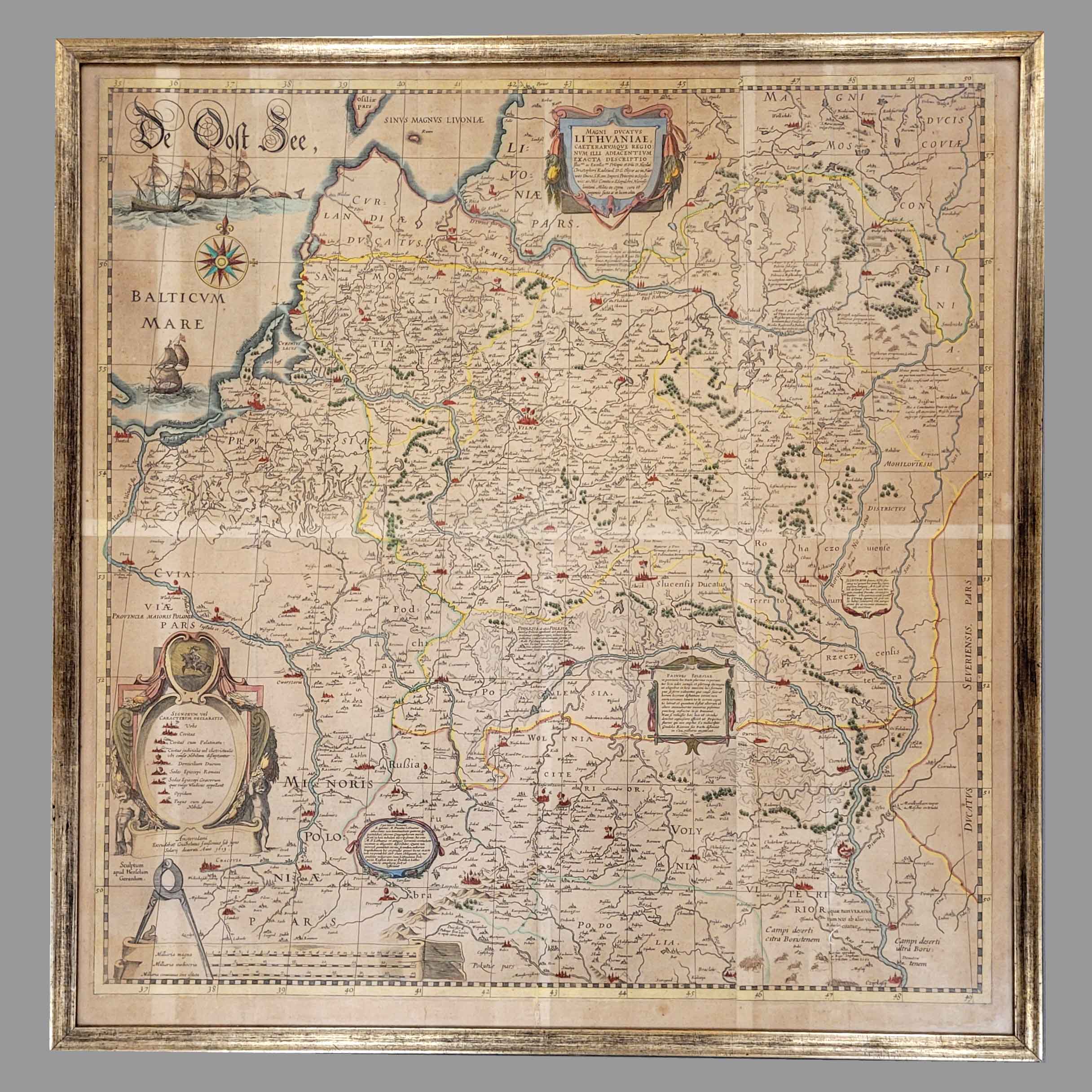 BLAEU, Willem Jansonius (1571-1638): Magni Ducatus LithuaniaeKupferstich 1631 oder 1643 nach der karthographischen Aufnahme von Nikolaj Krzysztof Radziwill (1549-1616) von 1613, altkoloriert, 79 x 76 cm, gerahmt unter Glas