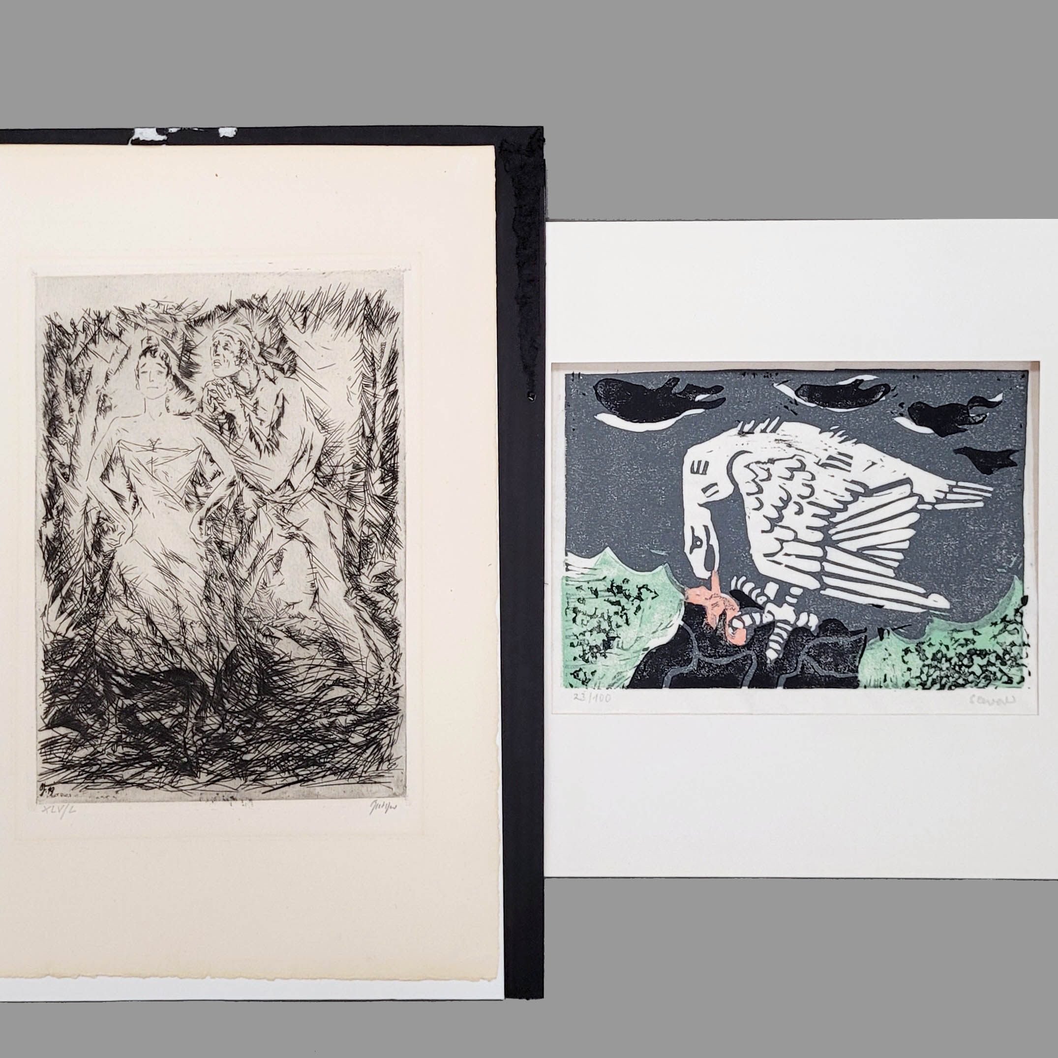 Radierung, 1919, signiert unten rechts, nummeriert XLV / L unten links, 37,5 x 25 cm, montiert SEEWALD, Richard (1889-1976), Adler, Farblinolschnitt, signiert unten rechts, nummeriert 23/100 unten links, 22 x 28,5 cm, montiert im Klapp-Passepartout