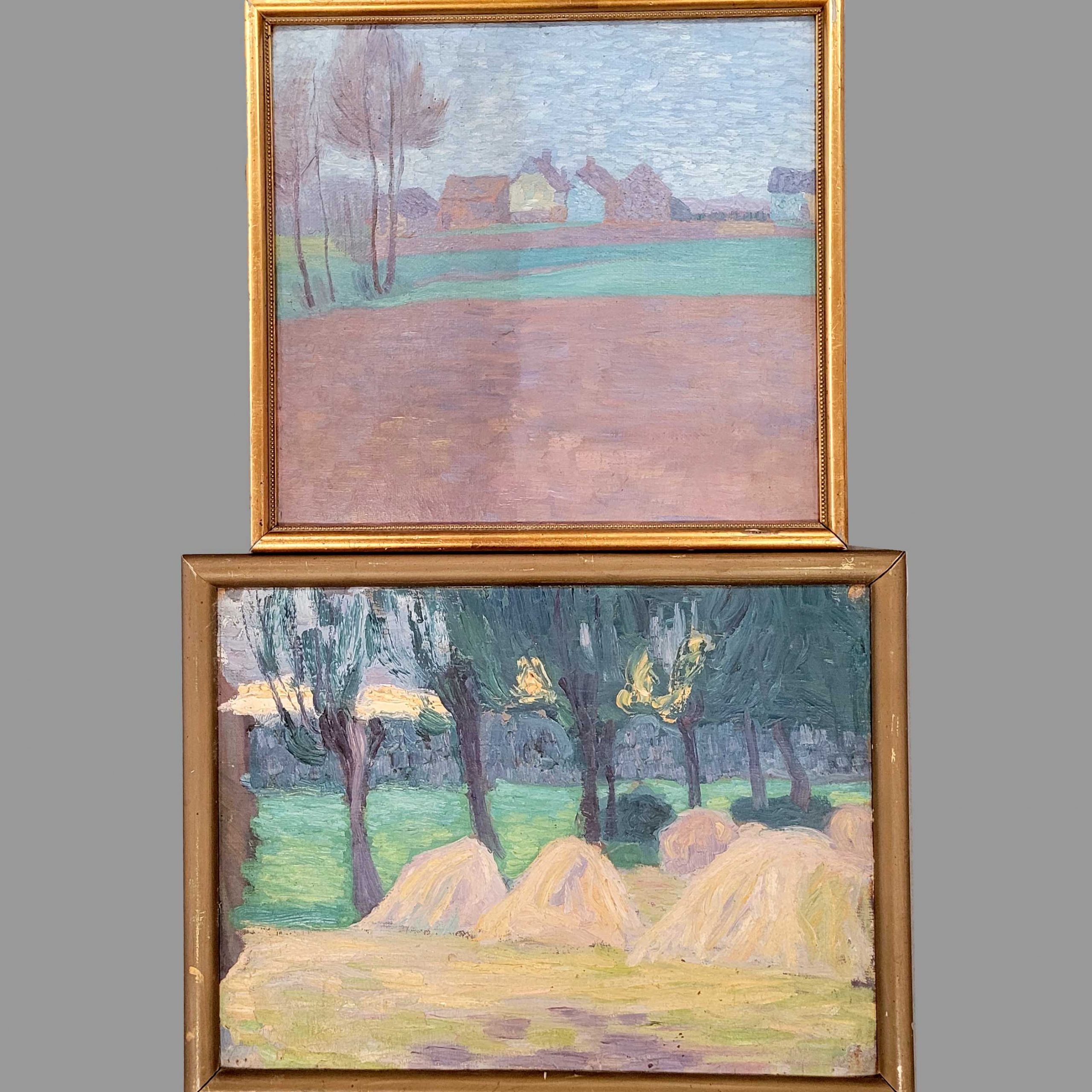 2 Gemälde, Öl auf Leinwand, auf Pappe gezogen, um 1910, 26,5 x 36,5 cm, bzw. 28 x 30,5 cm, Rahmen