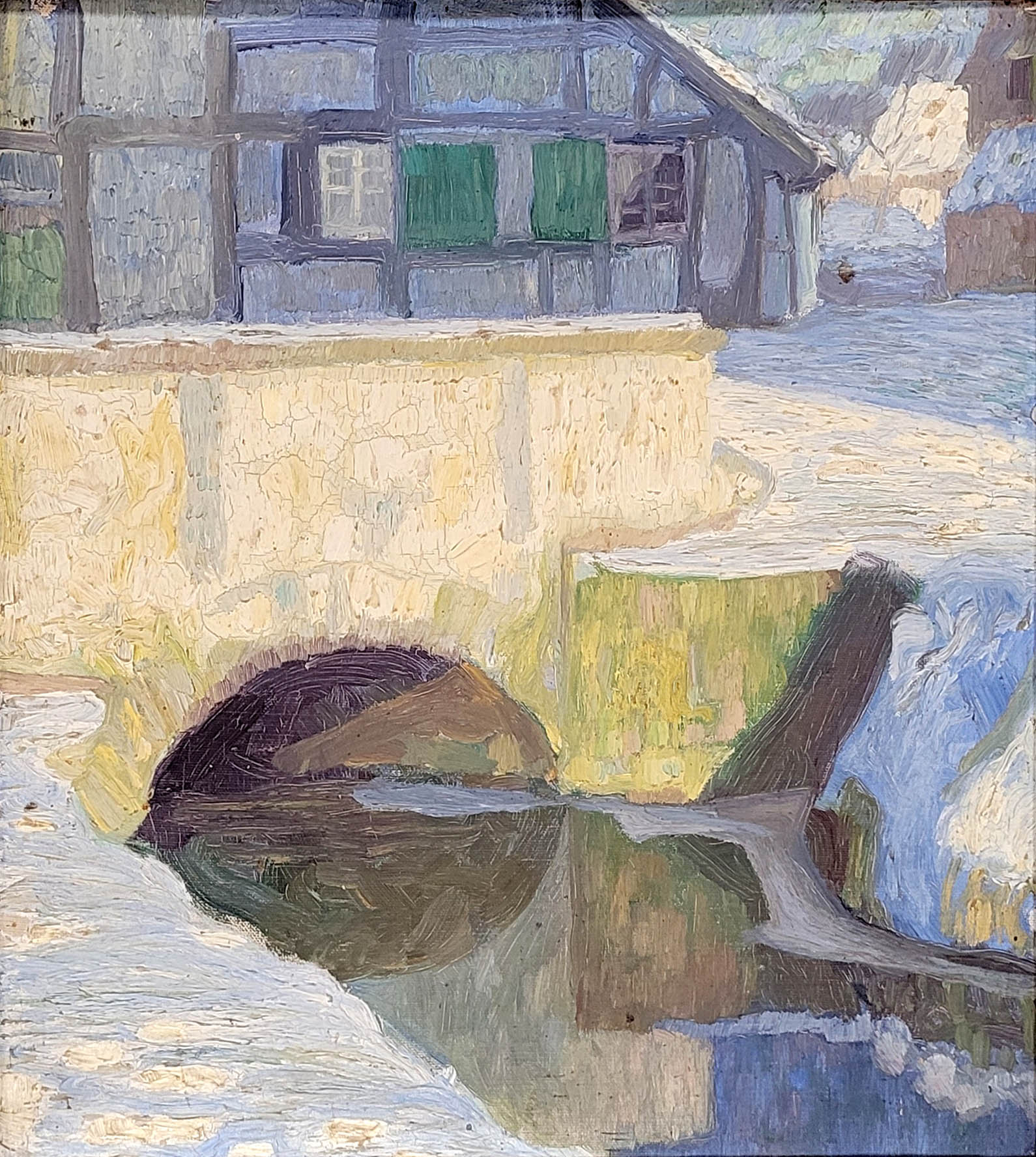 RONIG, Ludwig Egidius (1885-1959): Fachwerkhaus an der Brücke