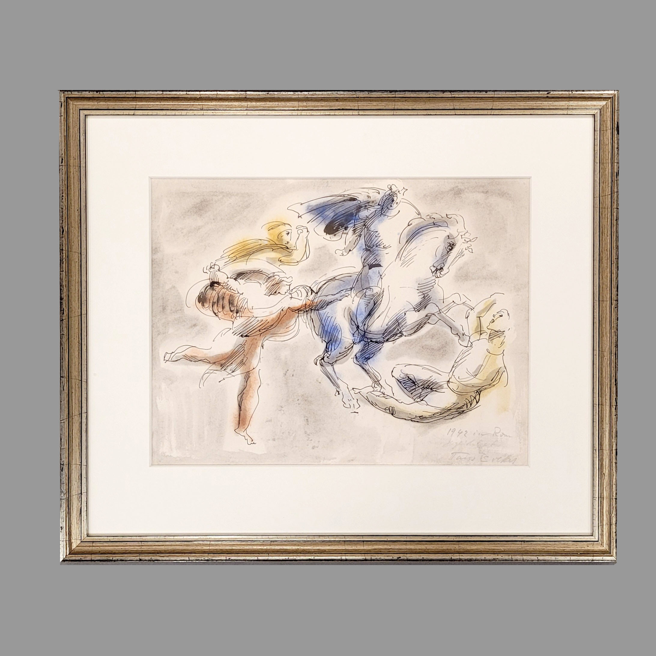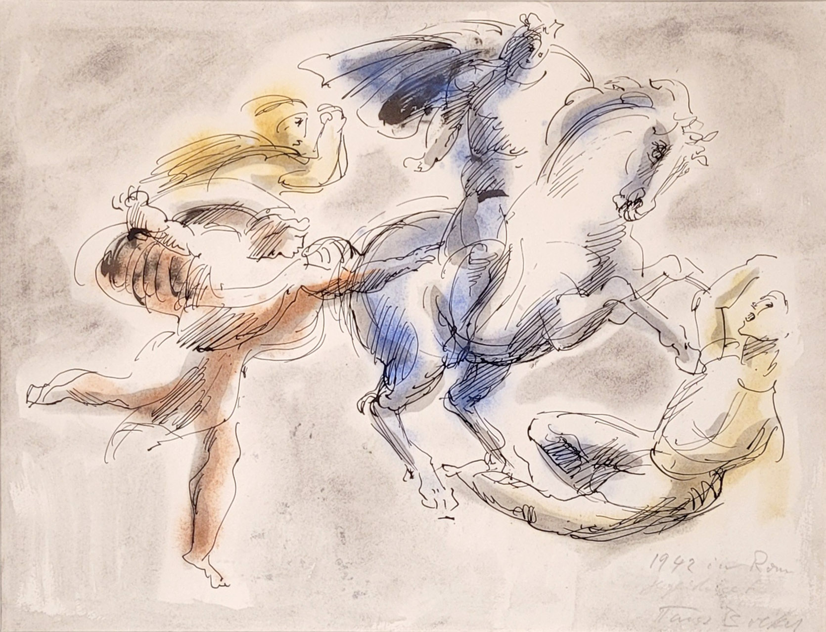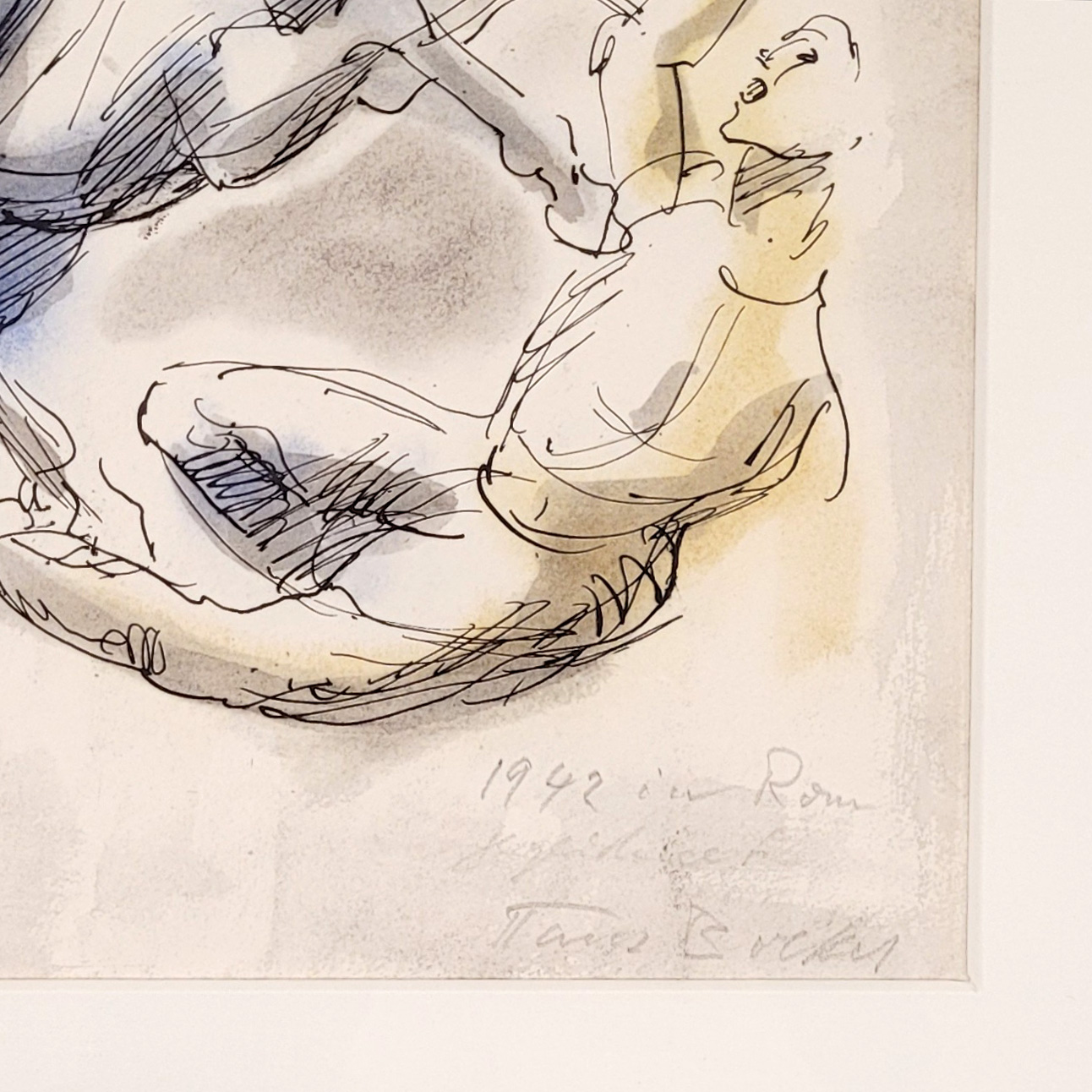 Feder, Aquarell auf Papier, signiert unten rechts und schwer lesbar bezeichnet „1942 in Rom gezeichnet…“, 30 x 40 cm, gerahmt unter Glas und Passepartout