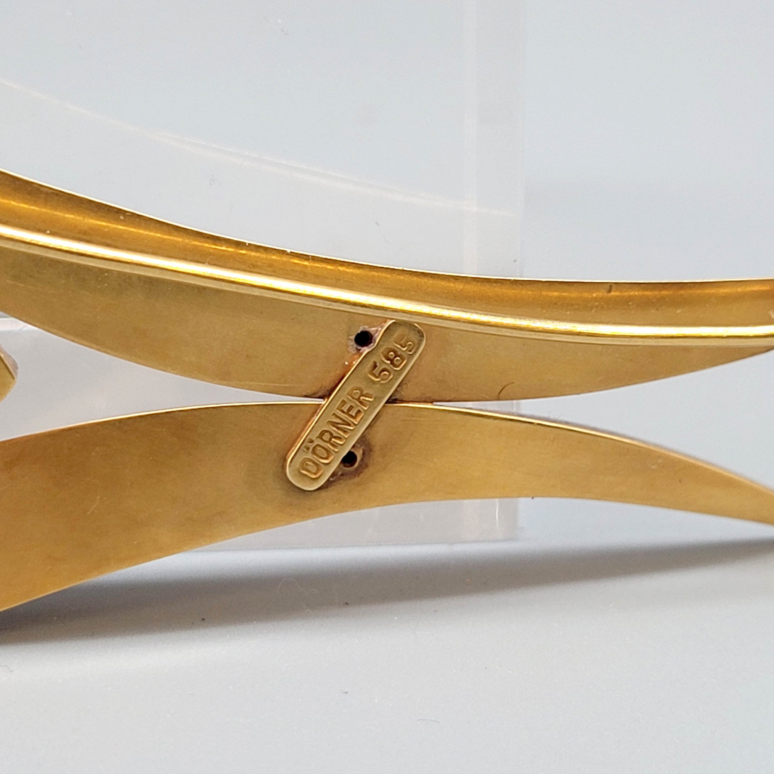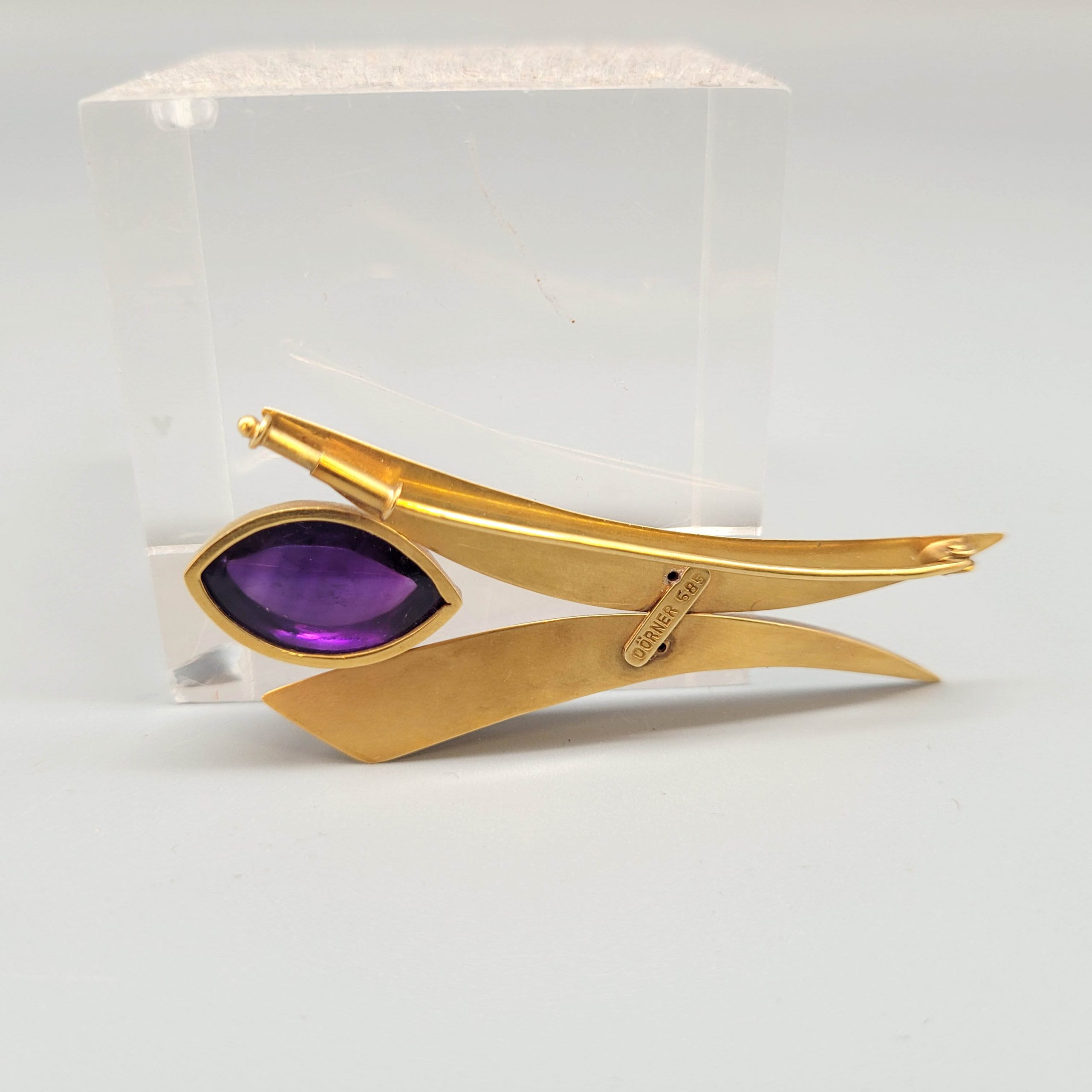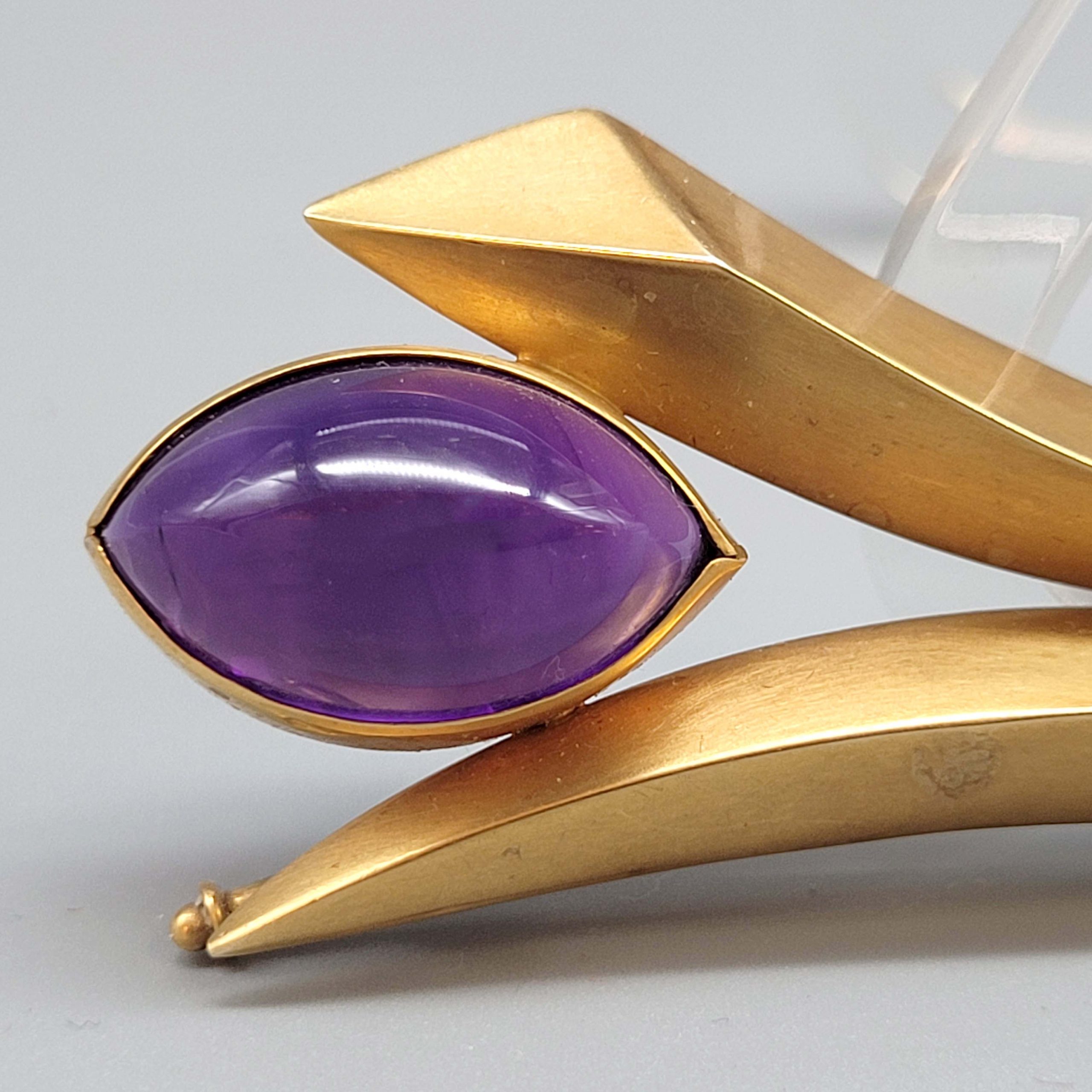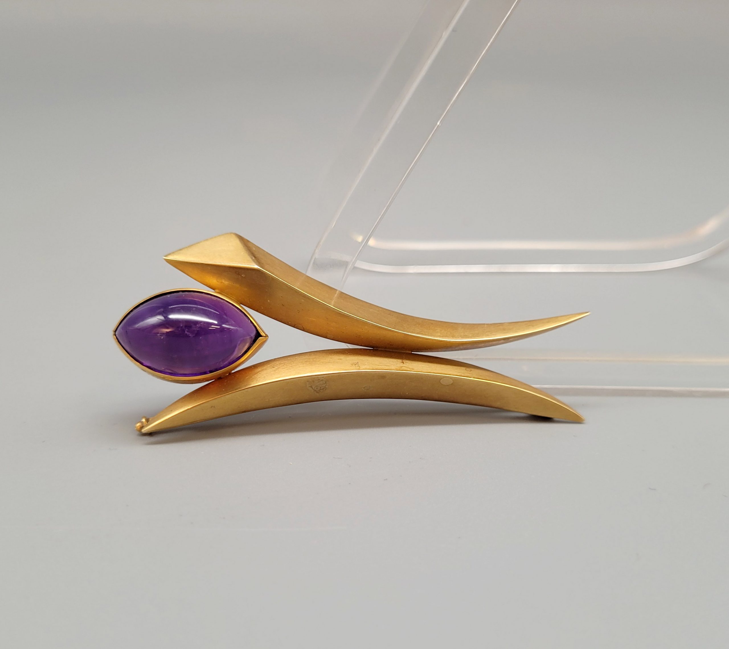 Brosche585er Gelbgold, Amethyst-Cabochon, Dörner, Hagen, Länge 6,5 cm, Gewicht 11g