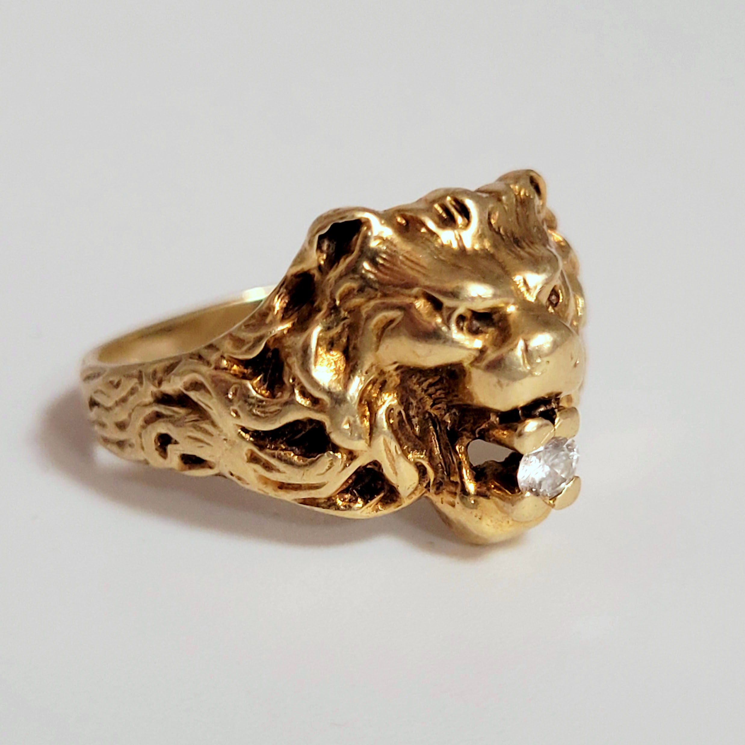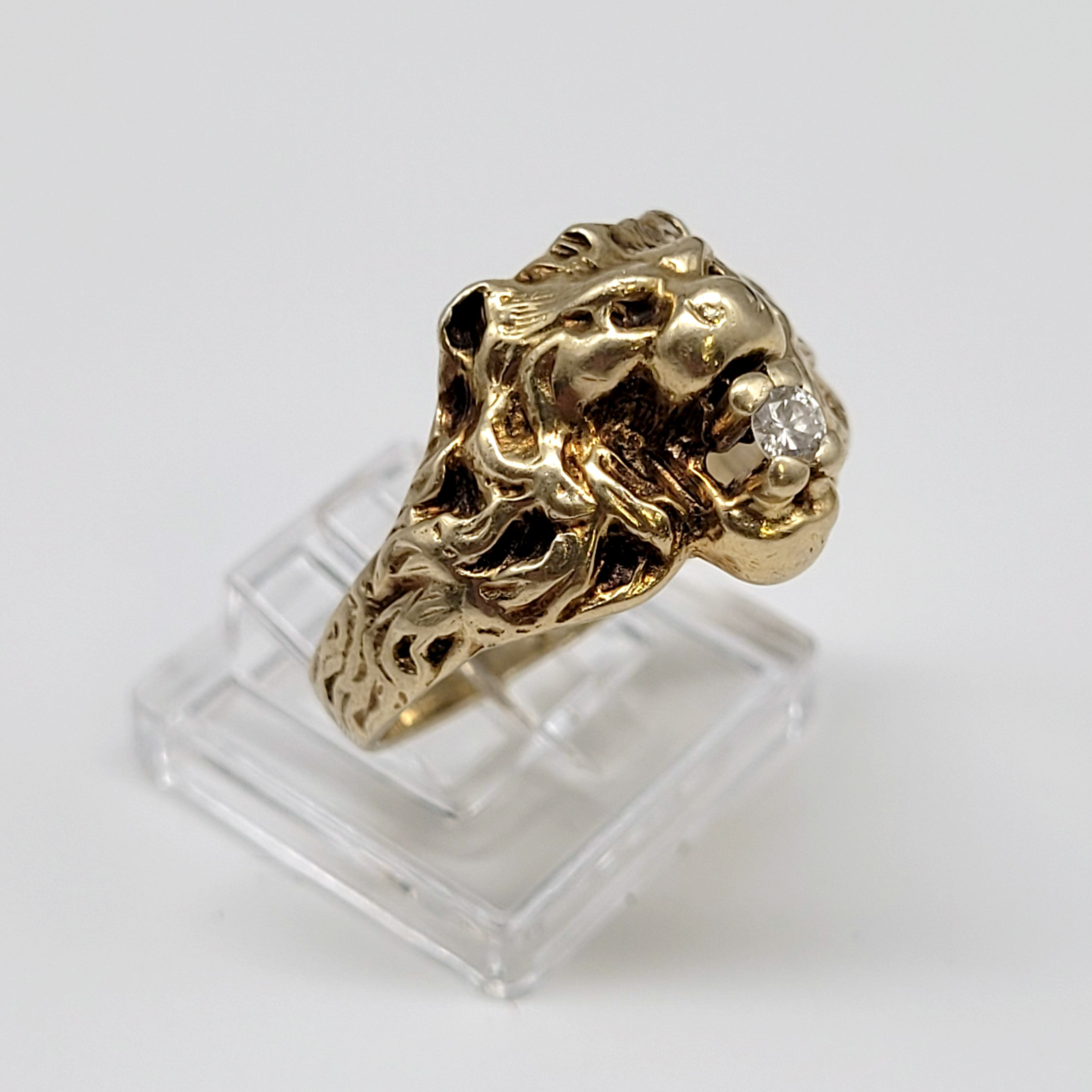 HerrenringSchiene und Ringkopf in Form eines Löwenkopfes, 585er Gelbgold, kleiner Brillant (ca. 0,10 ct), Ringgröße 62-3, Gewicht ca. 9g